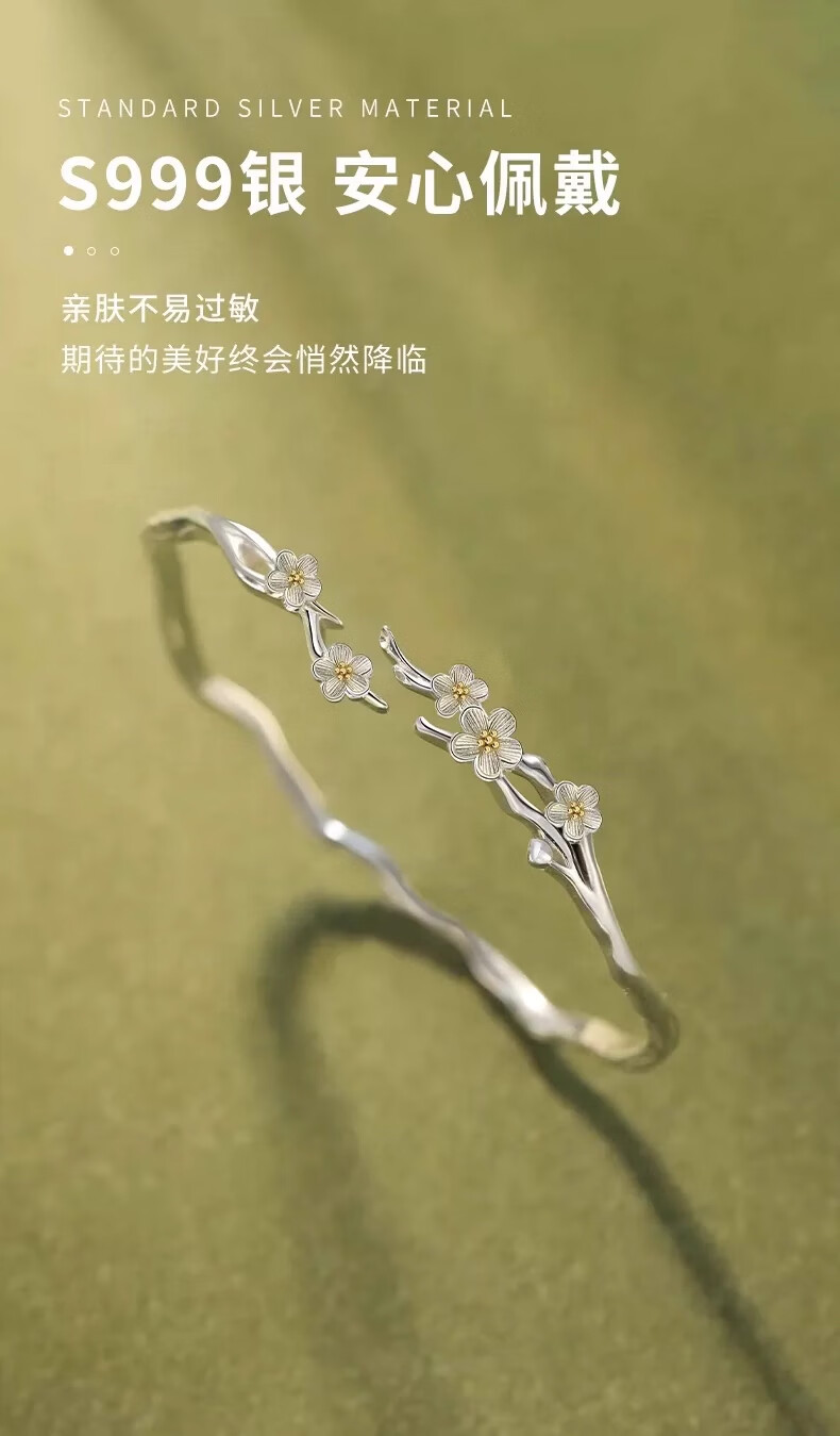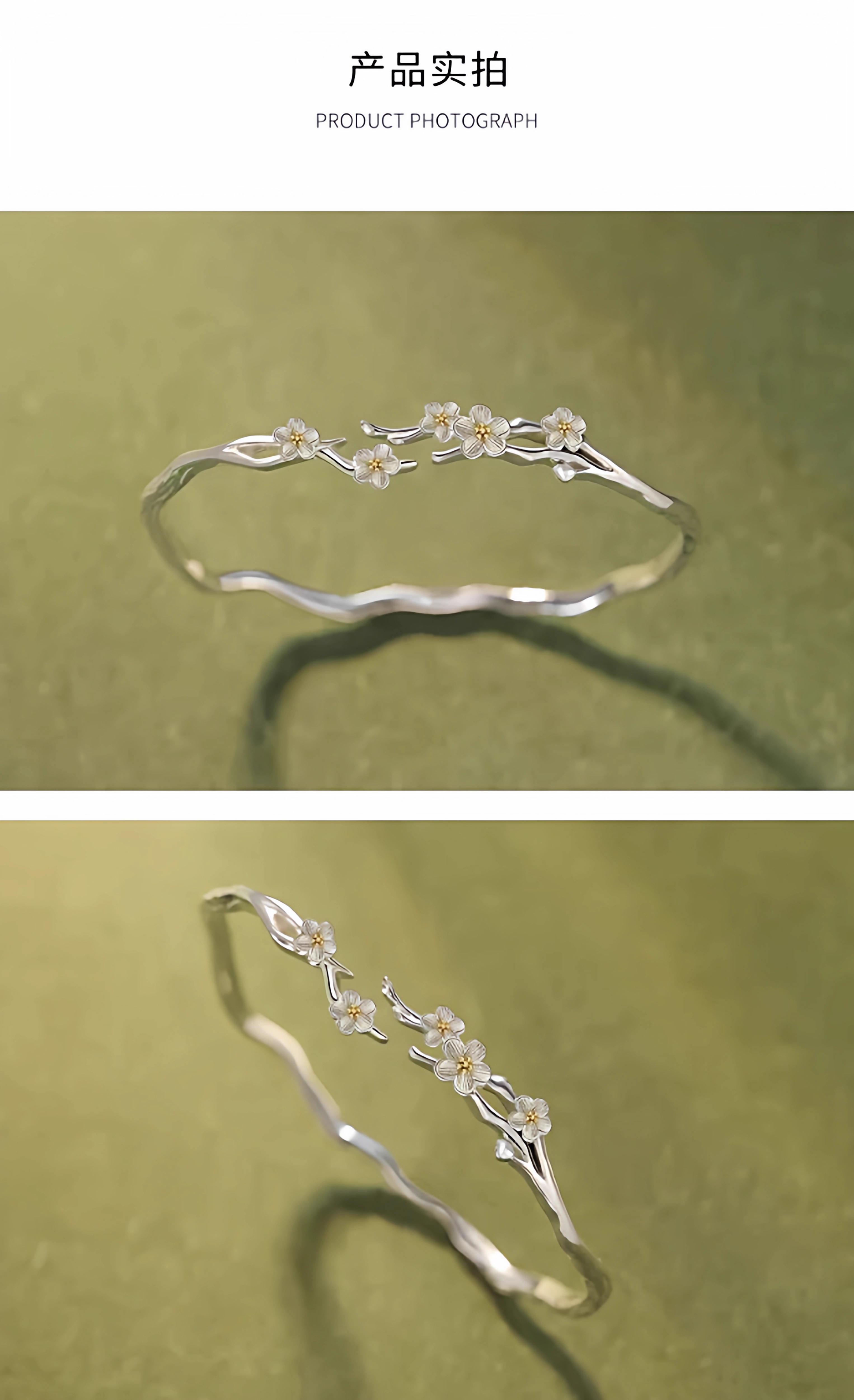 Mo Li Bracelet 999 Pure Silver Jasmine Bracelet High-end Light Luxury Bracelet for Valentine's Day Birthday Gift for Wife and Girlfriend 999 Jasmine Bracelet + Rose Gift Box + Pure Silver Appraisal Certificate 9g
