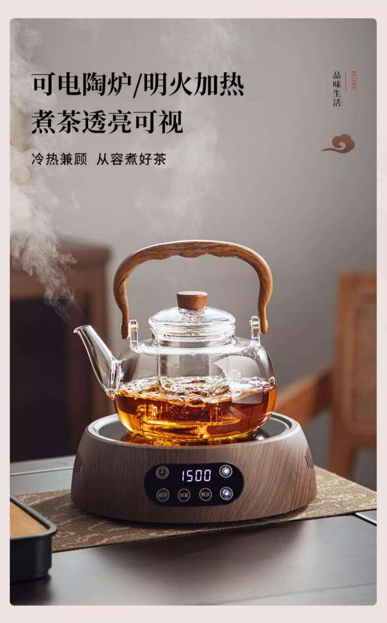 MGXEK Germany glass teapot 2025 new kettle tea household lifting kettle around the furnace high temperature resistant electric ceramics Muhe lifting kettle 1000ml
