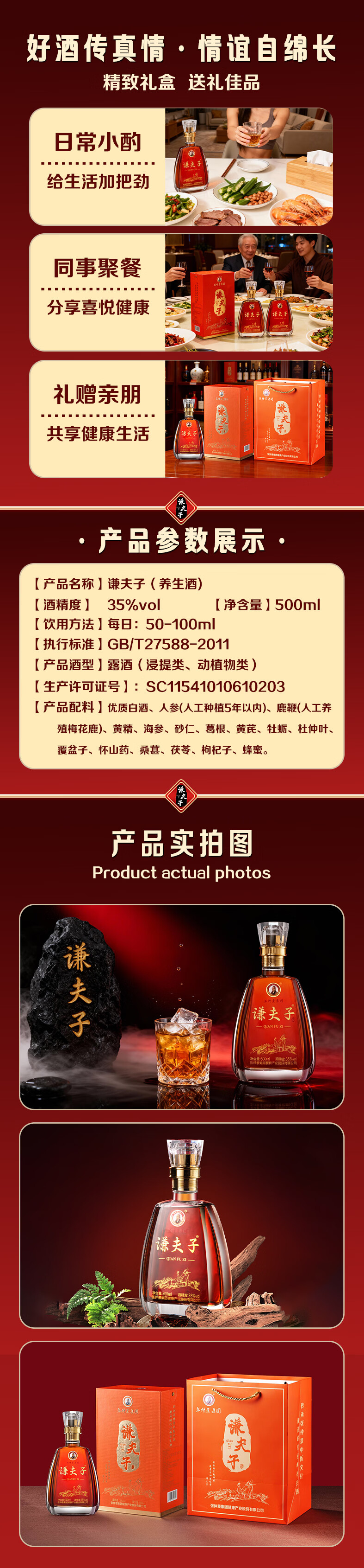Qianfuzi Zhang Zhongjing Group Qianfuzi Dew Wine China Qianfuzi Dew Wine Qianfuzi 35 Degree Health Wine Deer Penis Ginseng 35%vol 500mL 1 bottle Awakening Experience Pack