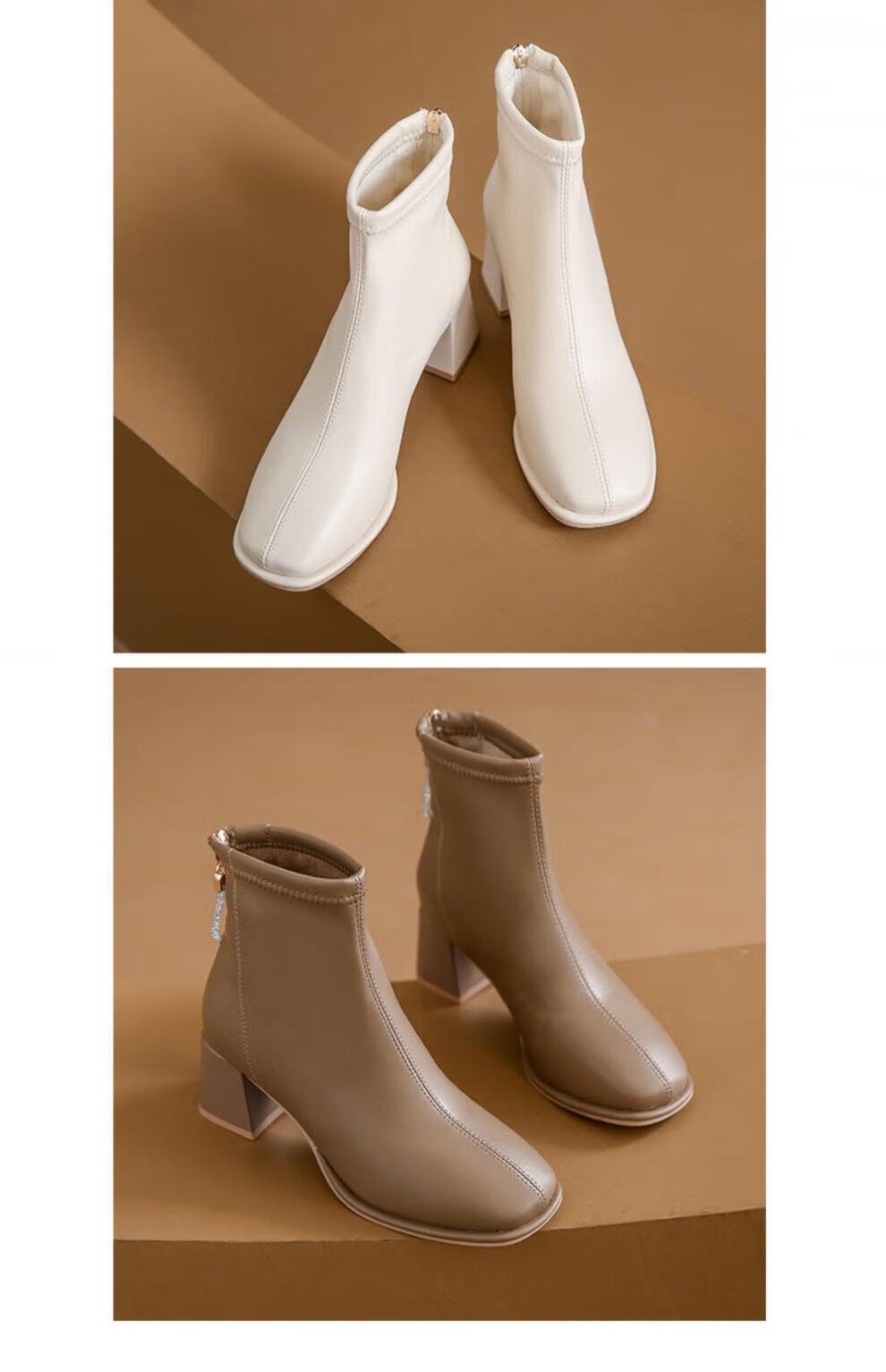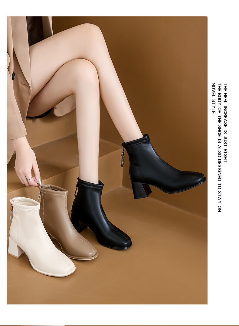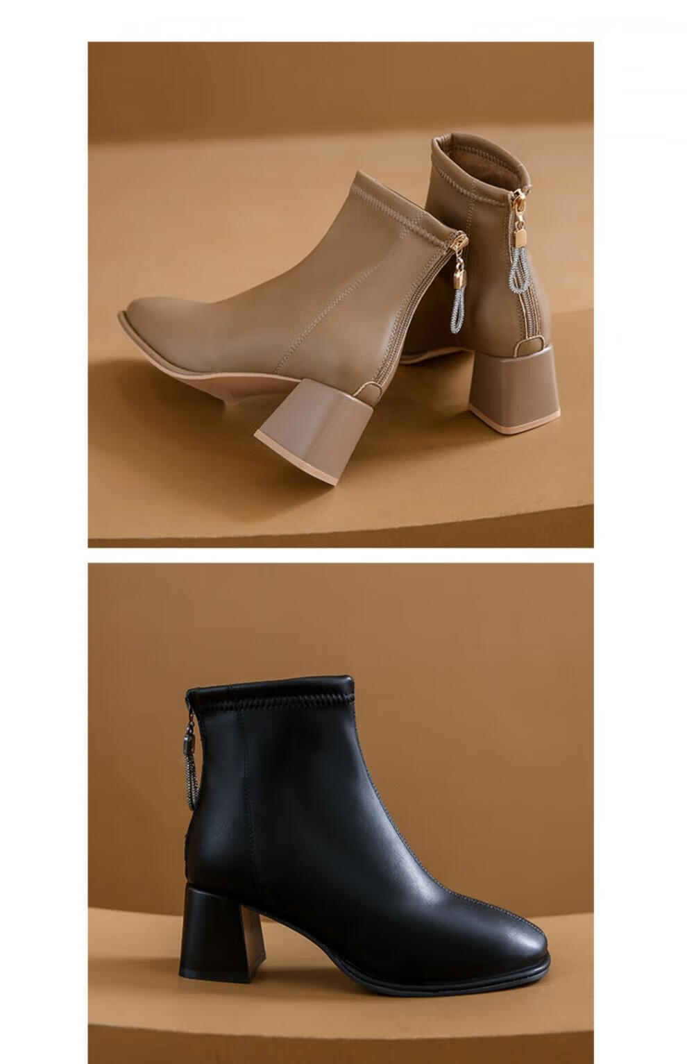 Senma (senma) French short boots and ankle boots for women Korean style 2025 new autumn and winter thick heel Martin boots square toe slim boots black (flat zipper) 40