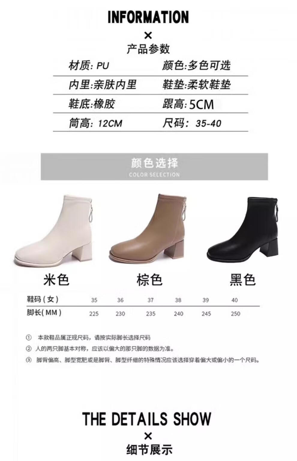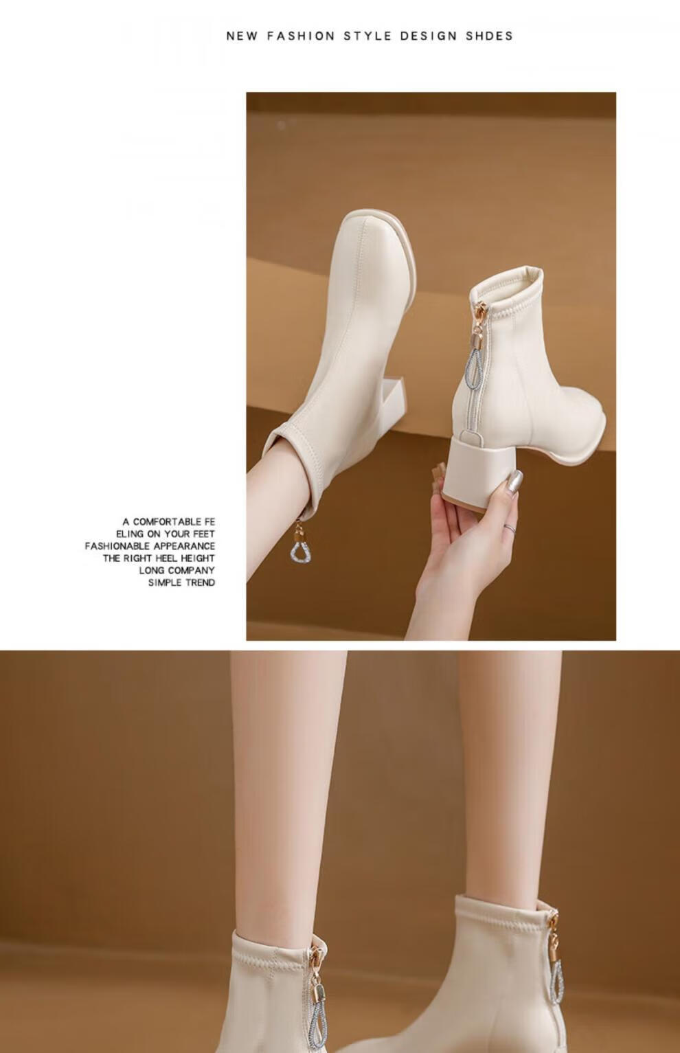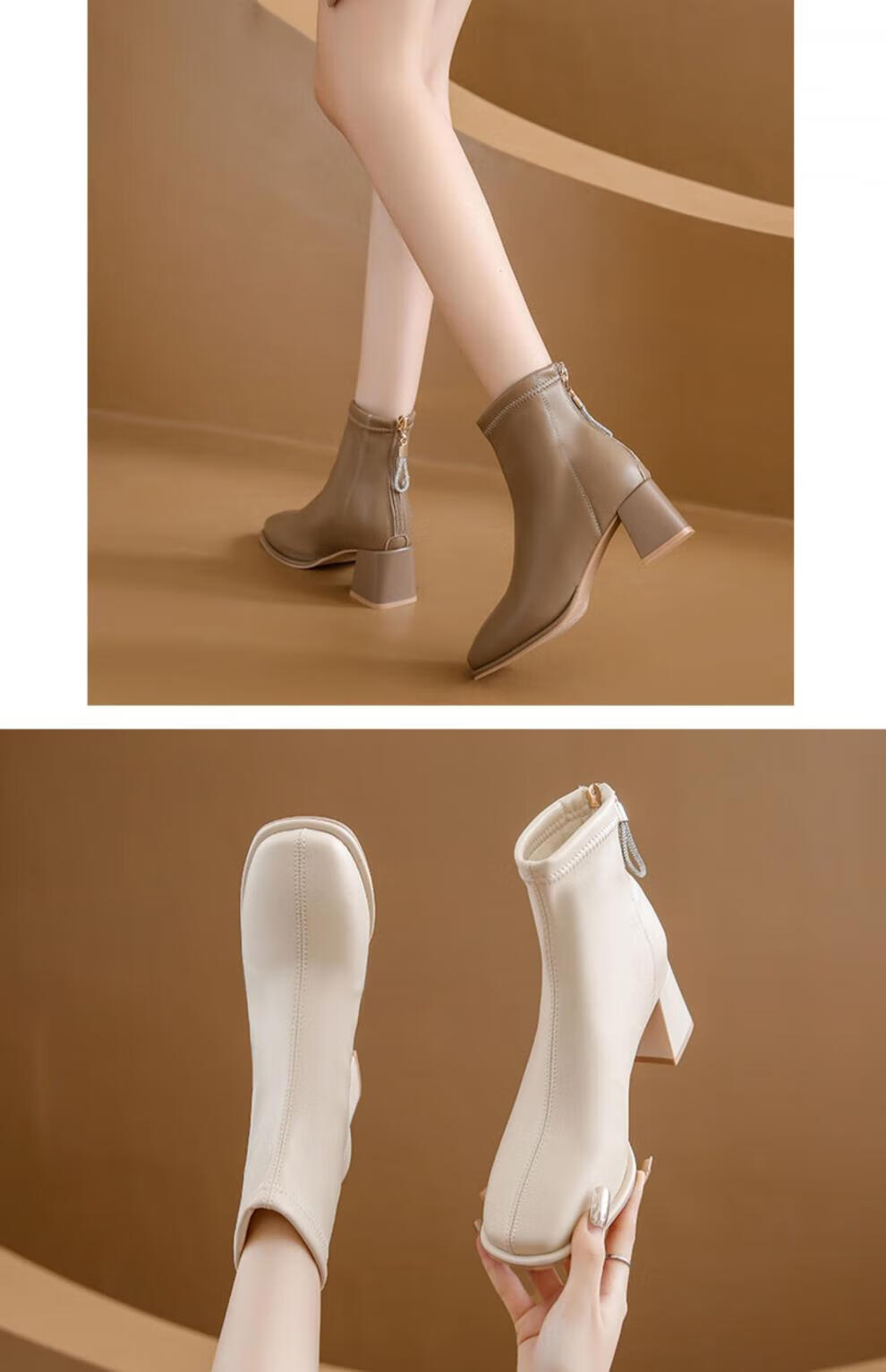 Senma (senma) French short boots and ankle boots for women Korean style 2025 new autumn and winter thick heel Martin boots square toe slim boots black (flat zipper) 40