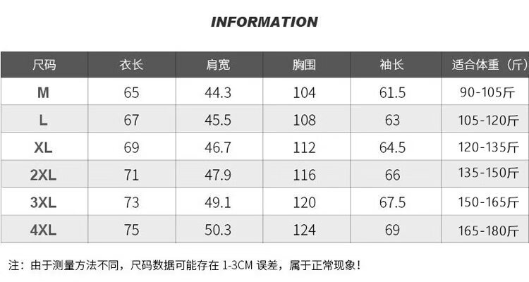China (cm) 165 / 88-90 170 / 96-98 175 / 108-110 180 / 118-122 185 / 126-130