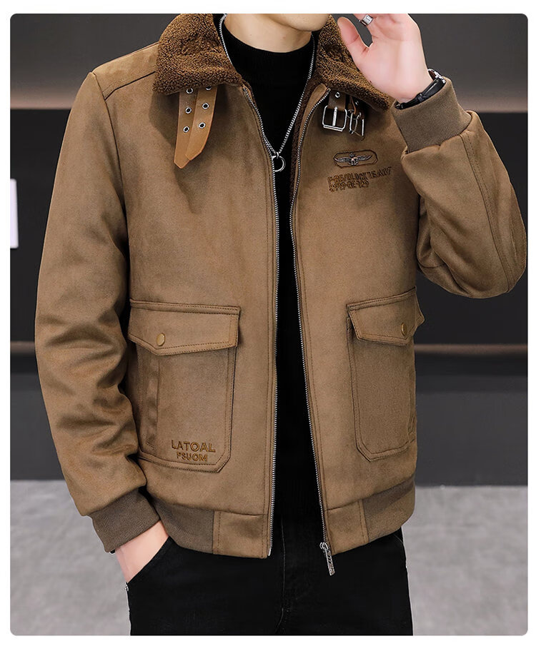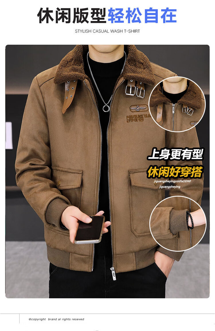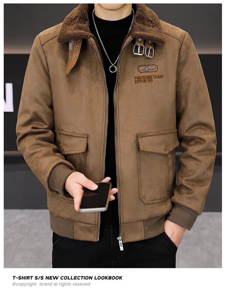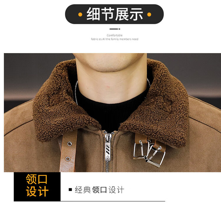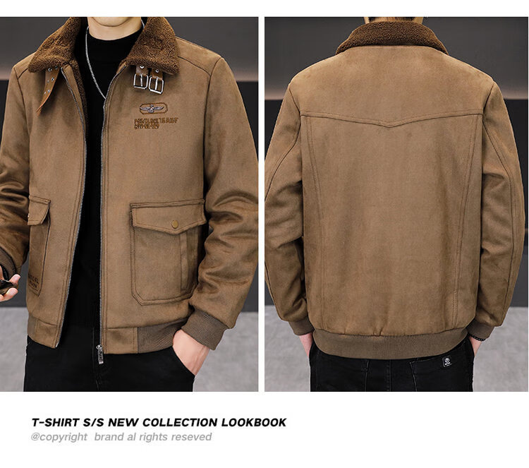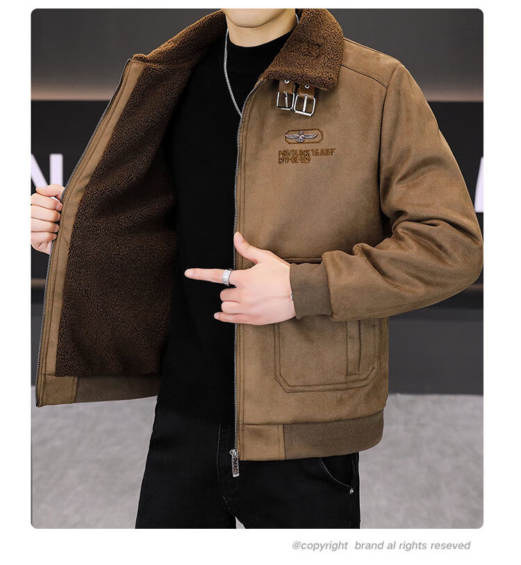 Isaac Paul (YISABAOLUO) autumn and winter high-end light luxury men's leather jacket plus velvet and thickening to keep warm youth deerskin velvet motorcycle fur all-in-one jacket camel high-end (high quality) plus velvet XL 180/100A