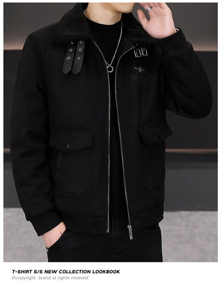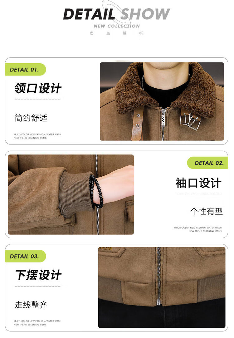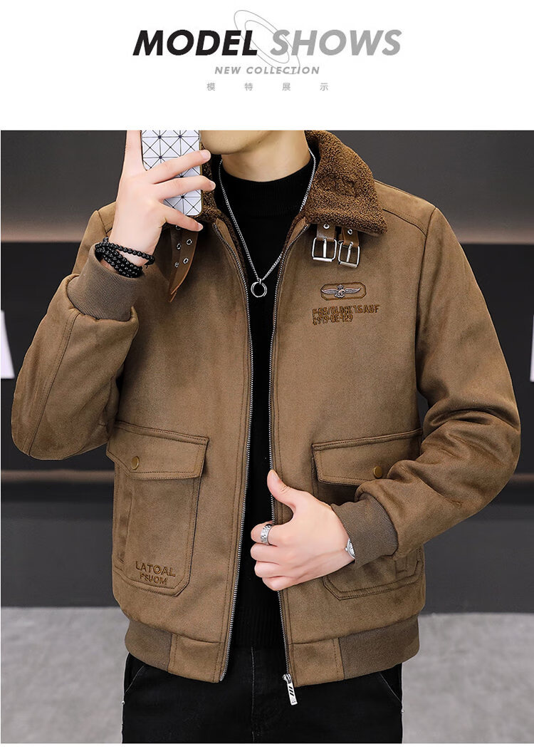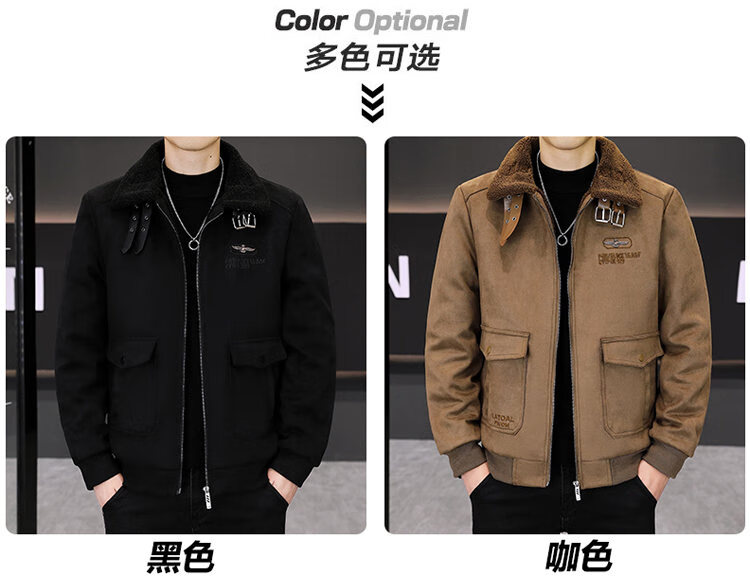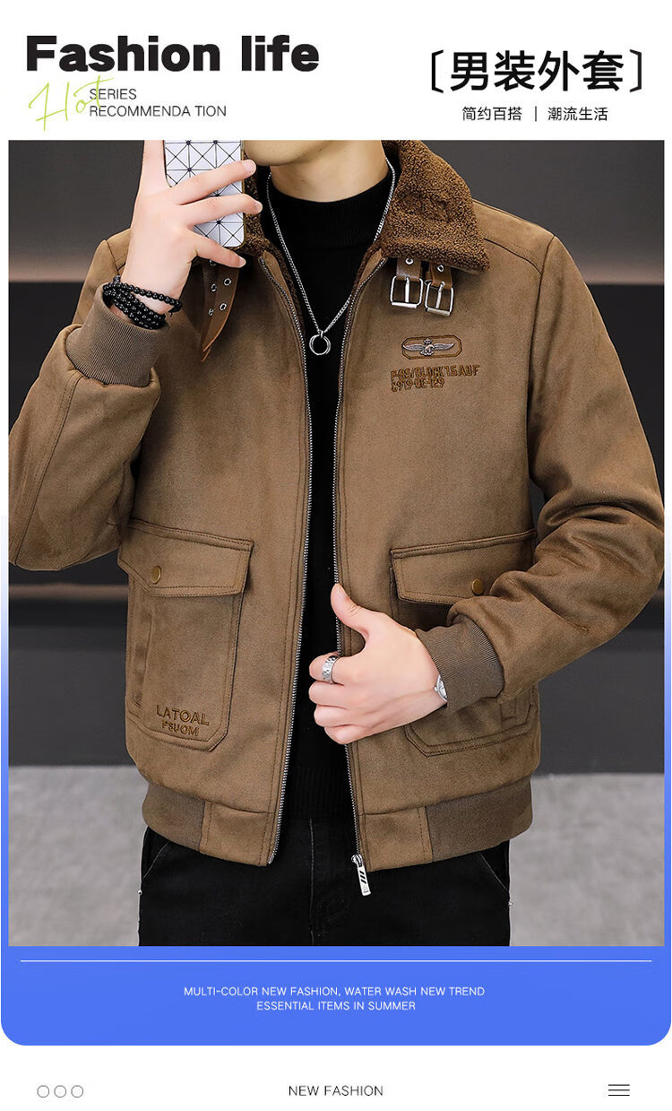Isaac Paul (YISABAOLUO) autumn and winter high-end light luxury men's leather jacket plus velvet and thickening to keep warm youth deerskin velvet motorcycle fur all-in-one jacket camel high-end (high quality) plus velvet XL 180/100A
