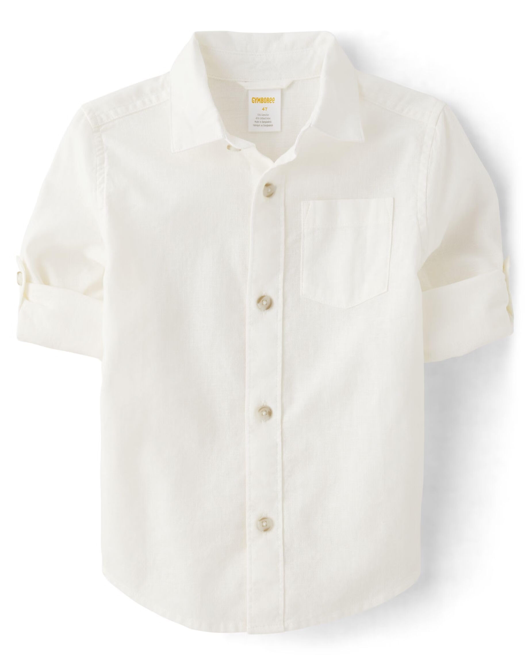 GYMBOReeGymboree Baby Boys and Toddlers Long Sleeve Linen Button-Down Shirt, Solid White, 12 - 18 Months Solid White 12 - 18 Months