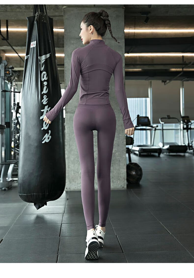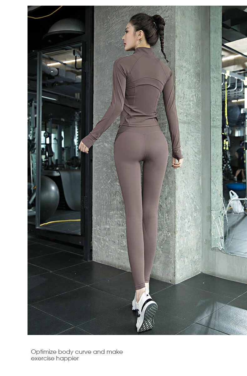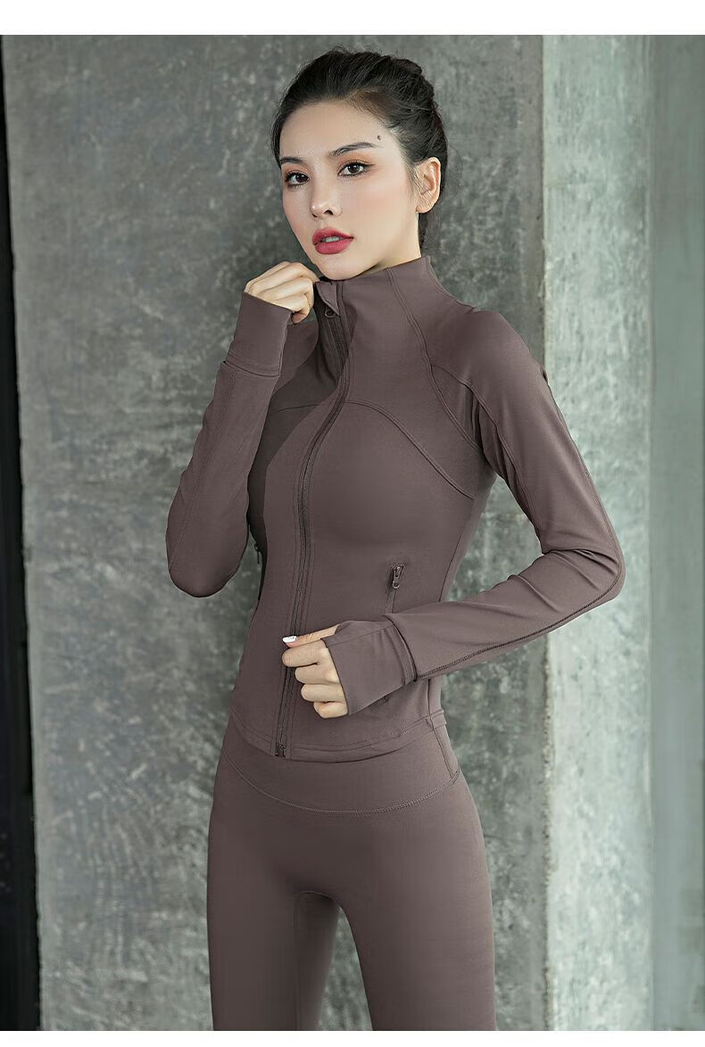 Green Jiantang Yoga Wear Women's New Autumn and Winter Pilates Training Wear Quick-drying High-Looking Fitness Morning Running Wear Sports Suit Cocoa Color Jacket Three-piece Set S Recommendation 80-95 Jin Jin equals 0.5 kg