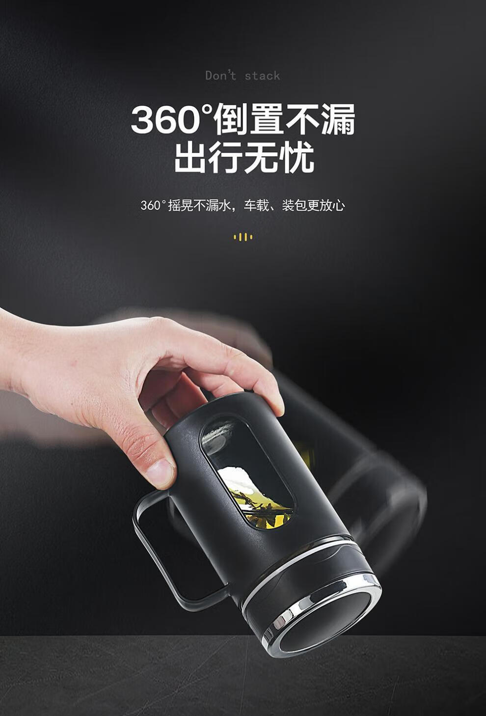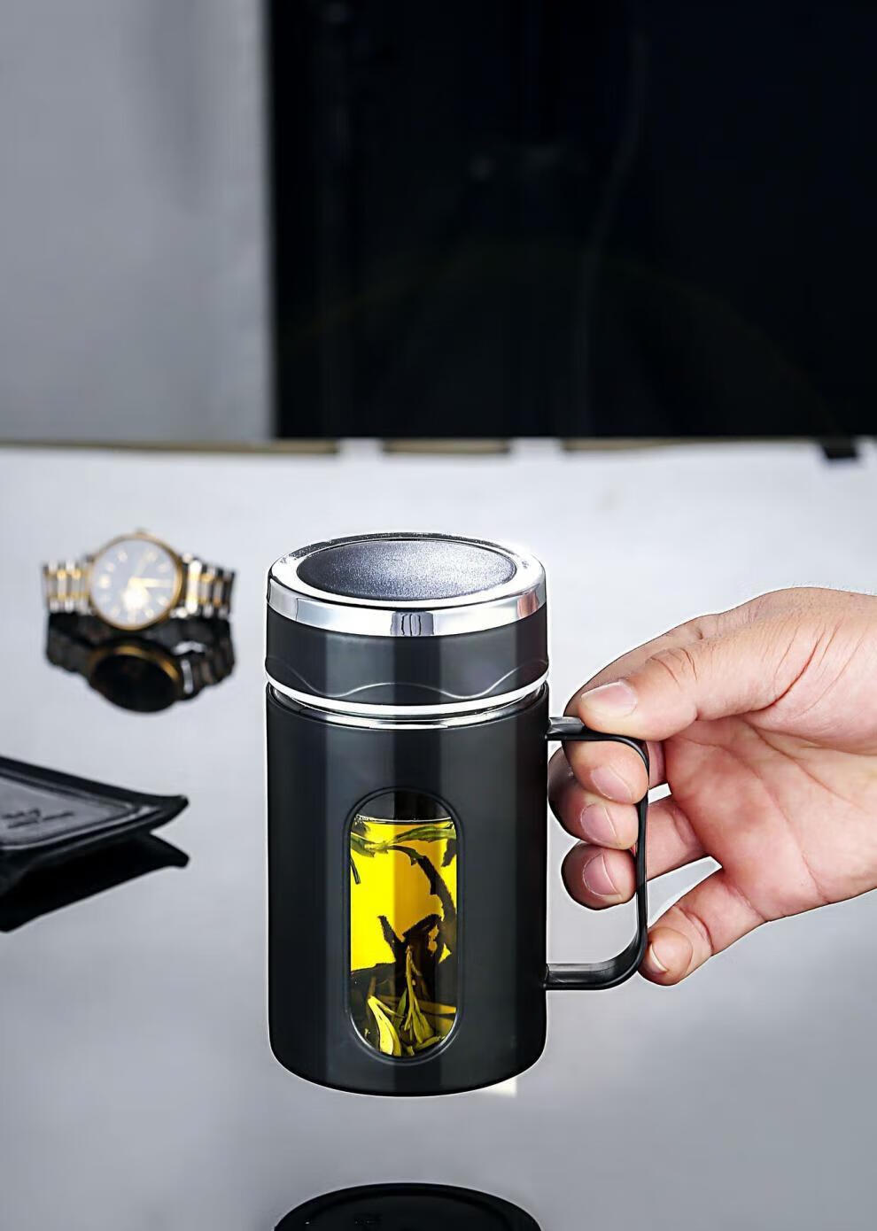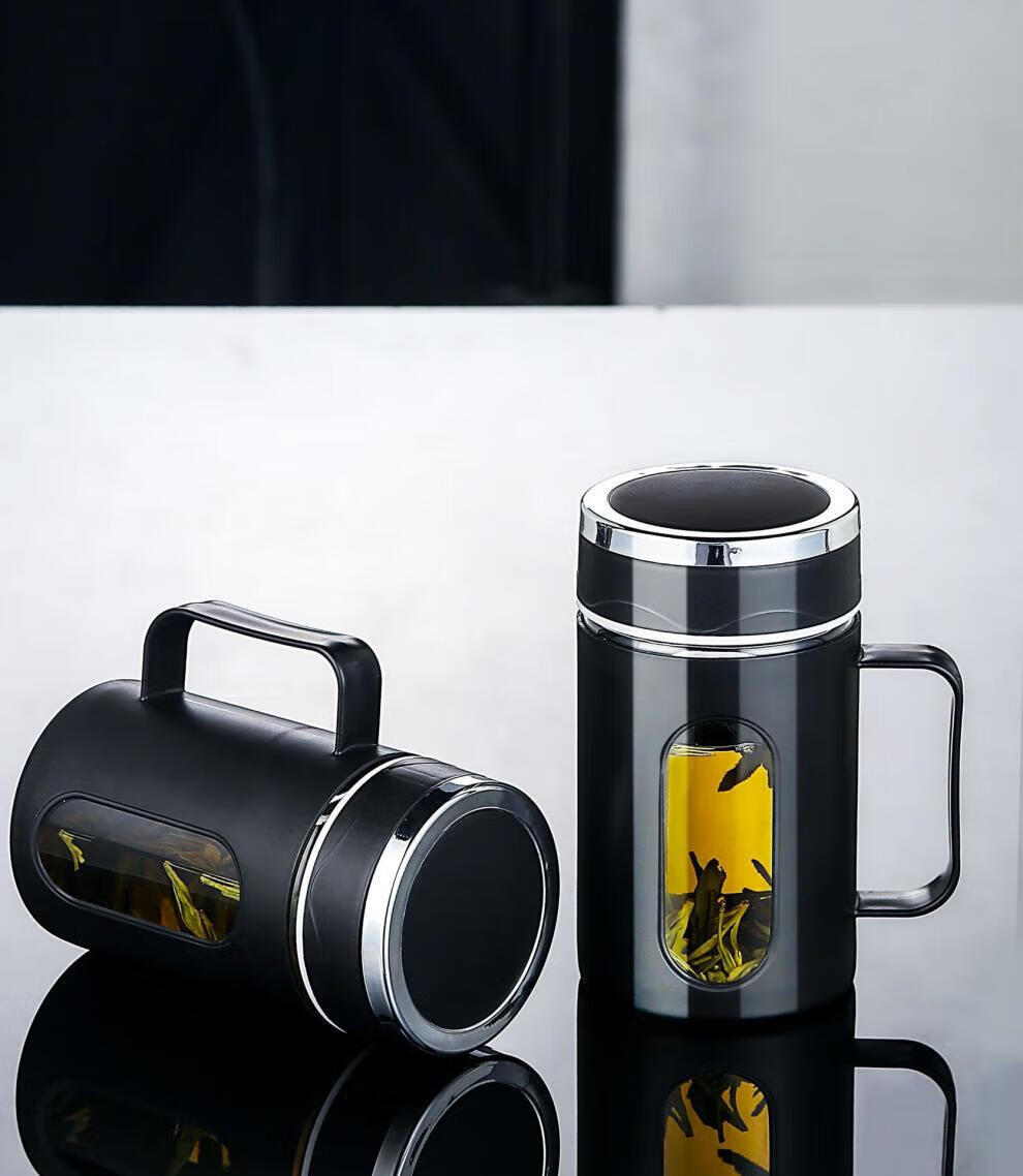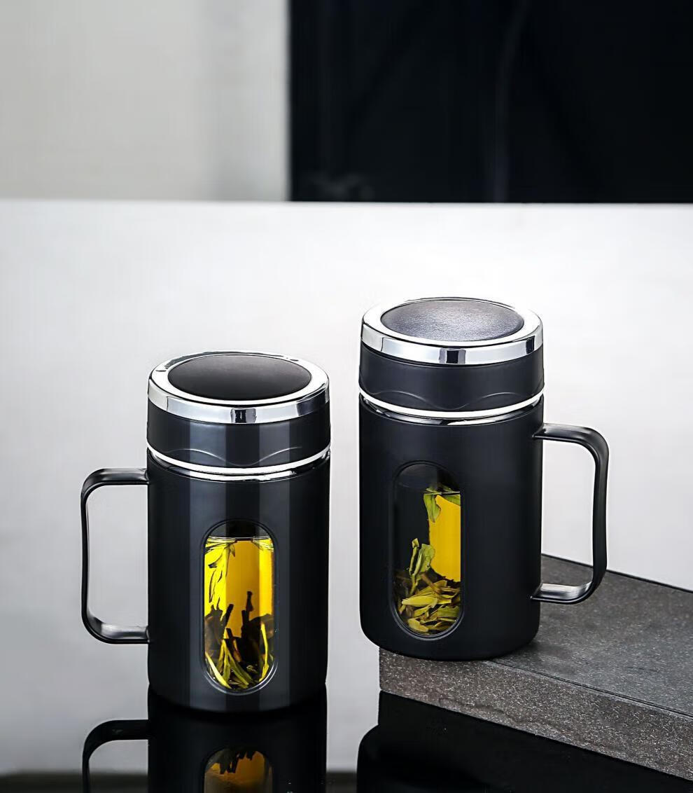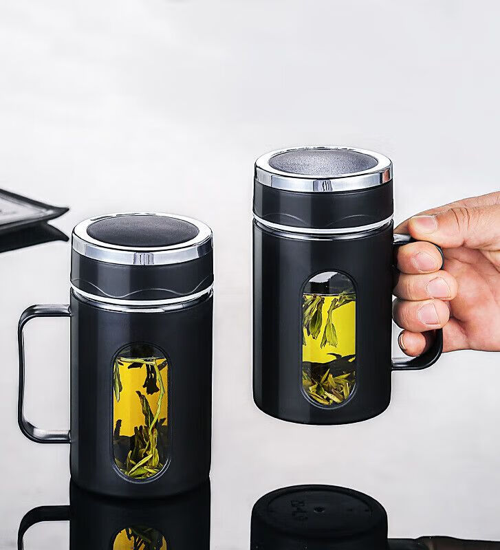 Outdoor travel glass business explosion-proof handle large capacity handle office tea cup anti-fall cup business cup - black 1 piece 401-500ml with tea drain