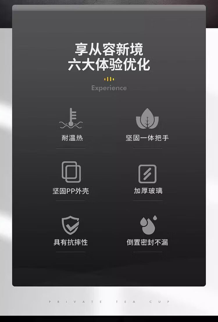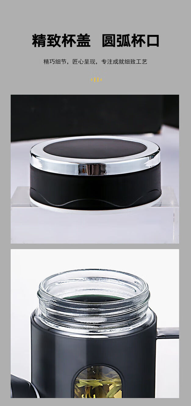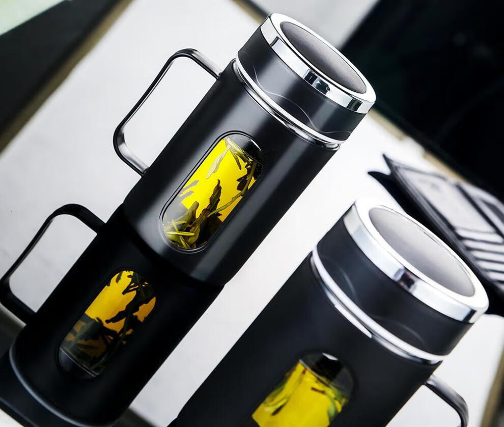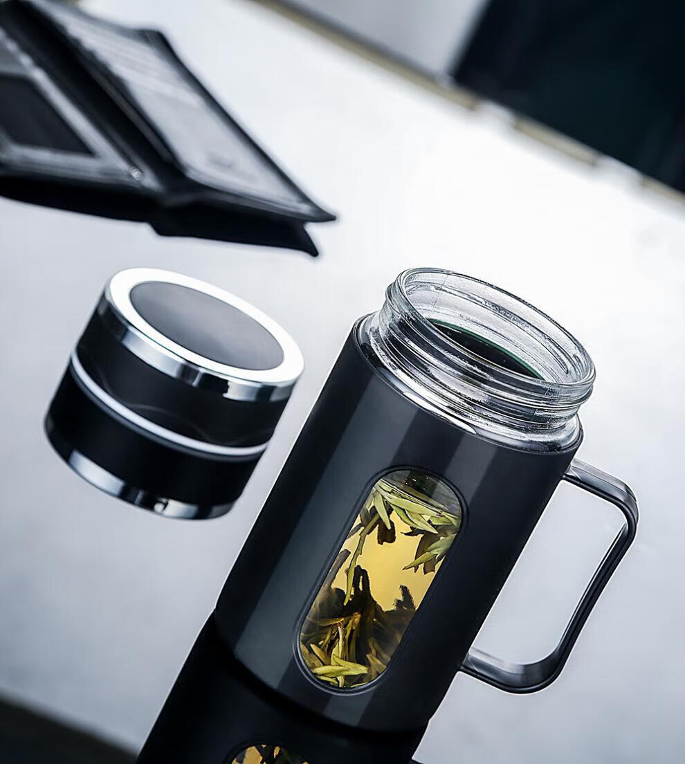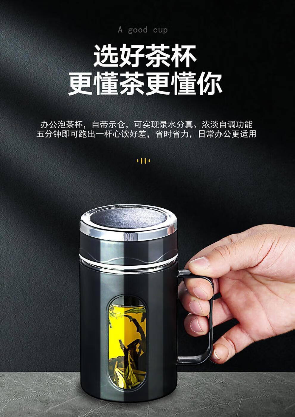 Outdoor travel glass business explosion-proof handle large capacity handle office tea cup anti-fall cup business cup - black 1 piece 401-500ml with tea drain
