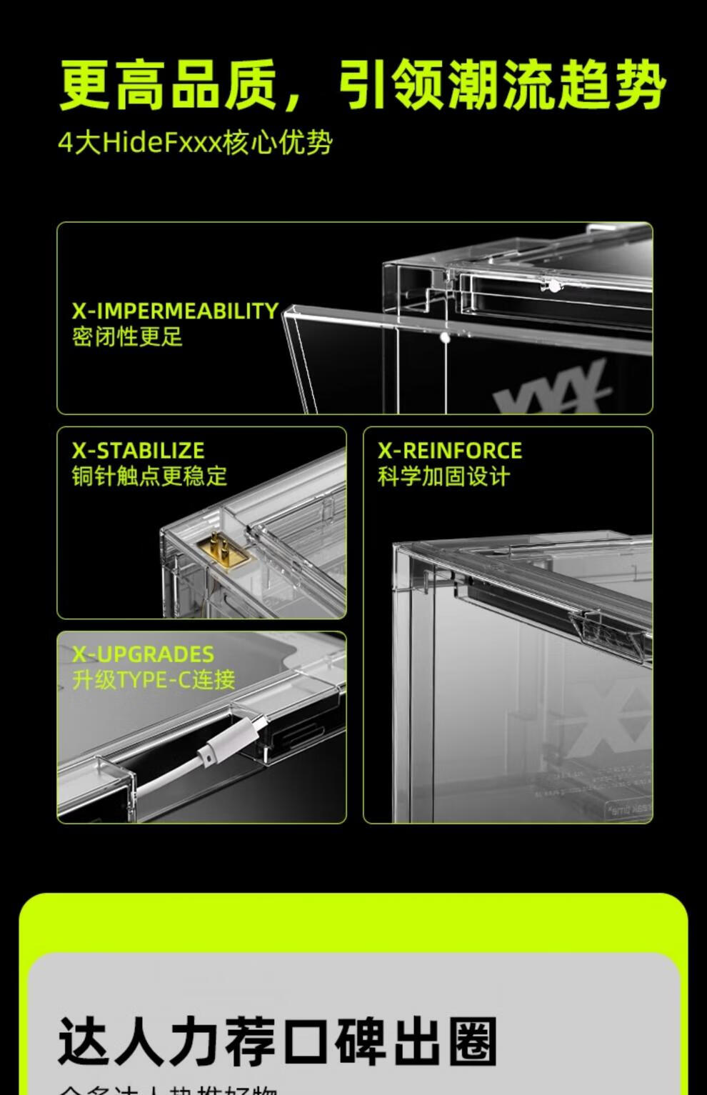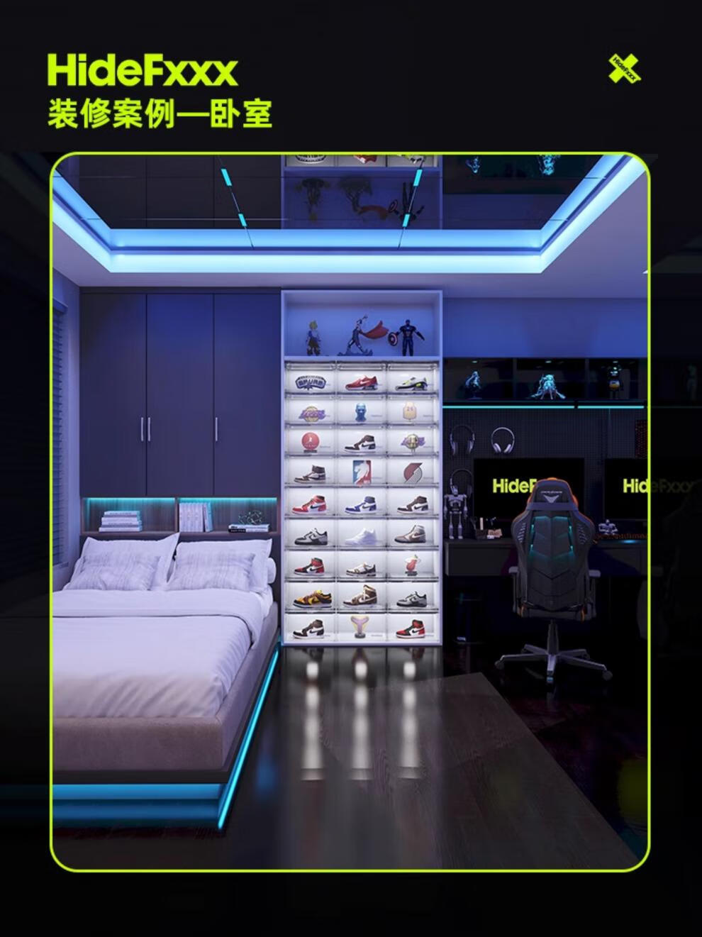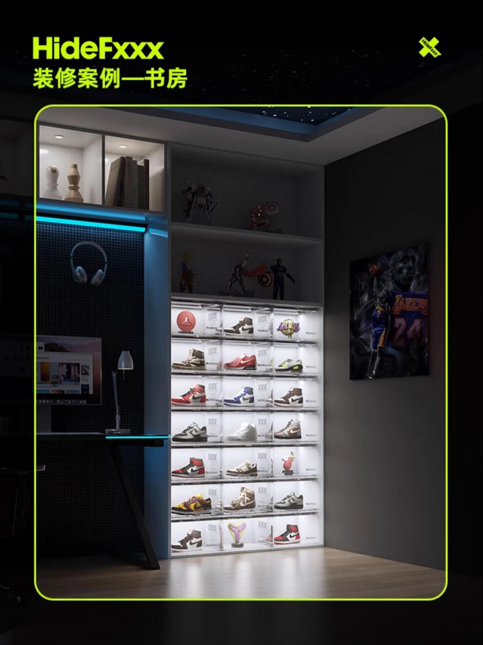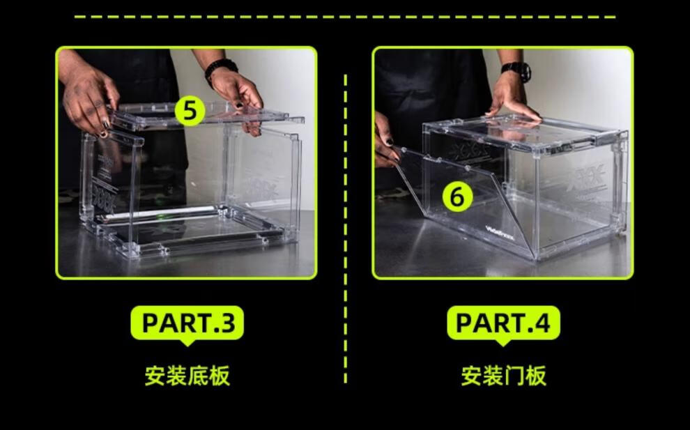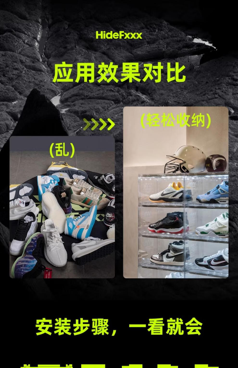 HideFxxx voice-activated light shoe box PET transparent sneaker storage box LED light-emitting display wall cabinet can hold 54 yards. No installation required. Fully transparent with 16 lights. Free power adapter 380x285x230mm