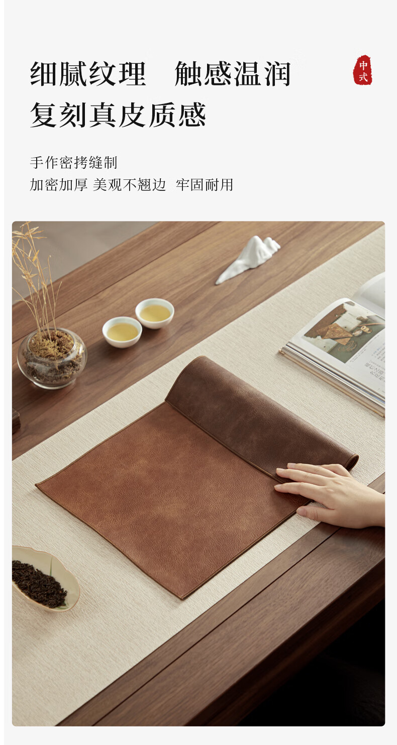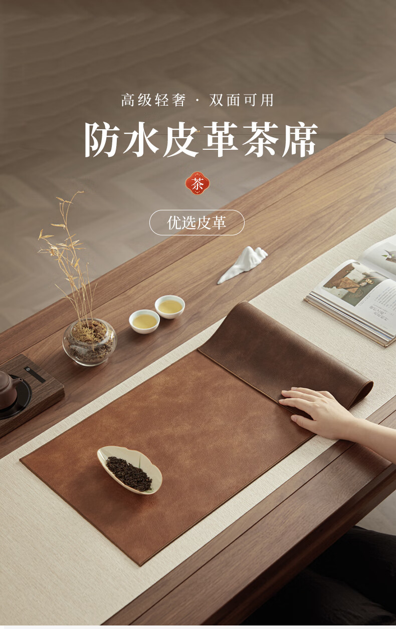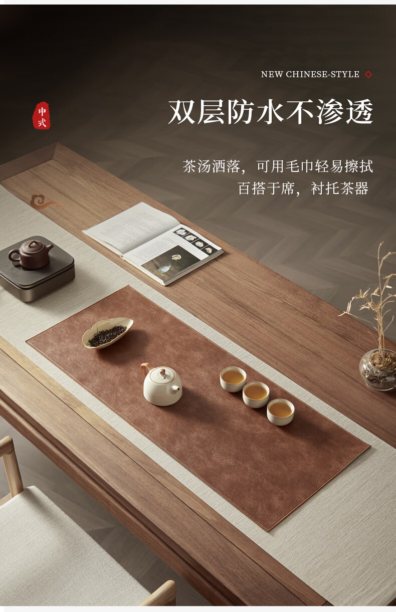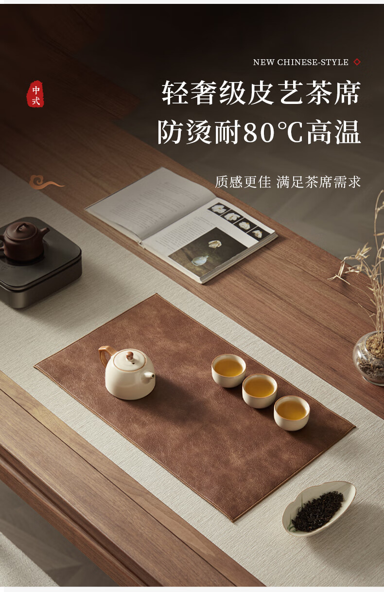 Yihutea (YIHUTEA) Yihutea leather tea mat tea towel tea table pad dry bubble table household light luxury new waterproof tea mat Kung Fu tea set large leather tea mat 33*80cm