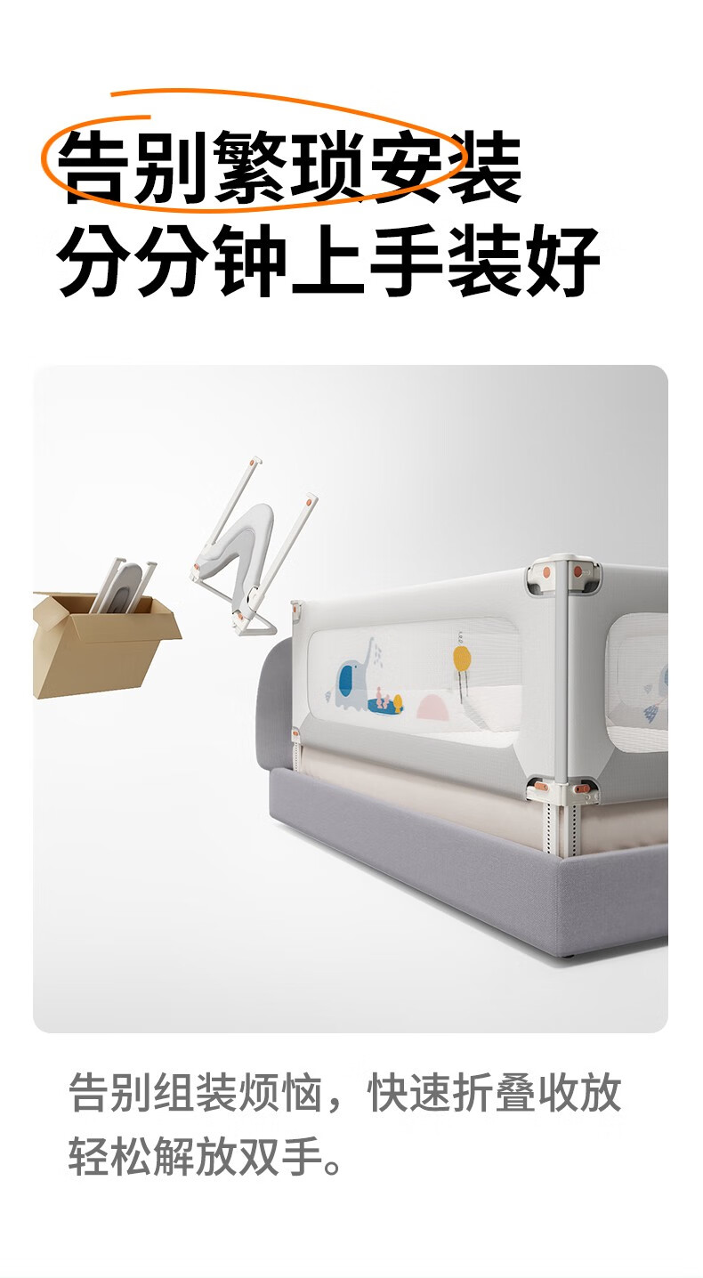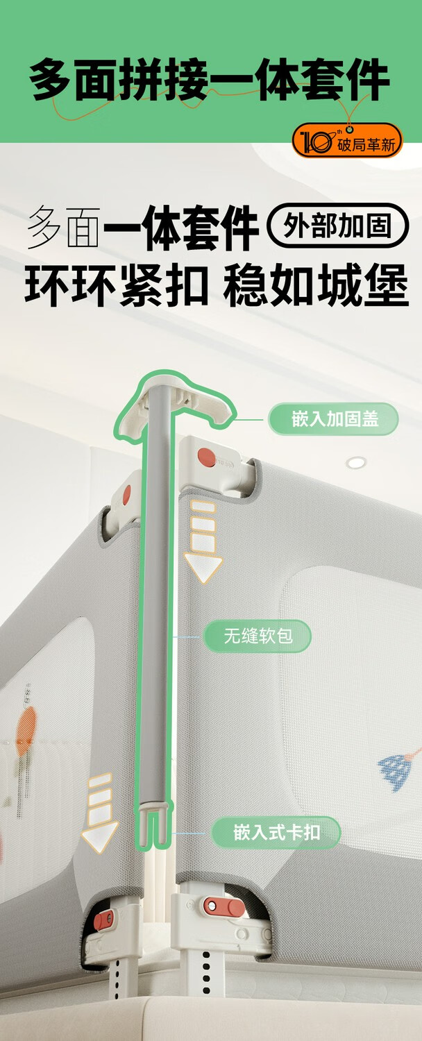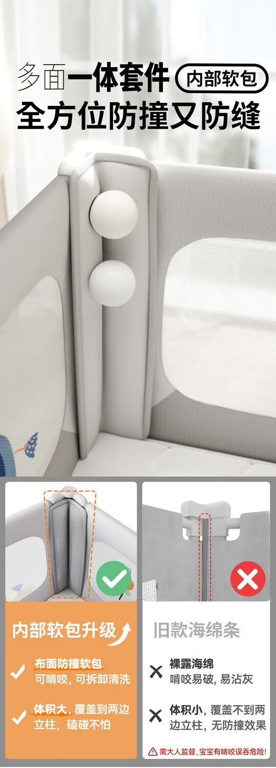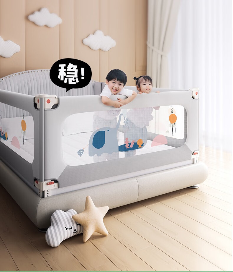 TUBELLE TO HAPPY Children's Bed Fence Heightened Anti-Fall Mosquito Net Crib Guardrail Big Bed Bedside Bed Fence Mosquito Net Combination Huan 0m Paradise 3 Pieces Included 1.8m Single Sided Pack