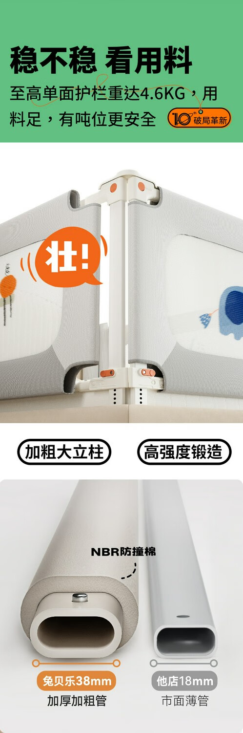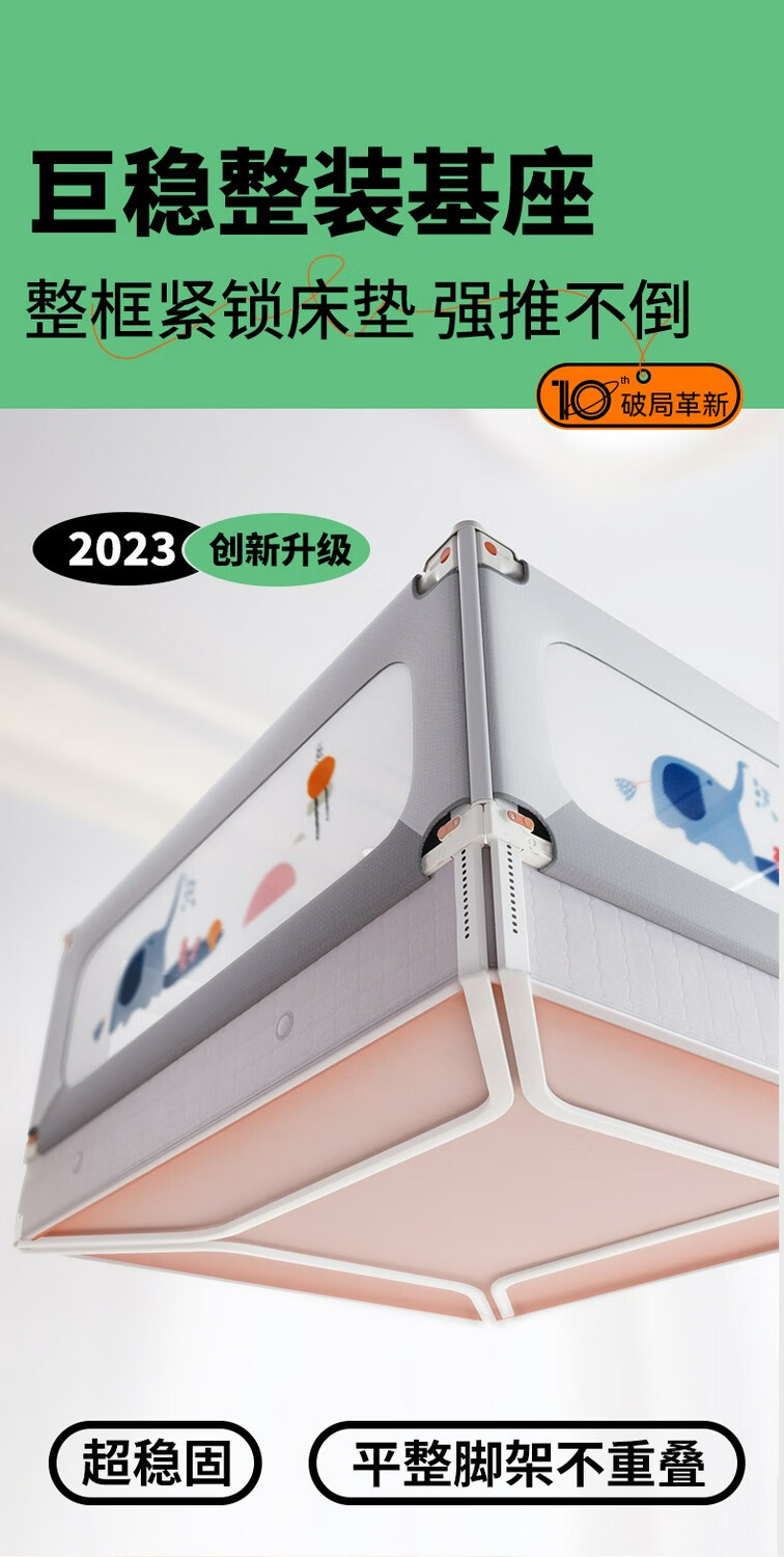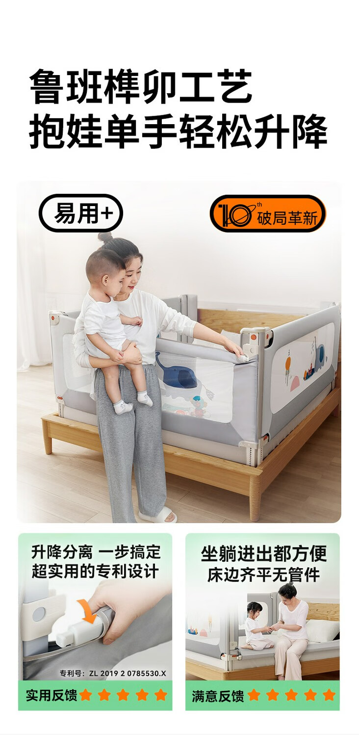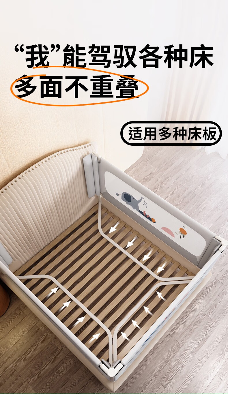 TUBELLE TO HAPPY Children's Bed Fence Heightened Anti-Fall Mosquito Net Crib Guardrail Big Bed Bedside Bed Fence Mosquito Net Combination Huan 0m Paradise 3 Pieces Included 1.8m Single Sided Pack