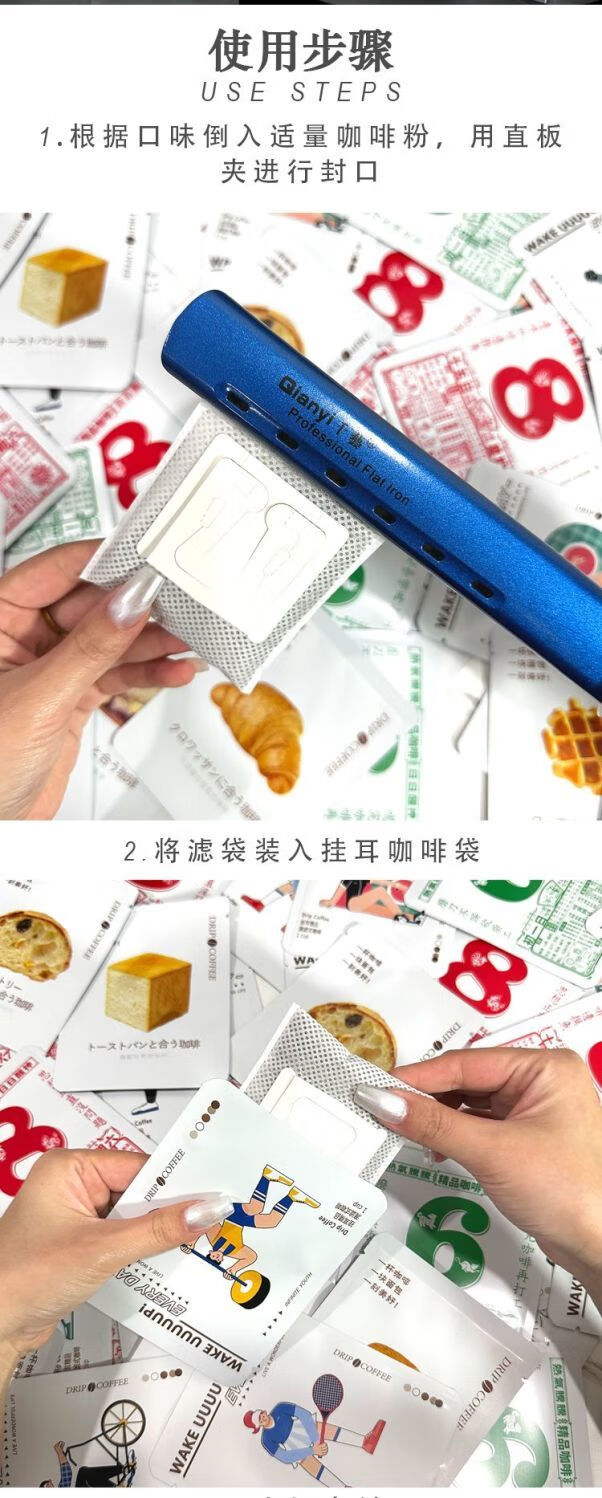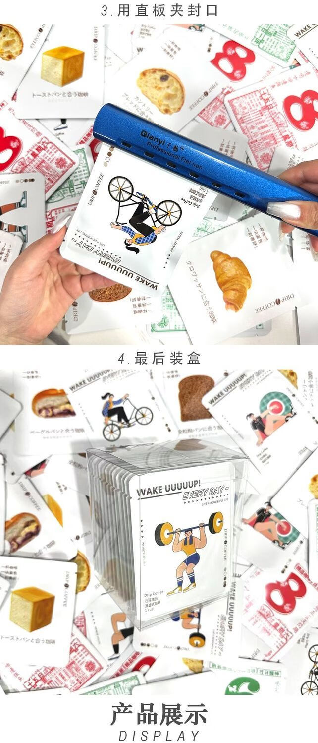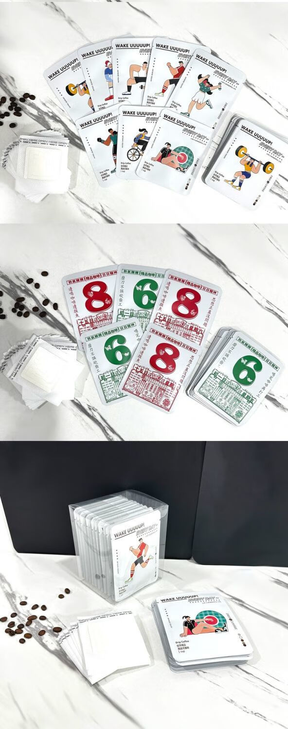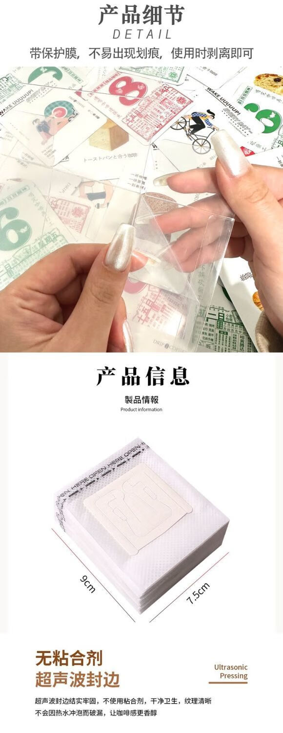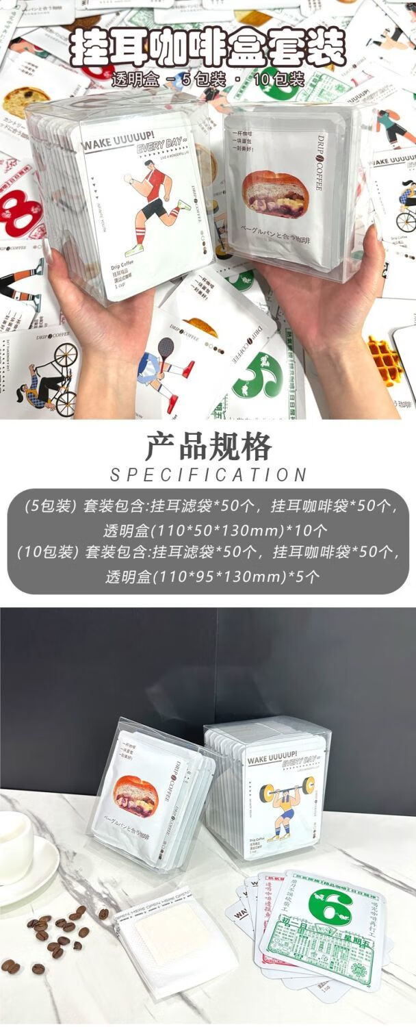 XJ Chaosihui creative ear-hanging coffee bag three-side sealing bag PVC transparent box hand-brewed coffee powder filter bag outsourcing 9 body patterns mixed with 50 pieces - no filter bag