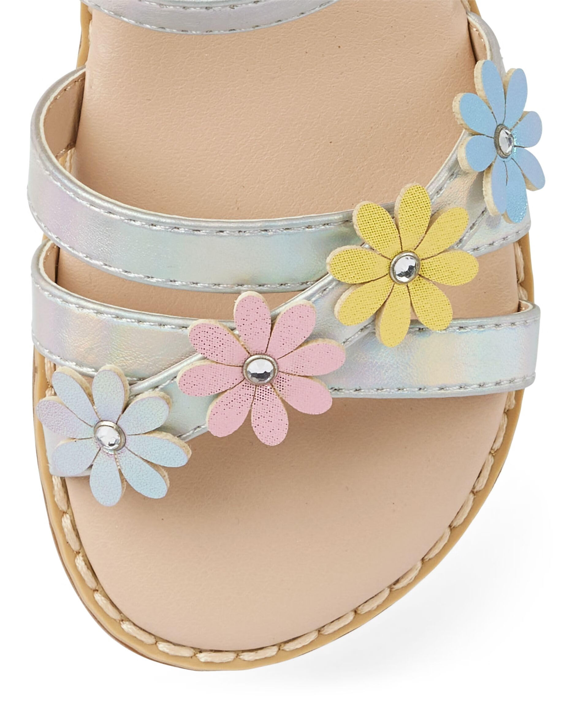 GYMBOReeGymboree Girls Toddler Flat Sandals, Silver Floral, 9 Toddlers Silver Floral 9 Toddlers