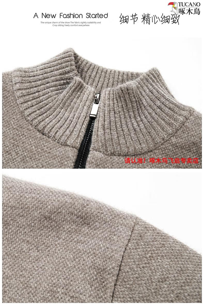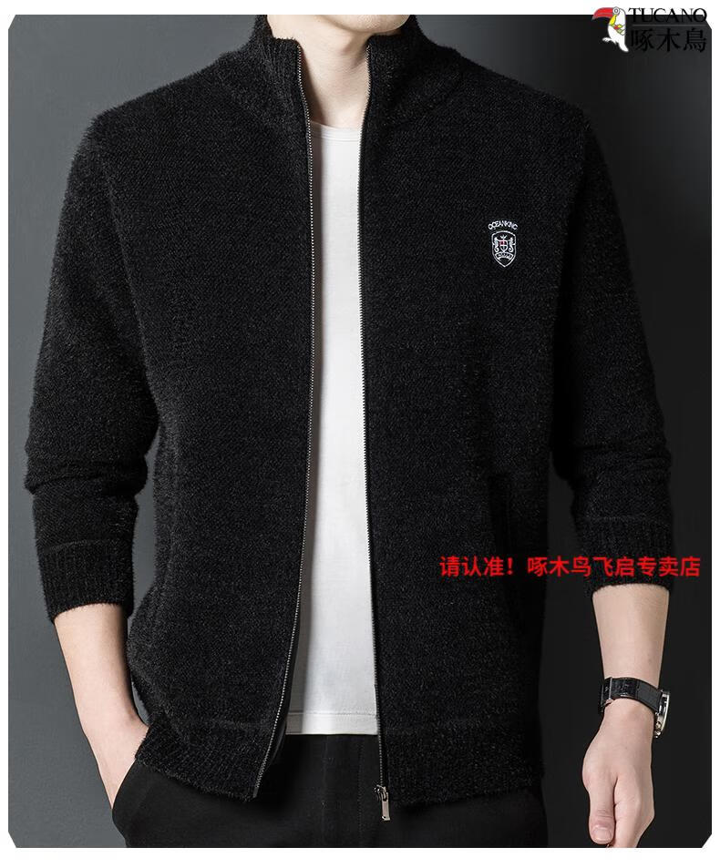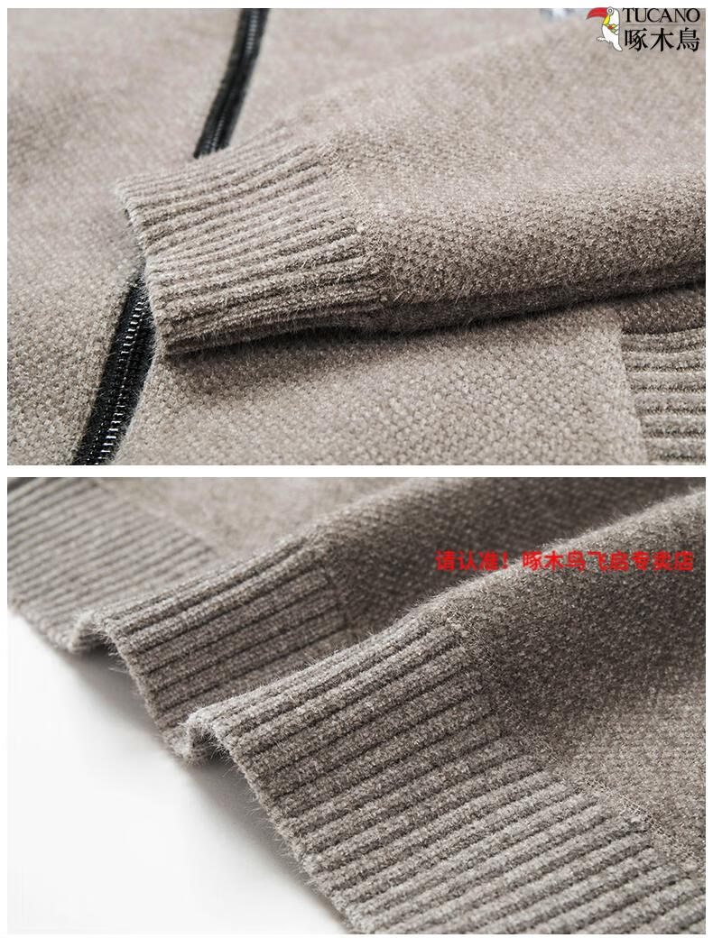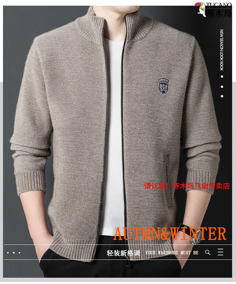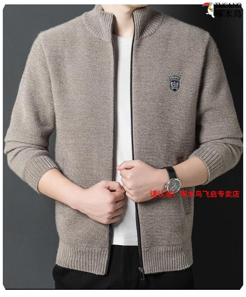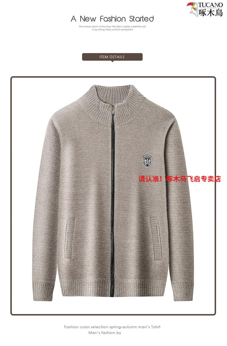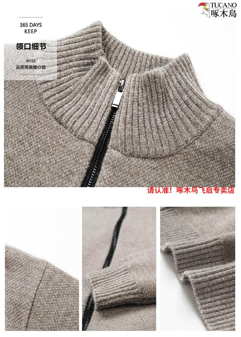 Woodpecker wool cardigan jacket 100% wool autumn and winter men's stand-up collar thickened zipper casual top sweater khaki M 165 recommended 100-120Jin Jin equals 0.5 kg