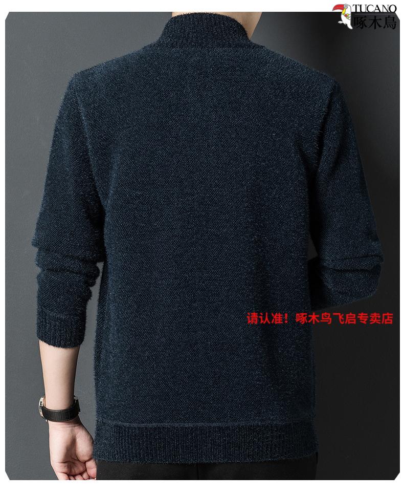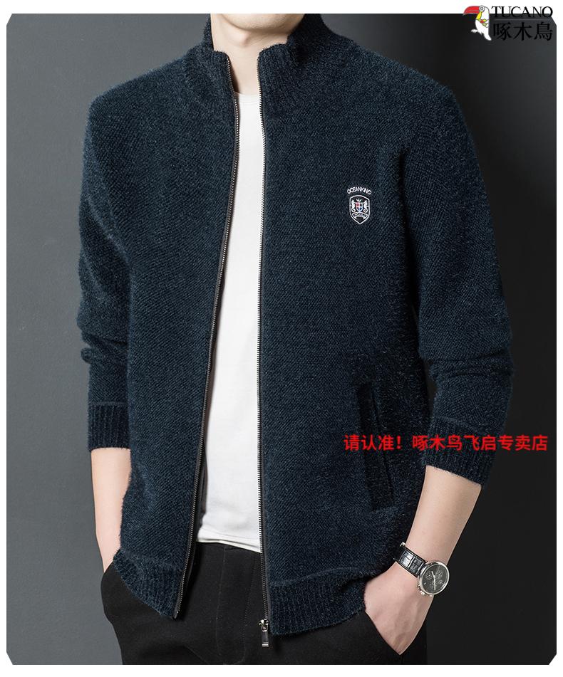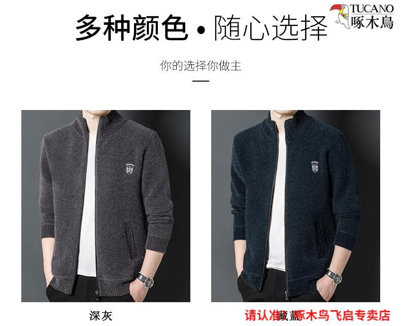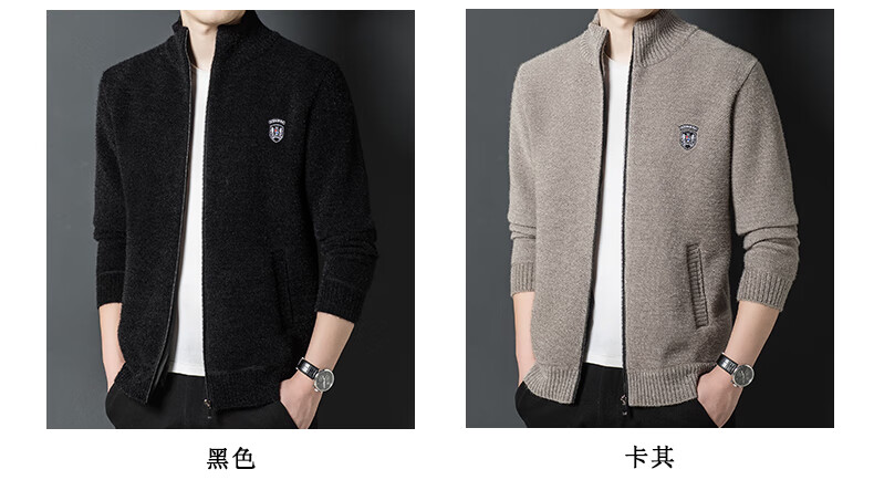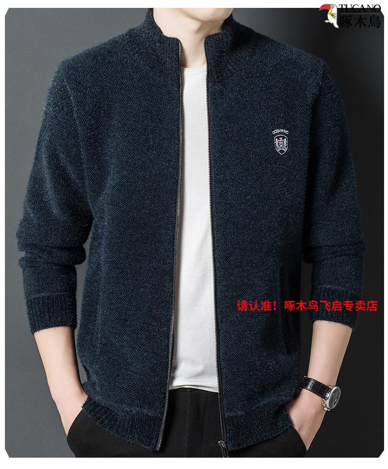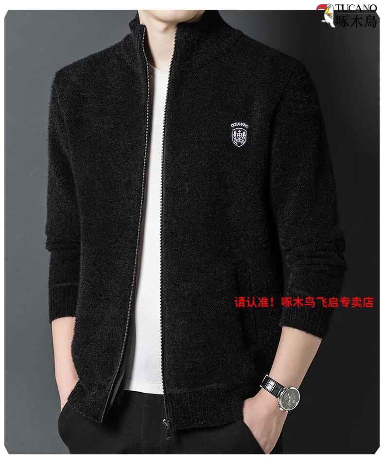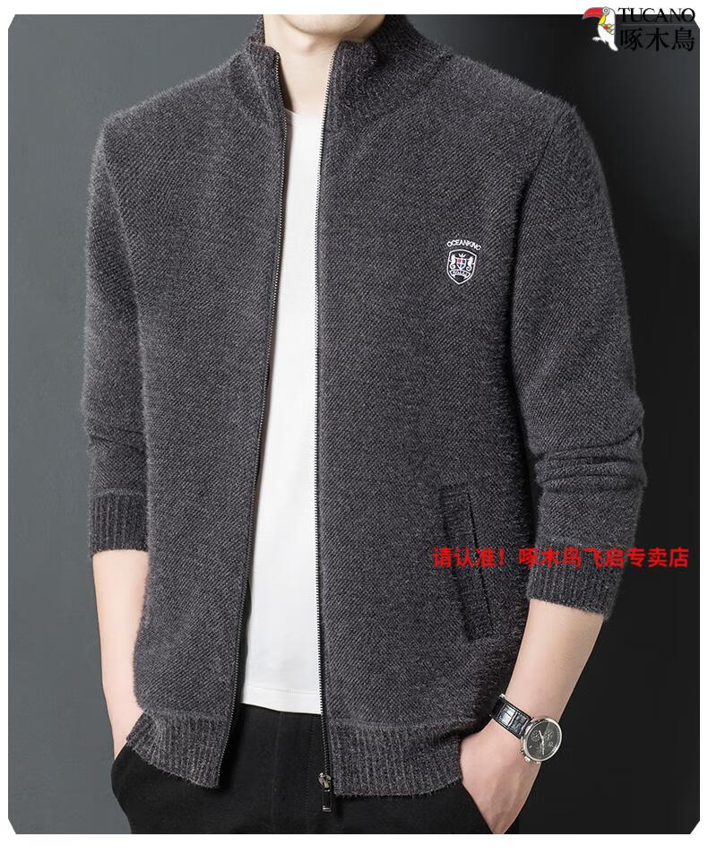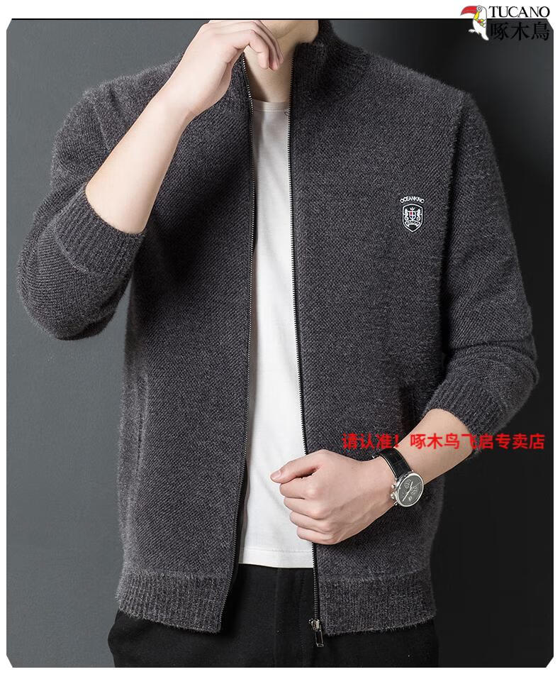 Woodpecker wool cardigan jacket 100% wool autumn and winter men's stand-up collar thickened zipper casual top sweater khaki M 165 recommended 100-120Jin Jin equals 0.5 kg