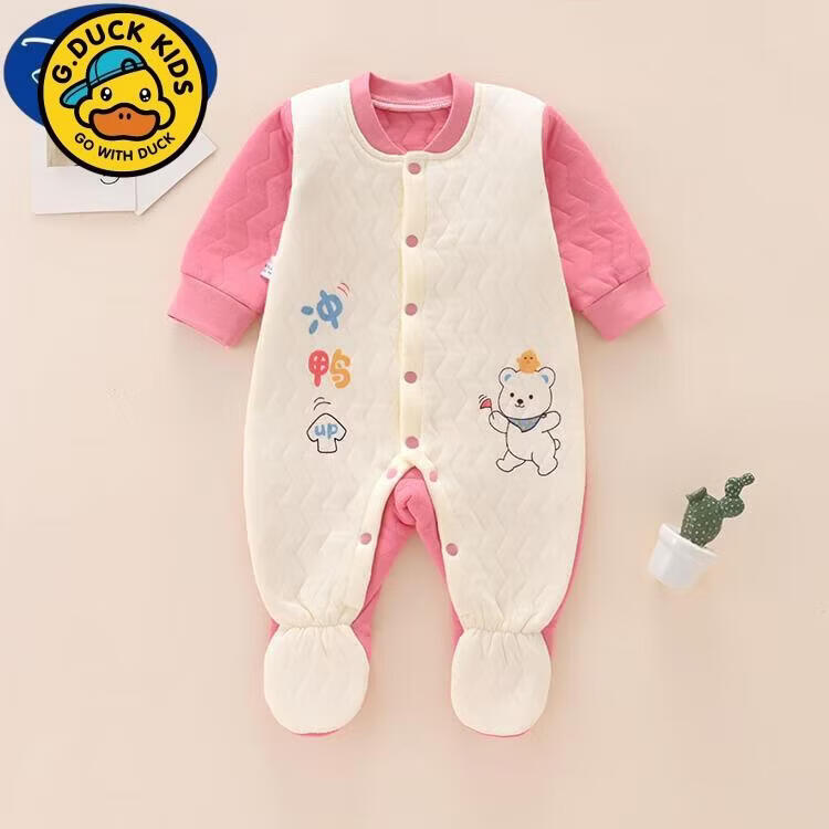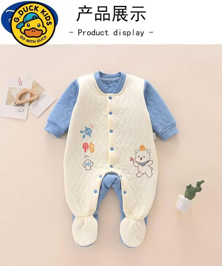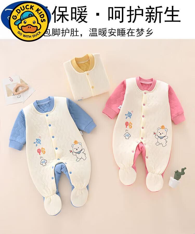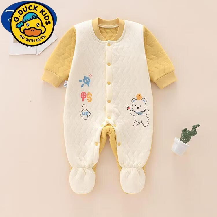 G.duck Newborn Baby Clothes Autumn and Winter Newborn Baby Onesies with Foot Covered and Padded to Keep Warm and Foot-proof A199 Warm One-piece Yellow 66cm Baby Around 3-6 Months