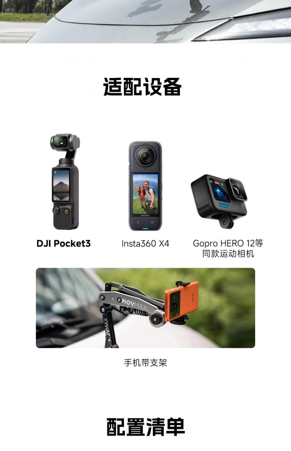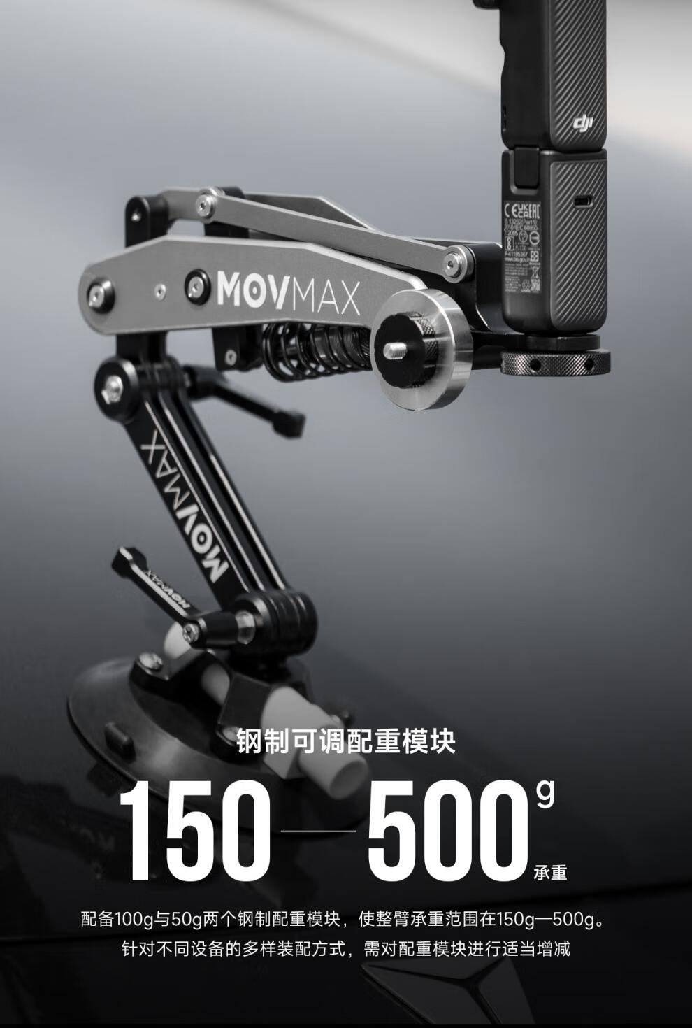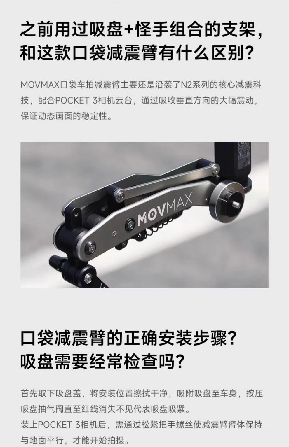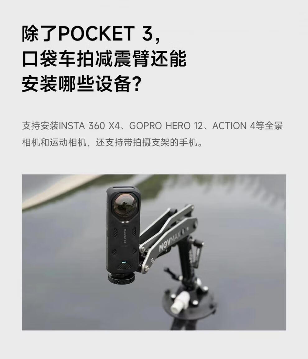Weigu MOVMAX pocket car shooting shock-absorbing arm suitable for DJI pocket3 insta360x4 goproHERO12 pocket car shooting shock-absorbing arm