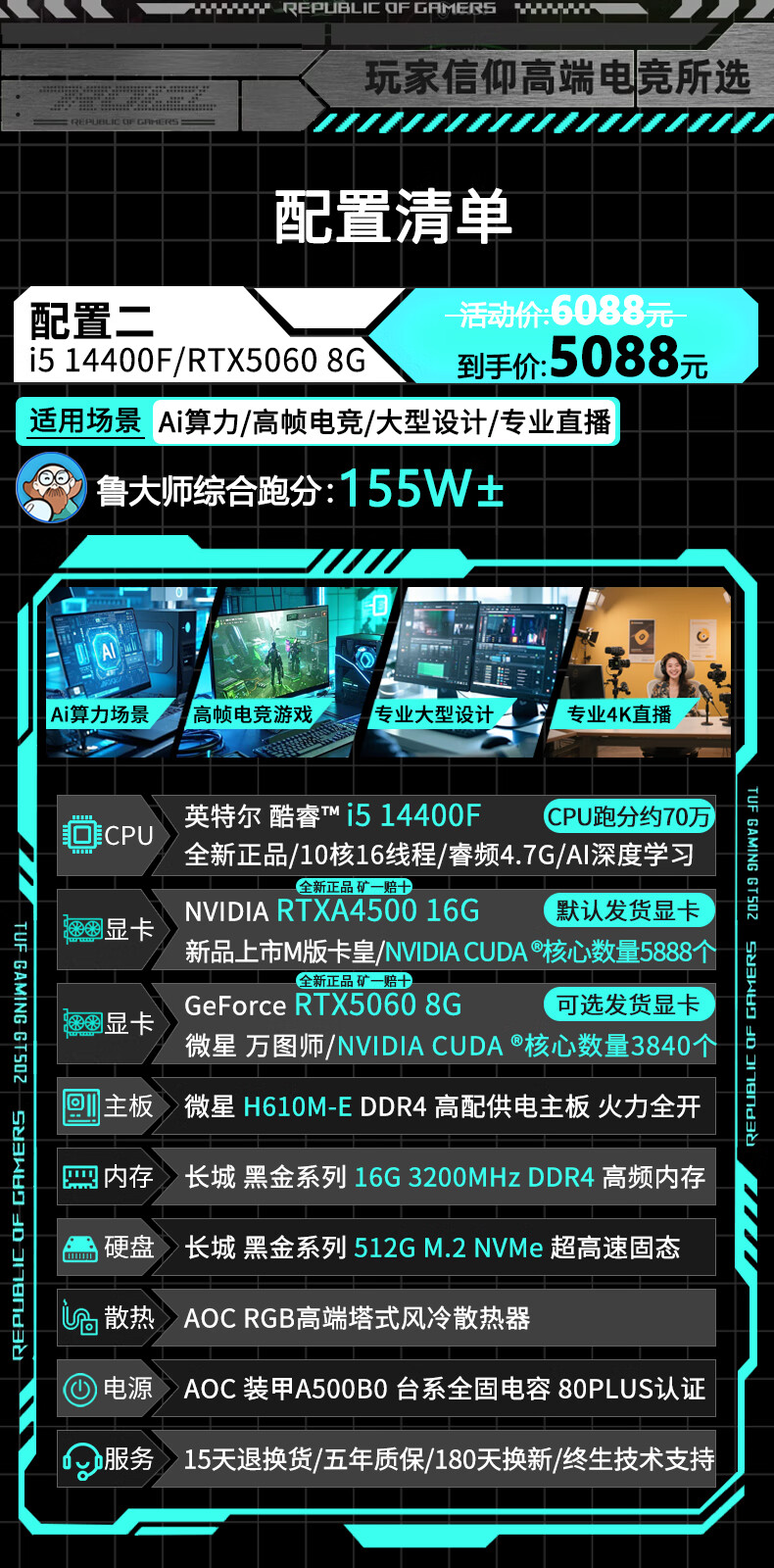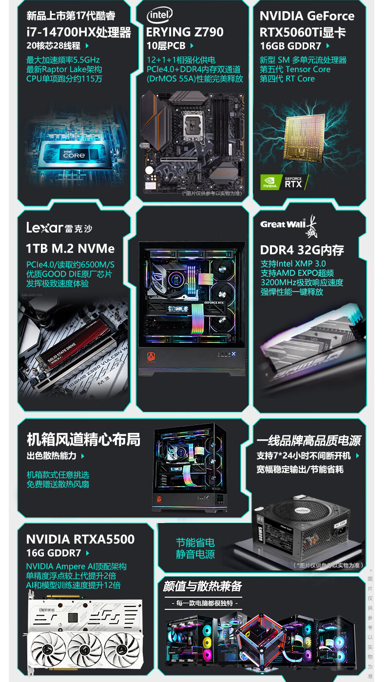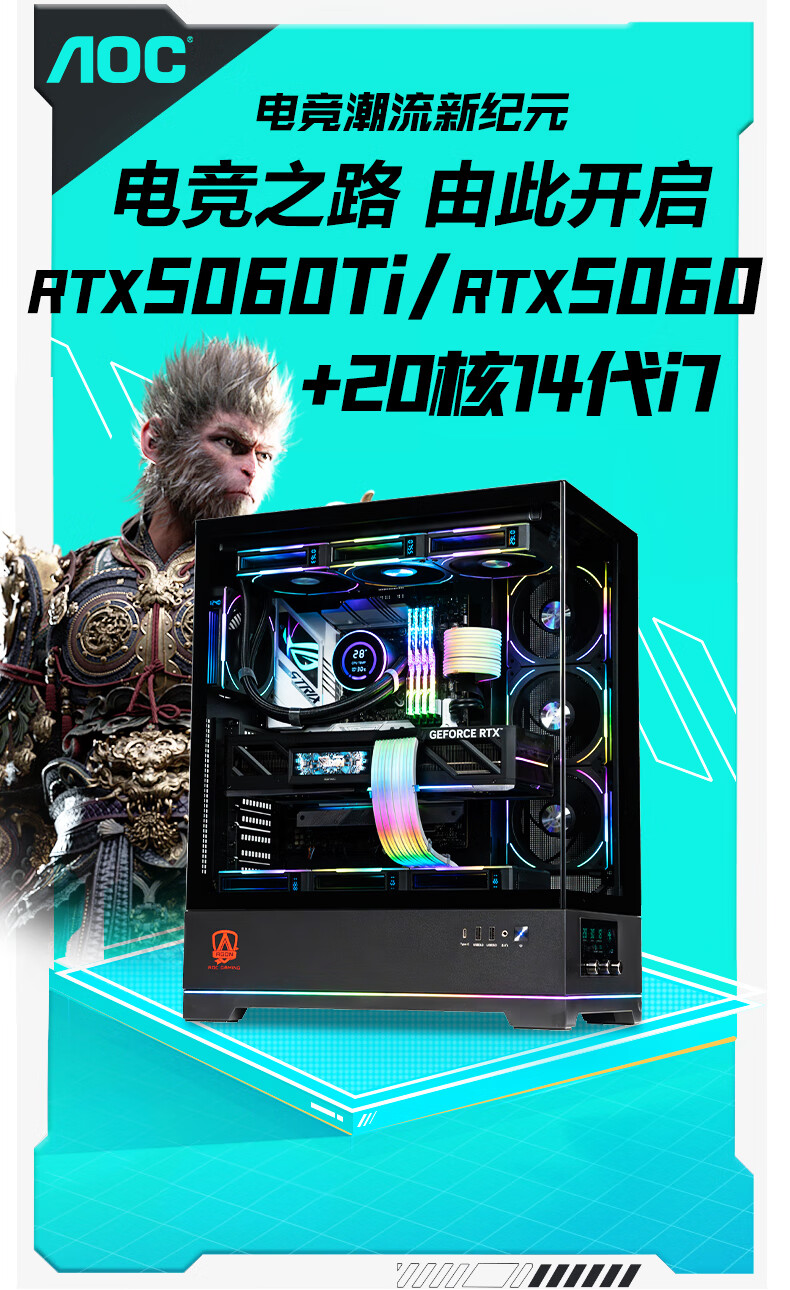 AOC Intel 20-core overclocked 14th generation Core i7 14700HX+MSI RTX5060Ti/RTX5060/5050 desktop computer e-sports design live broadcast assembly host with 6丨20-core 14th generation i7+RTX5060Ti 16G All series of 14th generation computer host Five-year warranty丨New and authentic