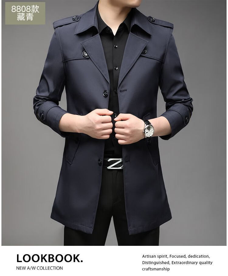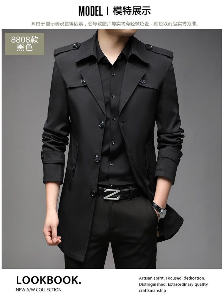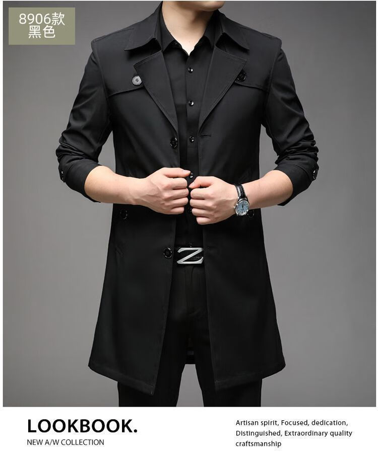 Brand off-code Korean style mid-length windbreaker men's thin style 2023 autumn and winter new style middle-aged British style men's jacket trendy black cloth windbreaker thin section 2XL (185) 2XL 145-160Jin Jin is equal to 0.5kg wear