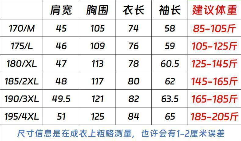 China (cm) 165 / 88-90 170 / 96-98 175 / 108-110 180 / 118-122 185 / 126-130