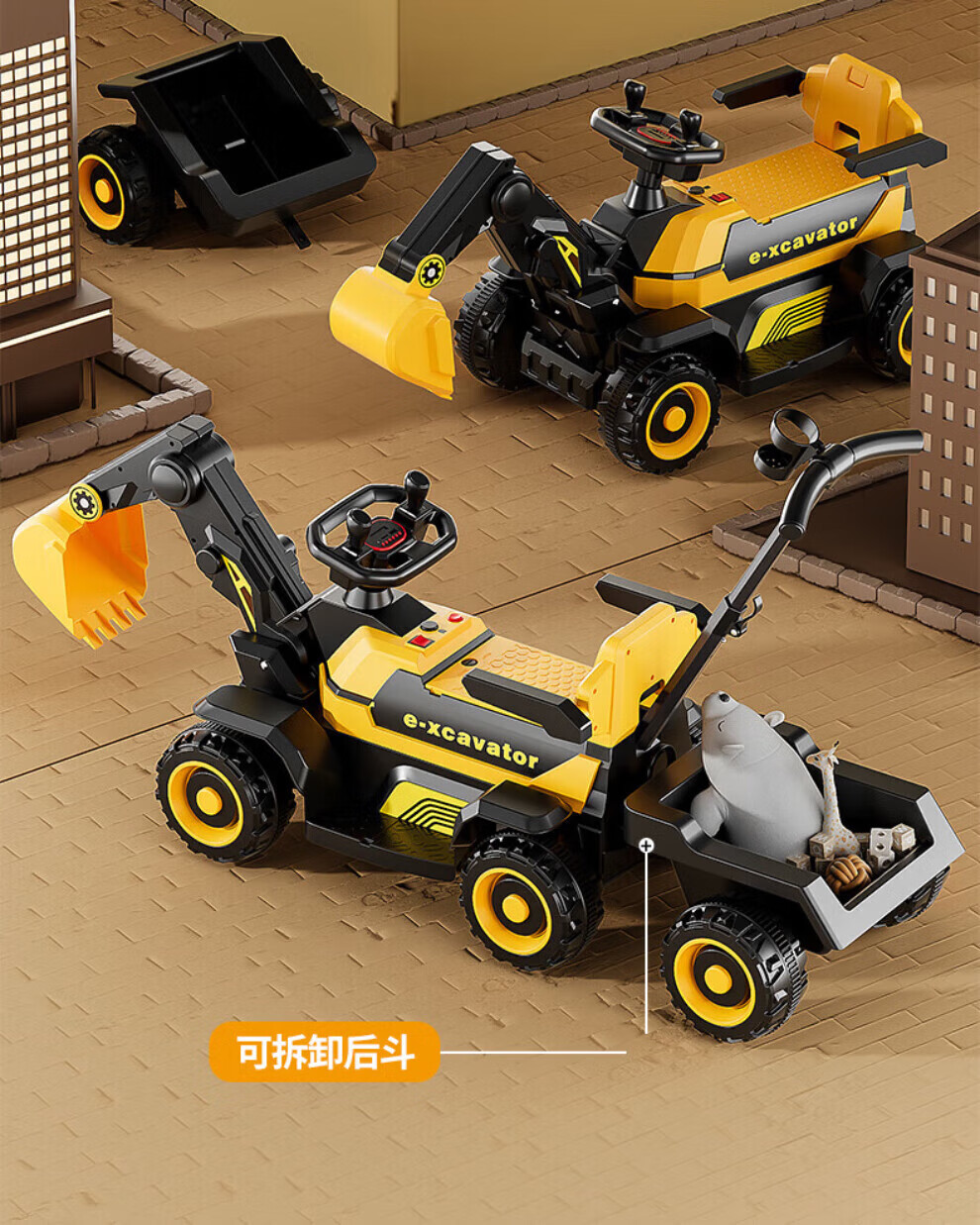 Kabutou children's excavator toy car can sit on a boy's remote control electric excavator can sit on a large model, remote control enlarged and thickened red, fully electric/sliding