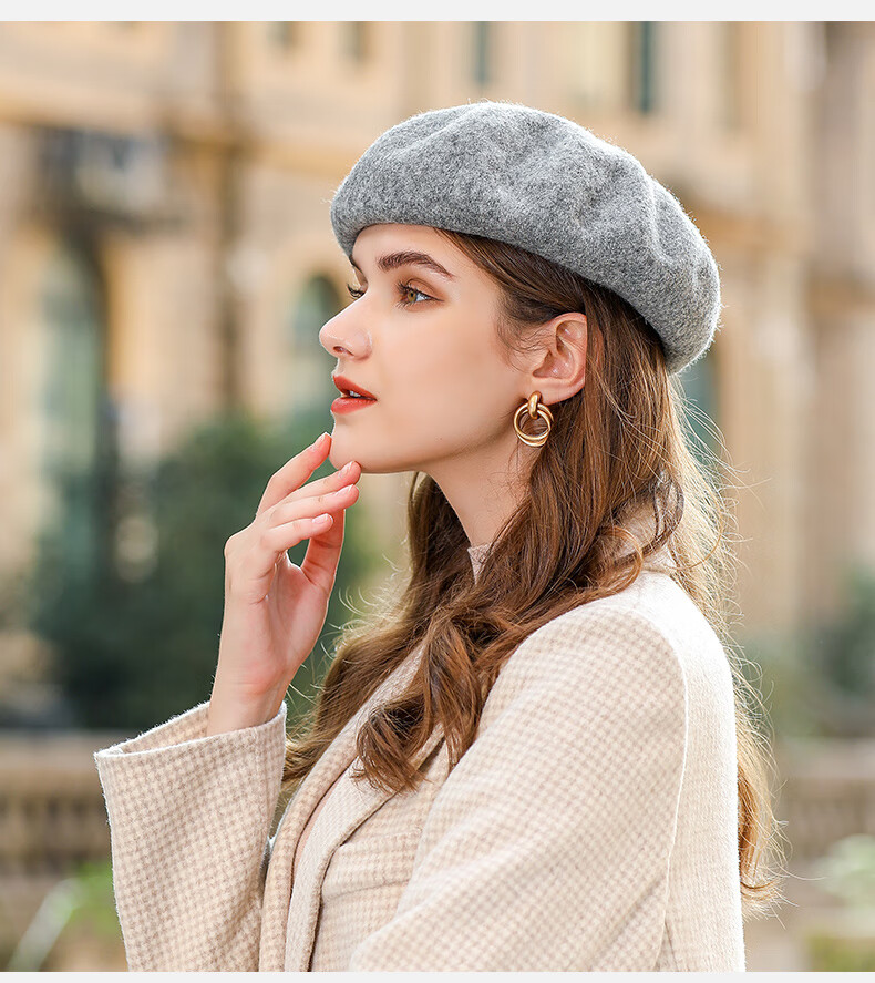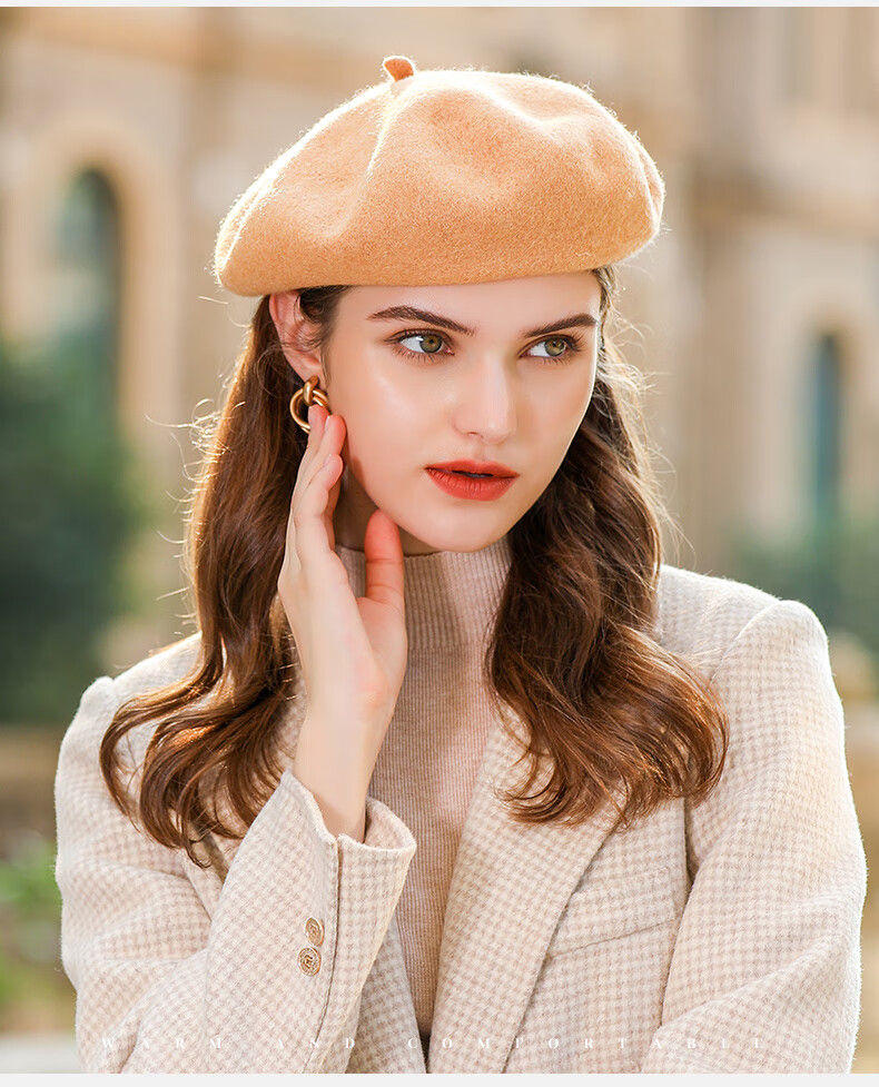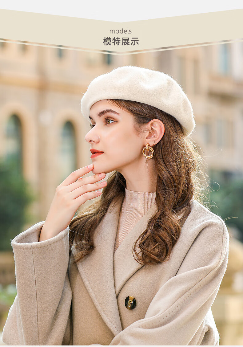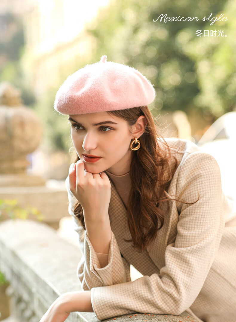Scarecrow (MEXICAN) hat for women, autumn and winter British retro warm beret, fashionable and stylish octagonal hat, versatile and trendy, white_milk white, one size fits all