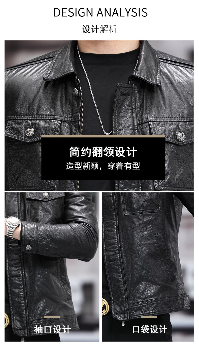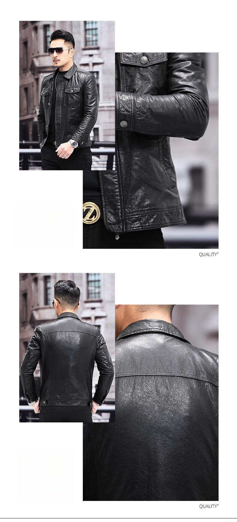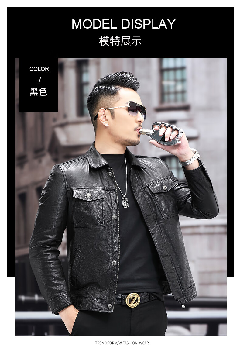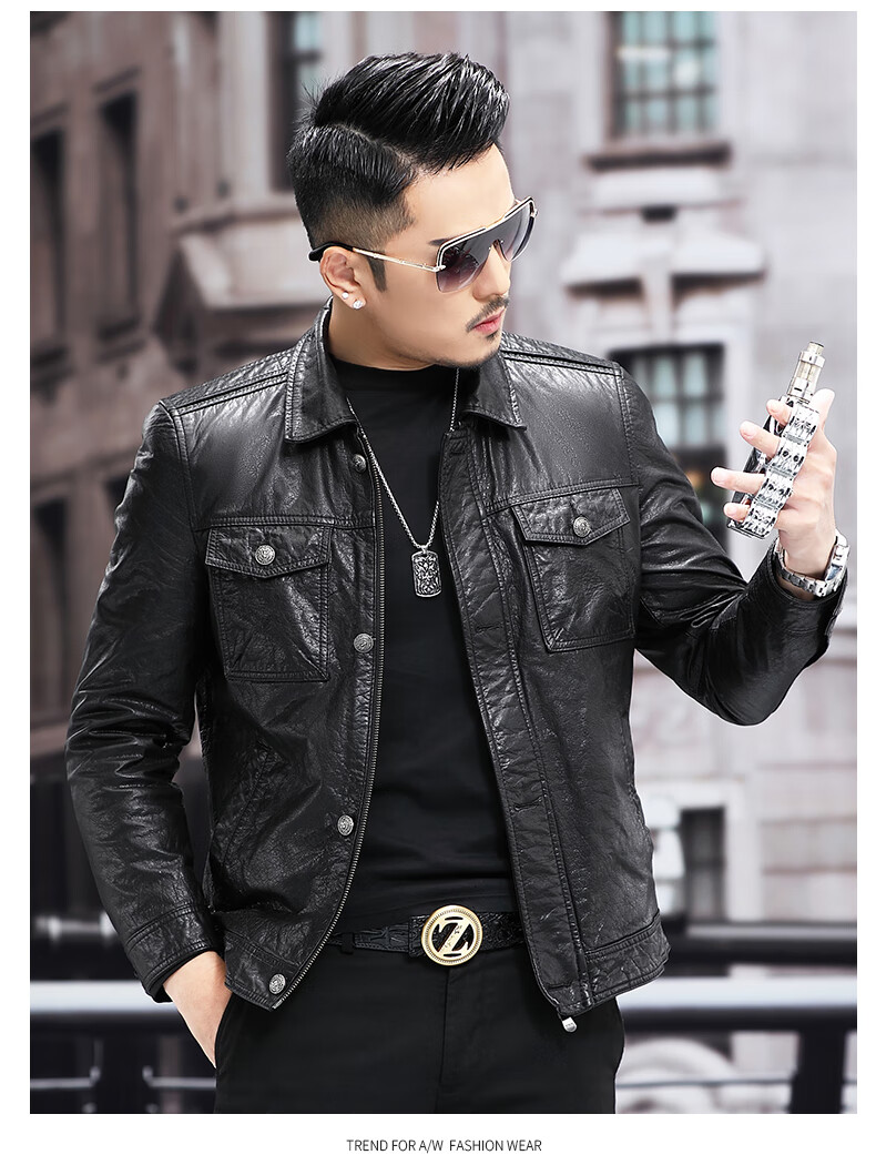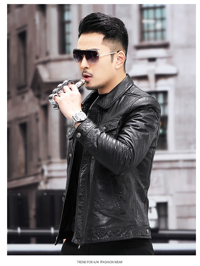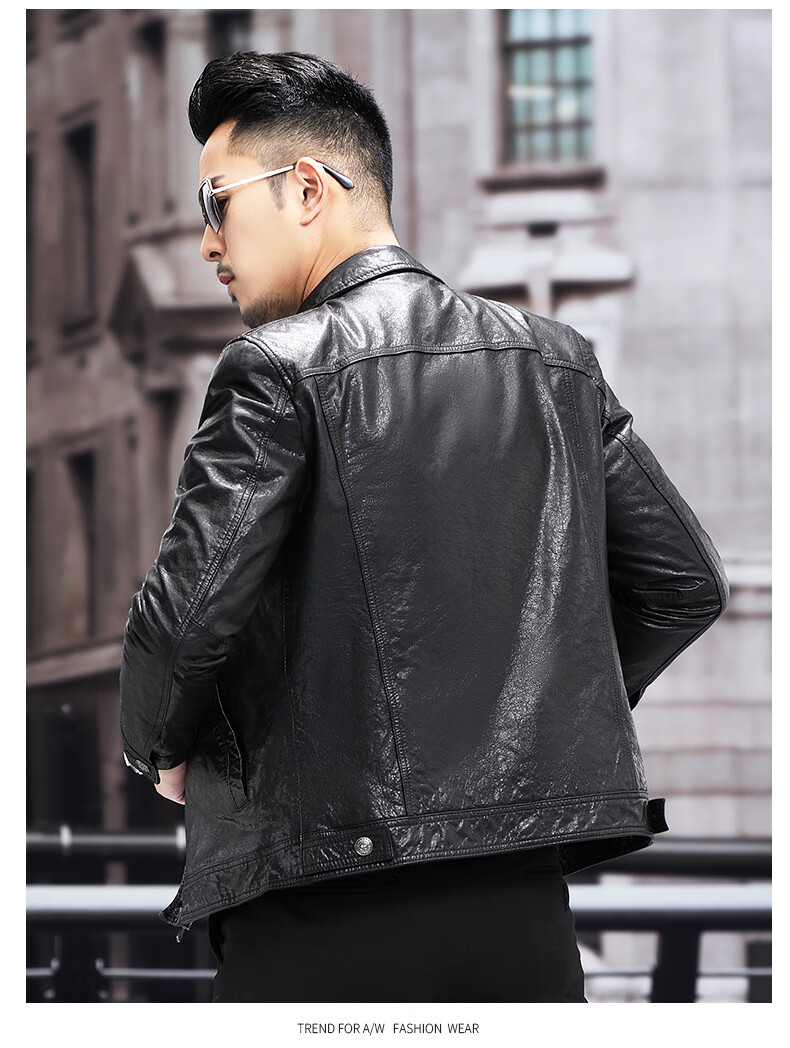 ROMON autumn and winter new leather jacket men's short casual leather jacket lapel motorcycle fashion leather jacket single leather model 4XL 190 suitable for 165-180Jin Jin equals 0.5 kg