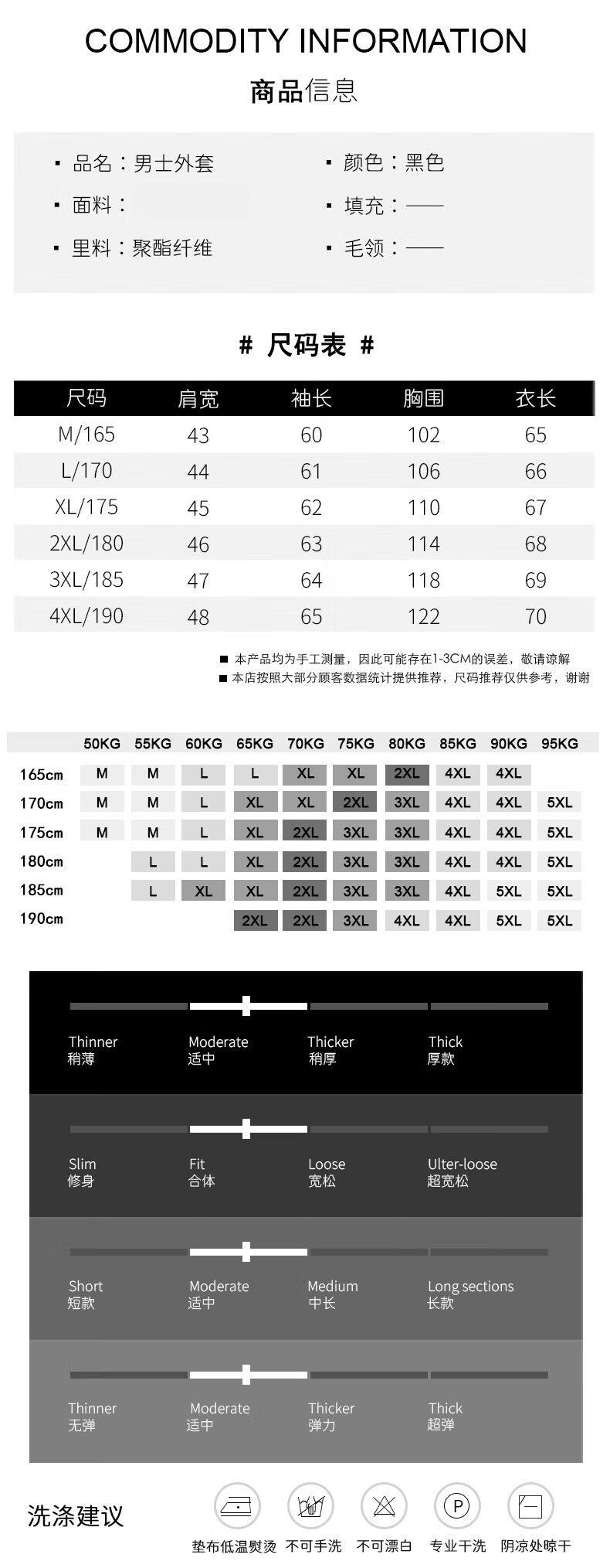 China (cm) 165 / 88-90 170 / 96-98 175 / 108-110 180 / 118-122 185 / 126-130