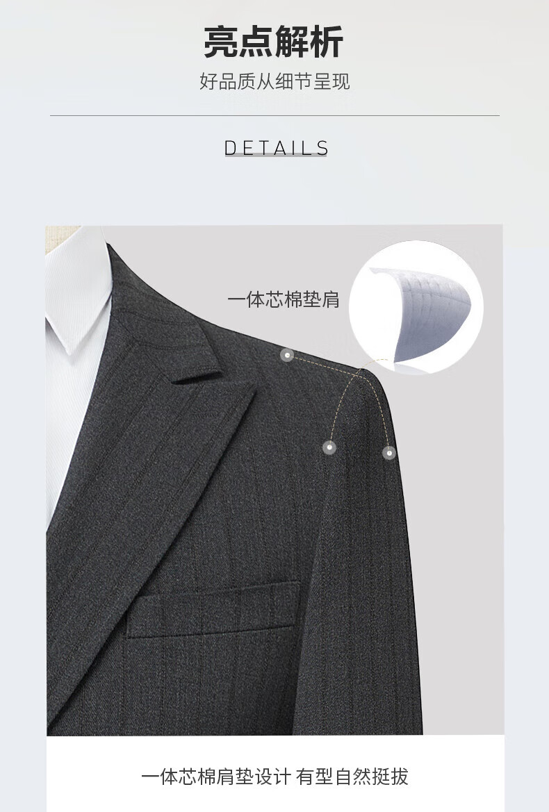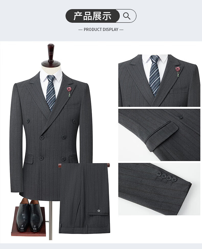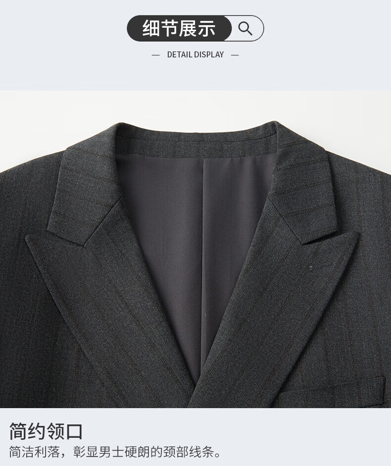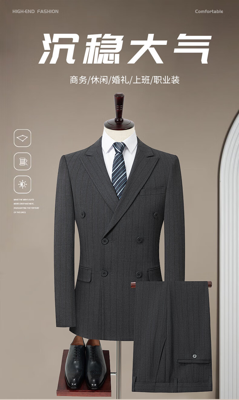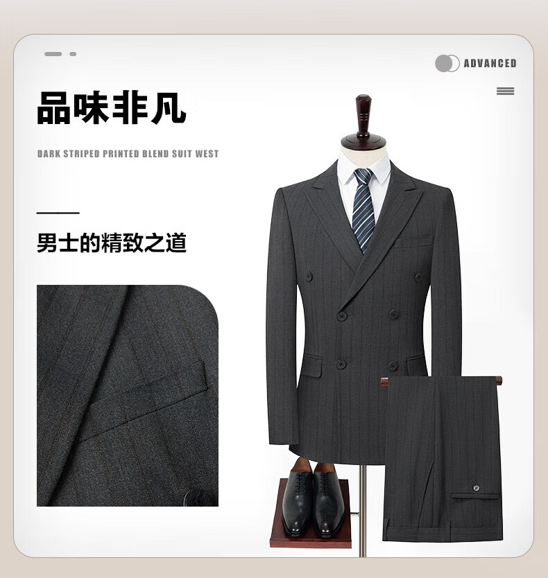 Gioia Italian light luxury brand striped suit suit for men business casual formal dress groom wedding dress jacket men 192-grey blue two-button double slit three-piece suit XL 180A /96A recommended 140-160Jin Jin equals 0.5 kg