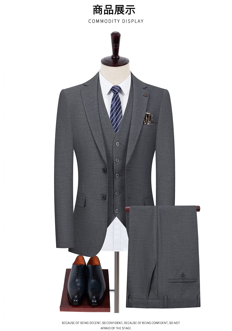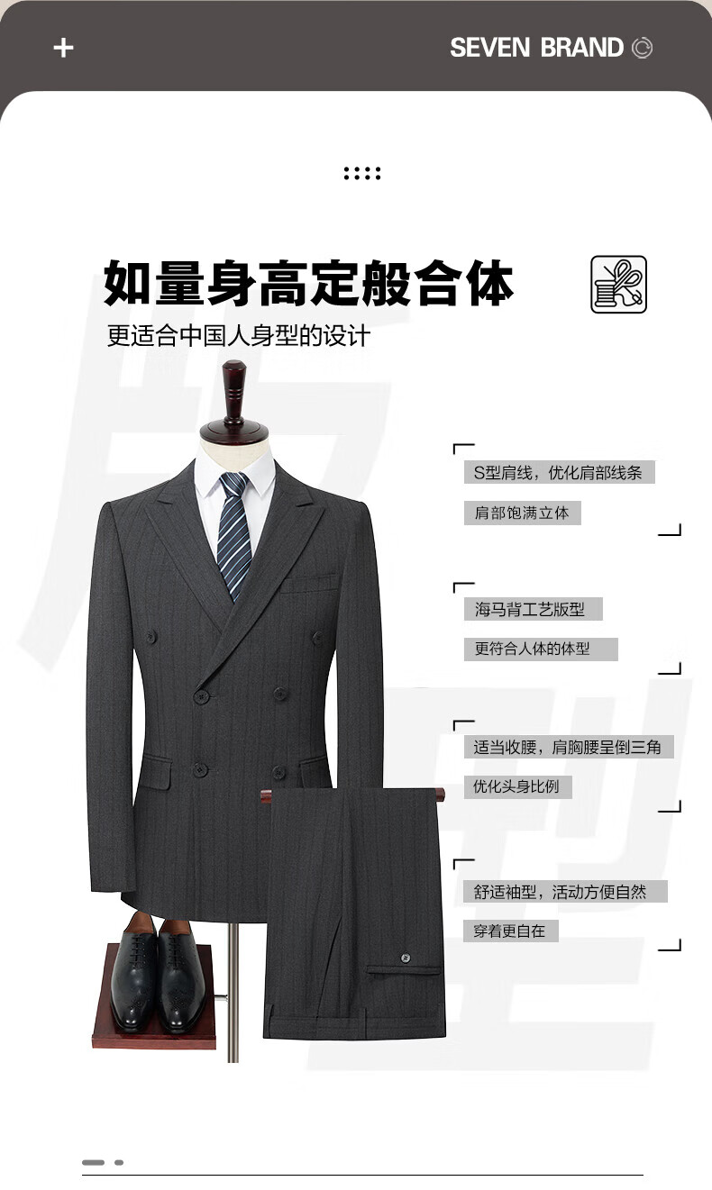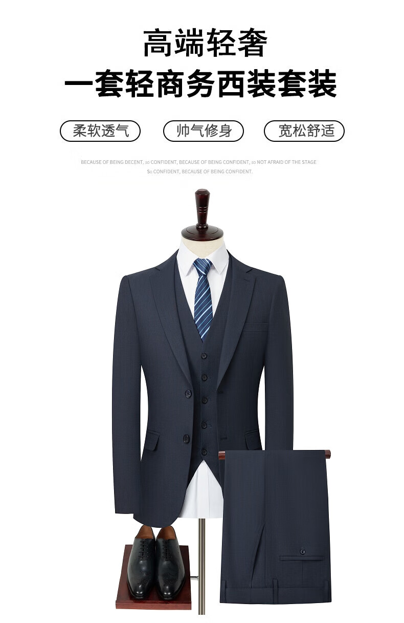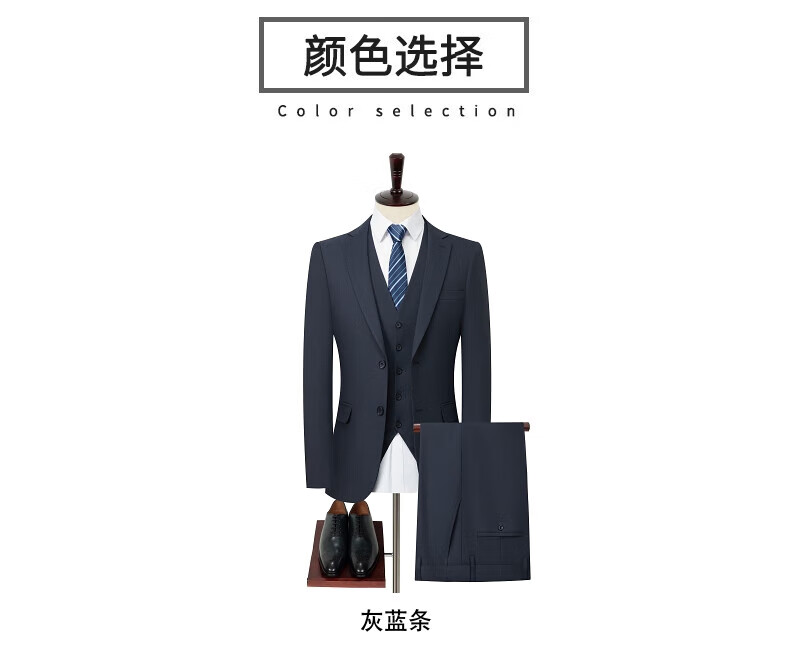 Gioia Italian light luxury brand striped suit suit for men business casual formal dress groom wedding dress jacket men 192-grey blue two-button double slit three-piece suit XL 180A /96A recommended 140-160Jin Jin equals 0.5 kg