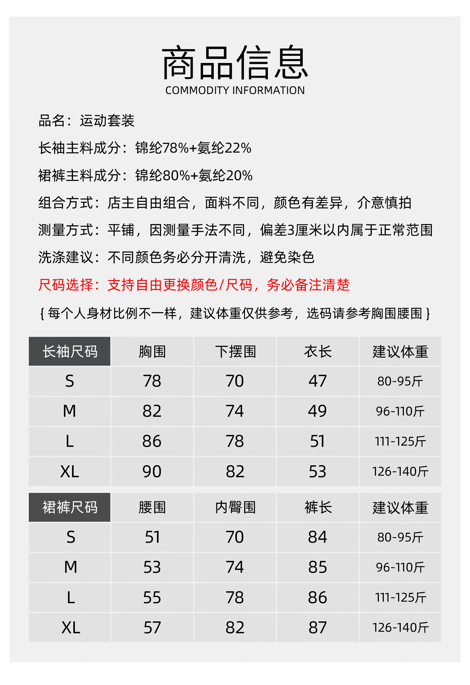 China (cm) 160-165/84-86 165-170 / 88-90 167-172 / 92-96 168-173 / 98-102 170-176 / 106-110