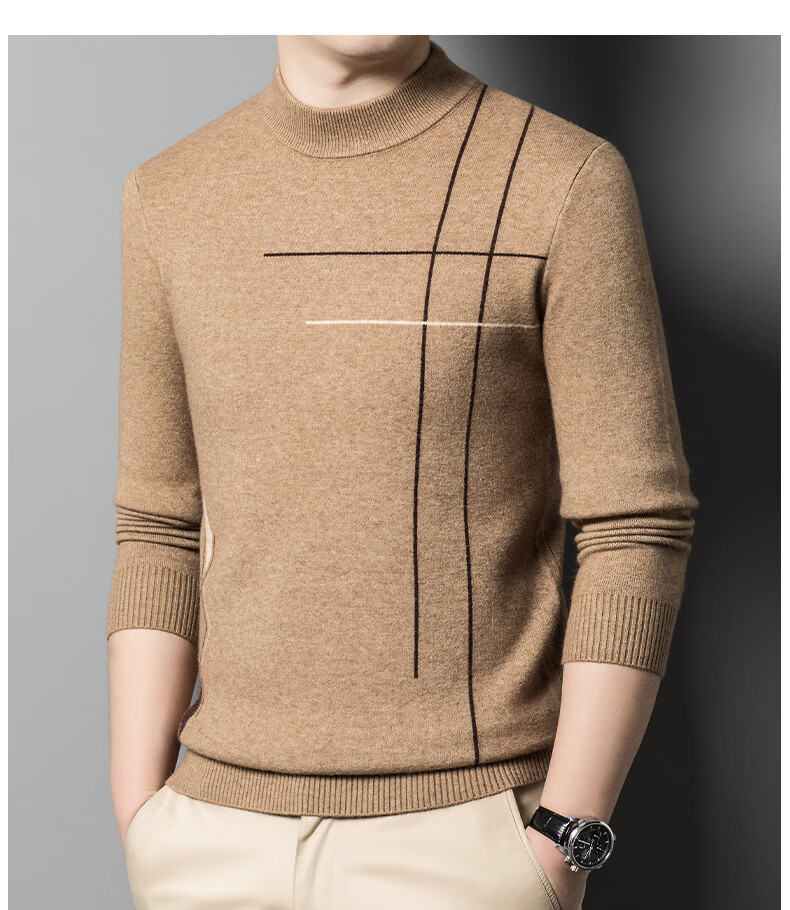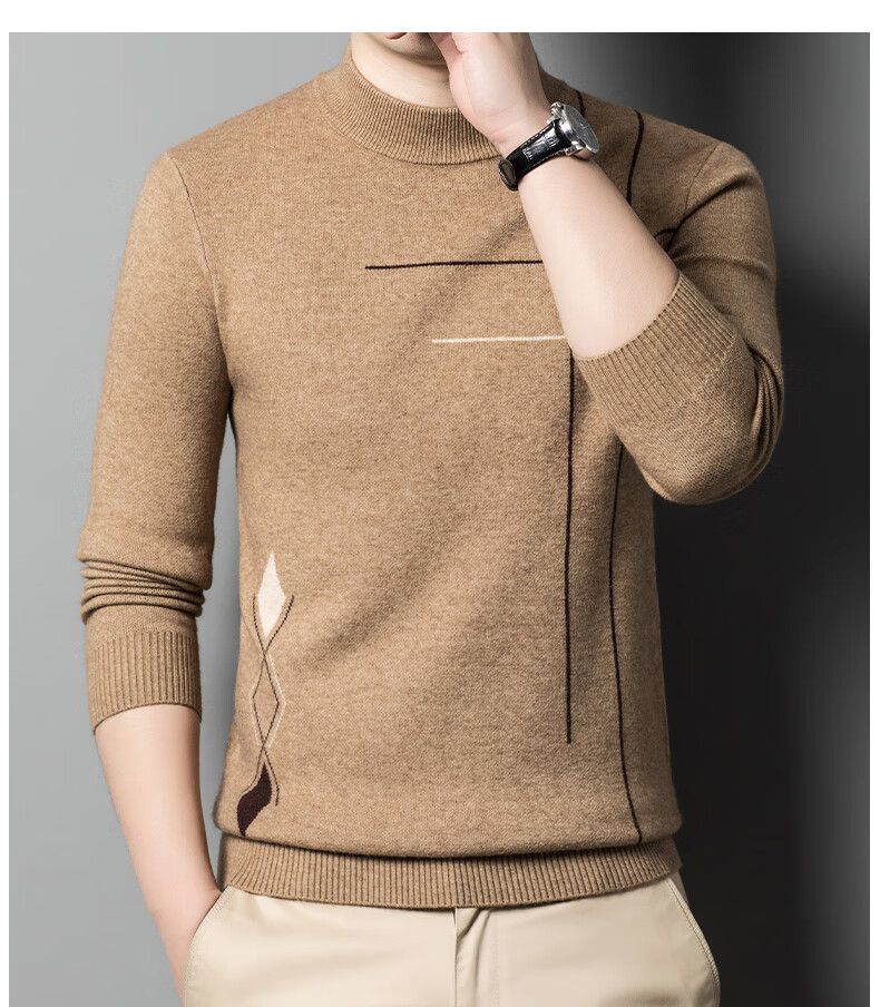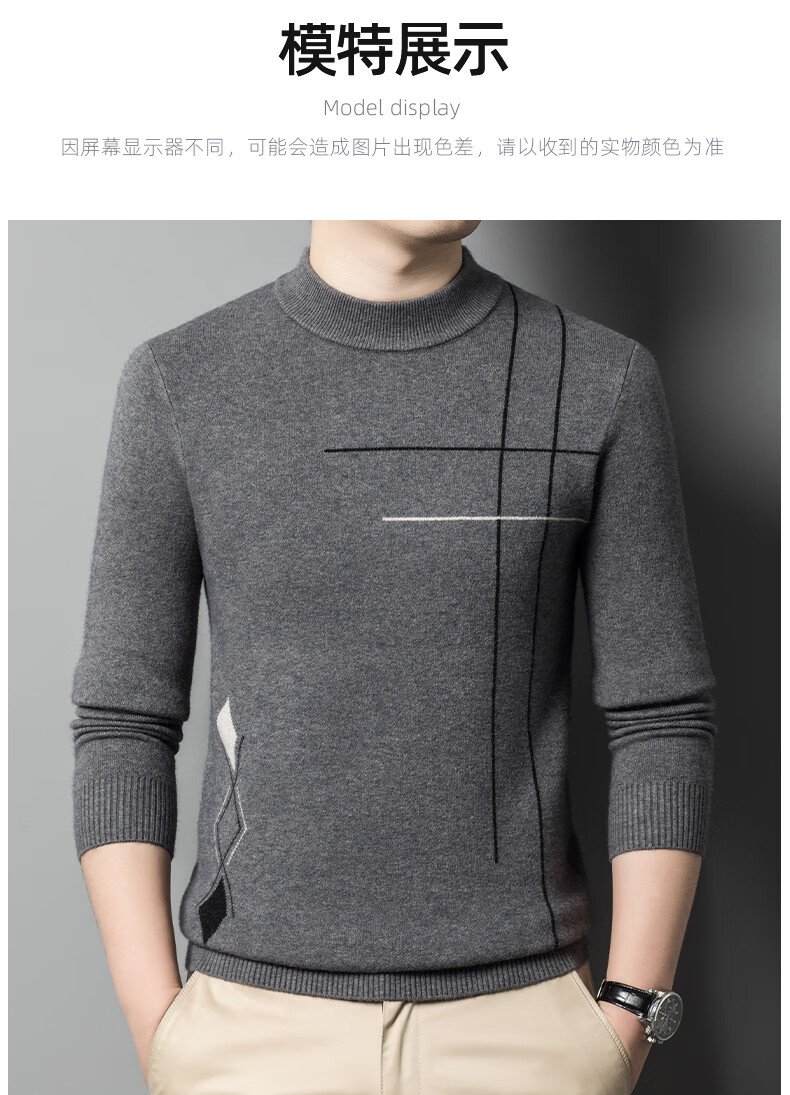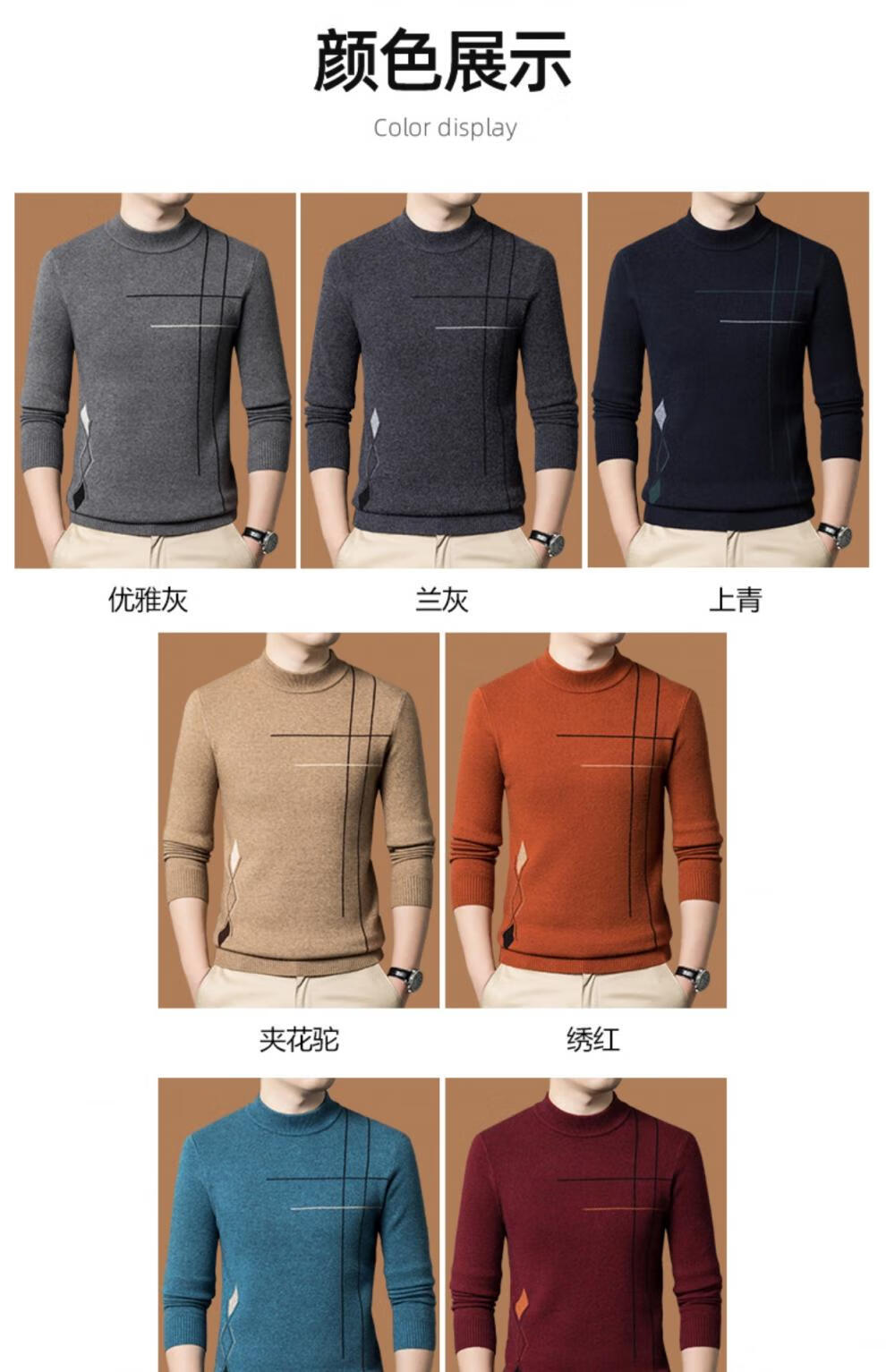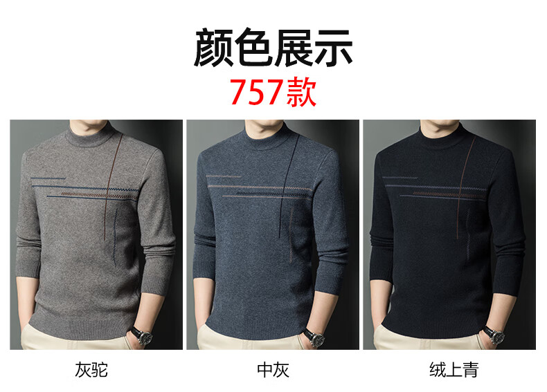 Hengyuanxiang special 100% pure woolen sweater men's winter new half turtleneck sweater middle-aged thickened knitted bottoming sweater trend 757 - Gray Camel XL 175 Recommended weight 140-155Jin Jin equals 0.5 kg