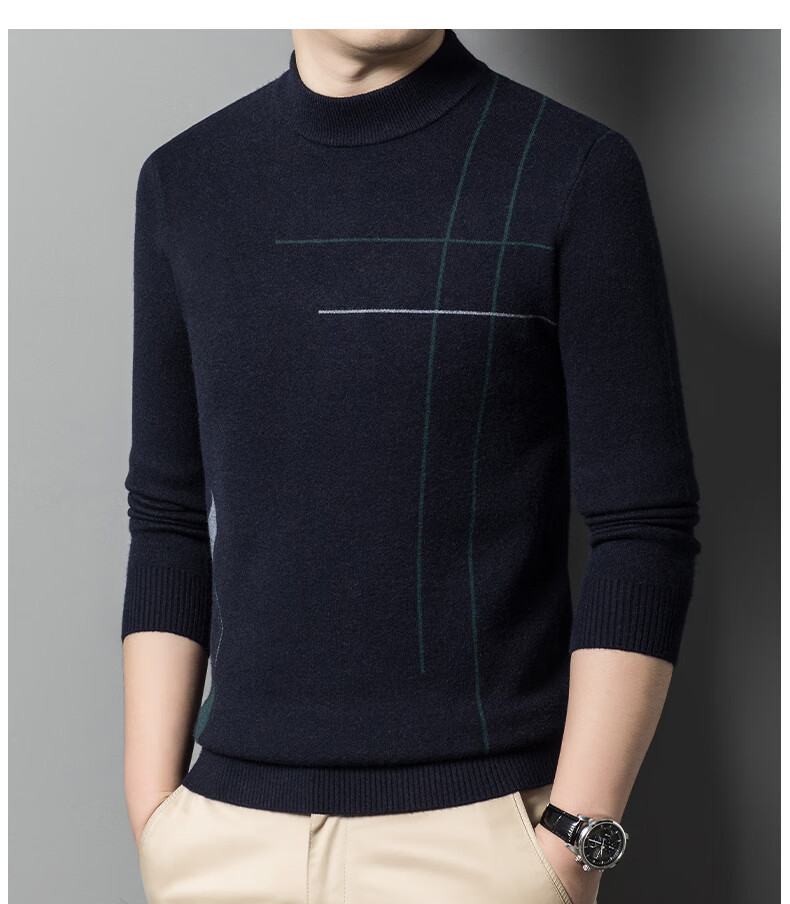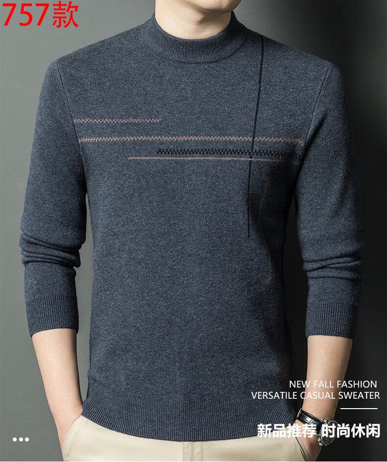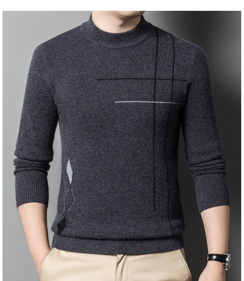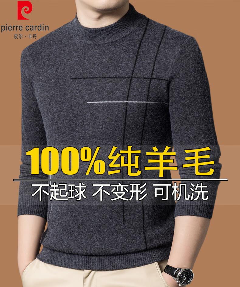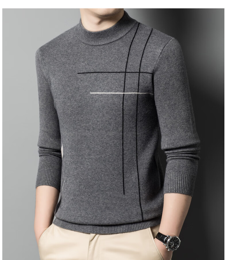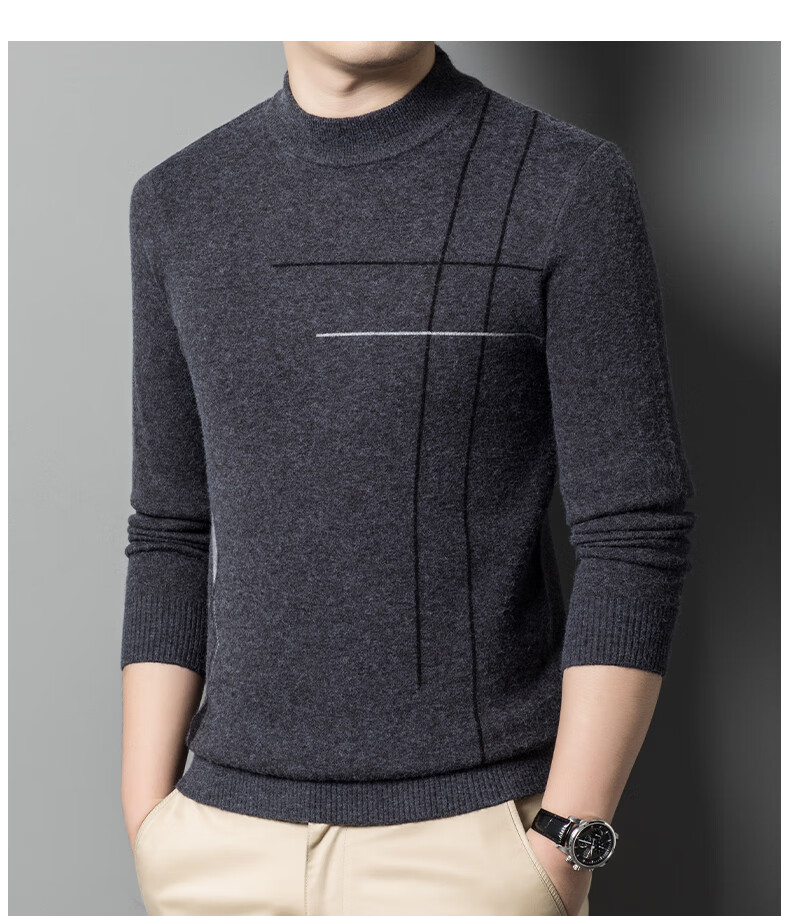 Hengyuanxiang special 100% pure woolen sweater men's winter new half turtleneck sweater middle-aged thickened knitted bottoming sweater trend 757 - Gray Camel XL 175 Recommended weight 140-155Jin Jin equals 0.5 kg