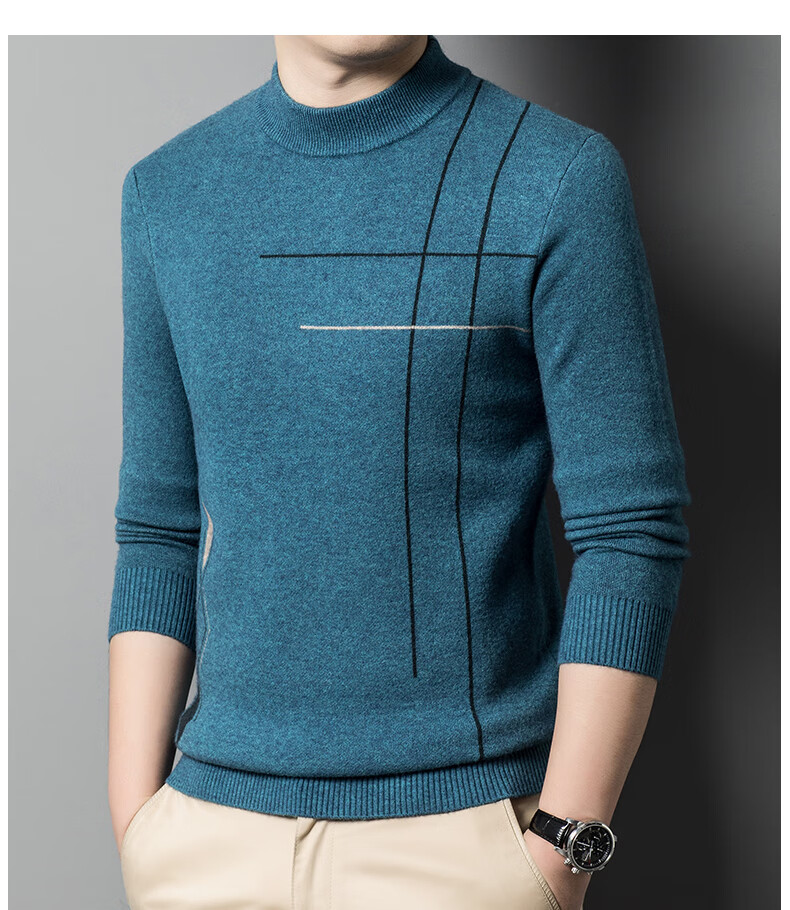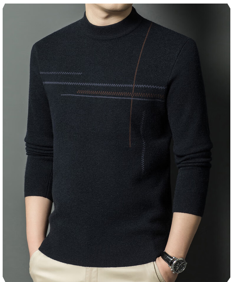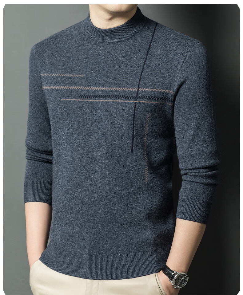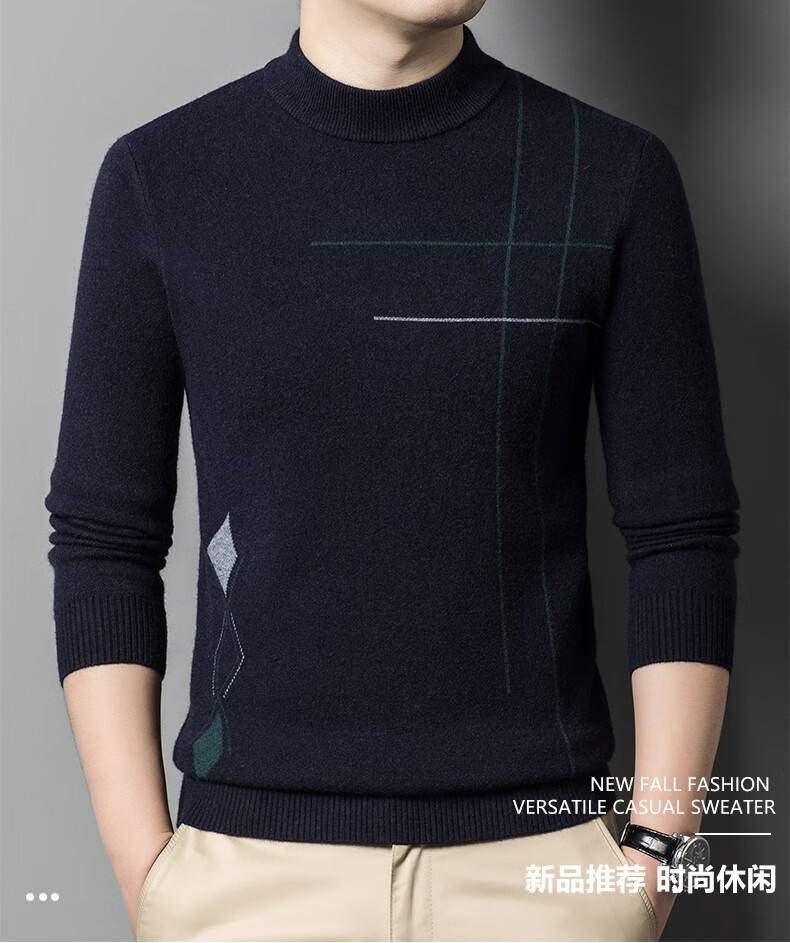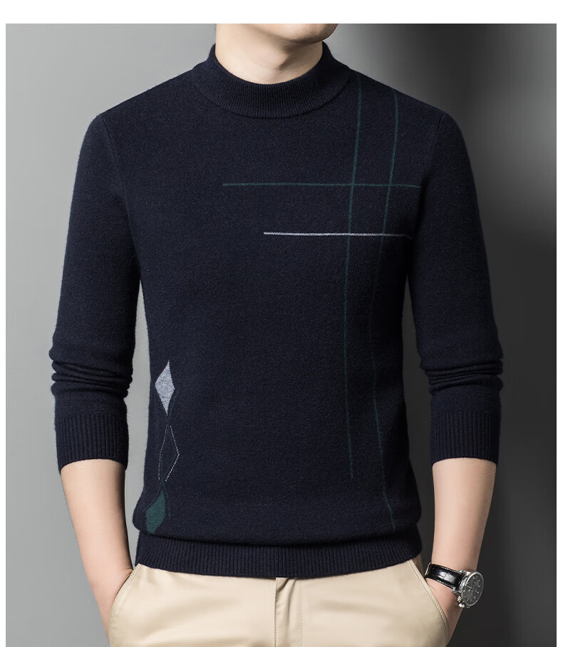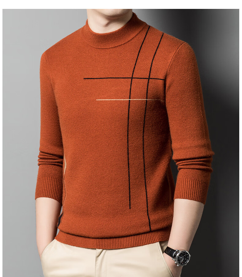 Hengyuanxiang special 100% pure woolen sweater men's winter new half turtleneck sweater middle-aged thickened knitted bottoming sweater trend 757 - Gray Camel XL 175 Recommended weight 140-155Jin Jin equals 0.5 kg