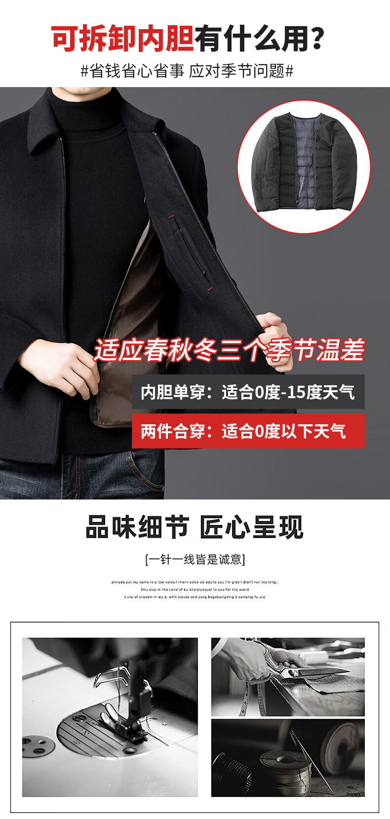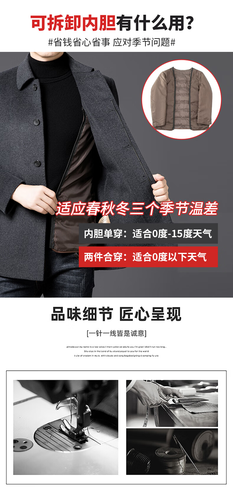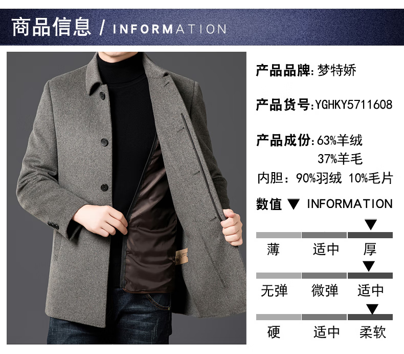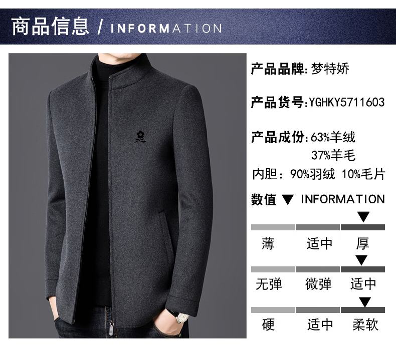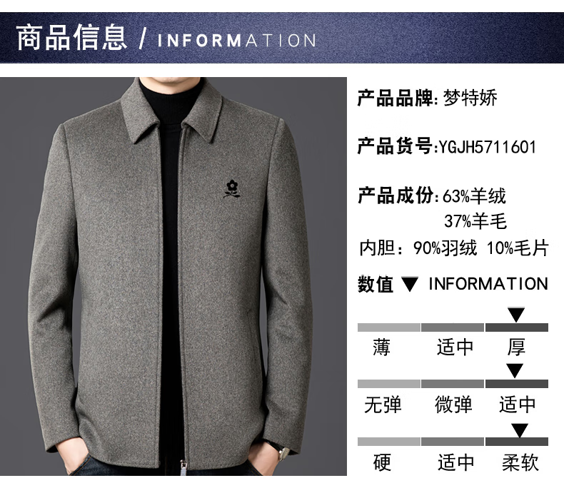 MONTAGUT double-sided cashmere coat for middle-aged and elderly men 2025 new winter down liner high-end thickened woolen woolen coat gray mid-length YGHKY5711608 L 175 Recommended 125Jin Jin is equal to 0.5kg -135Jin Jin is equal to 0.5kg