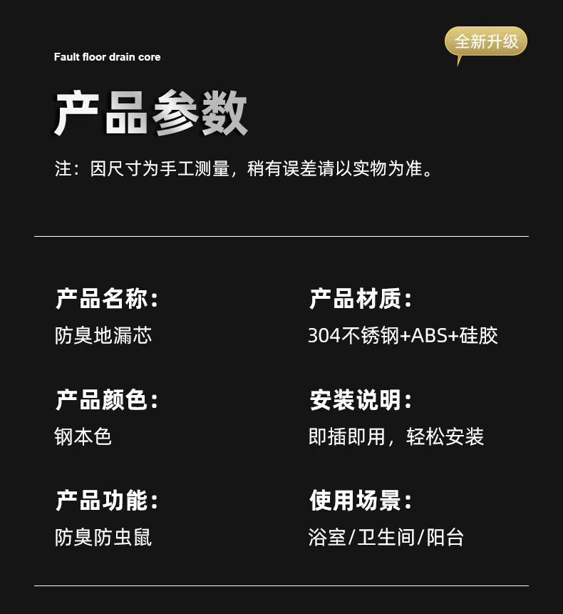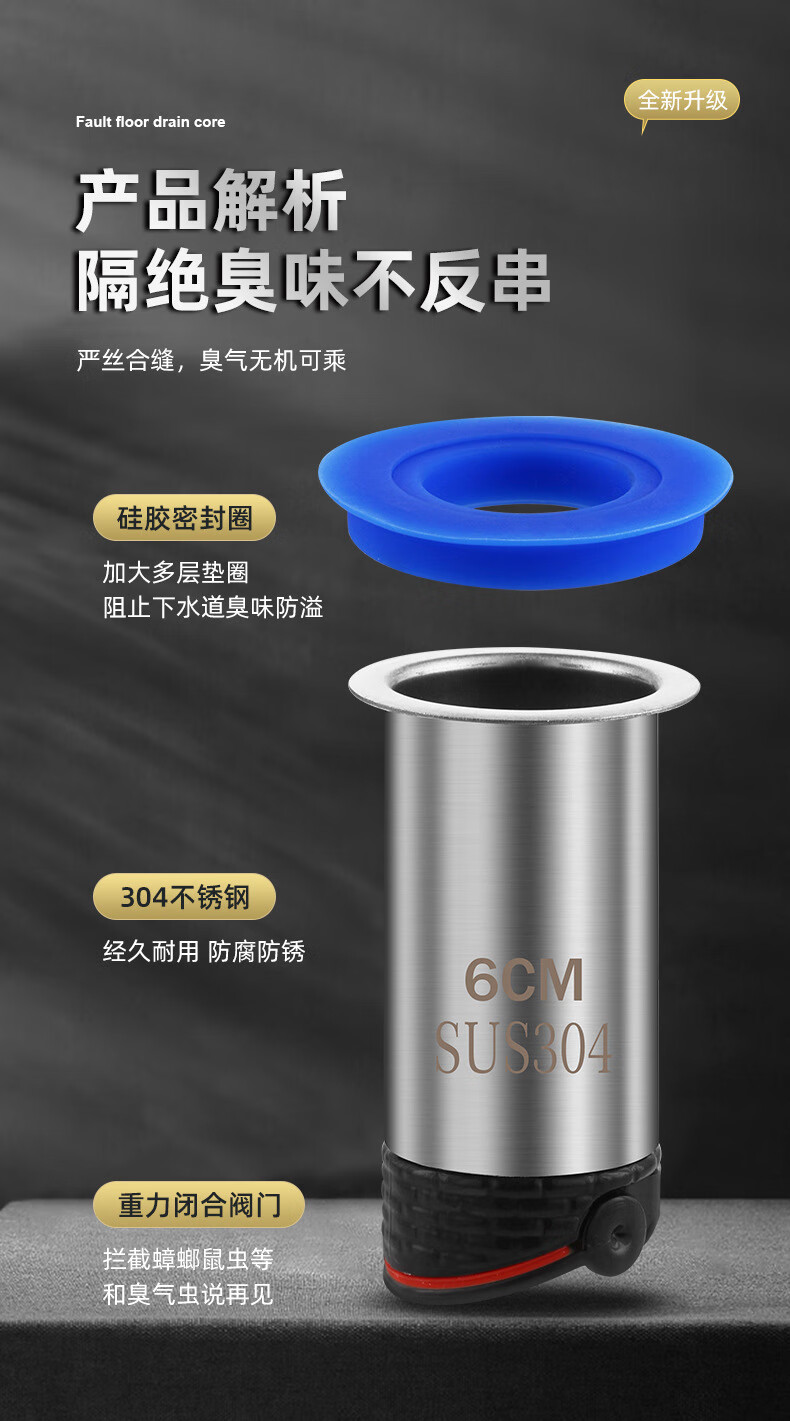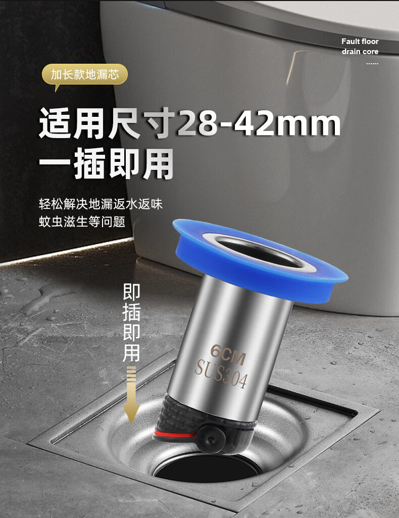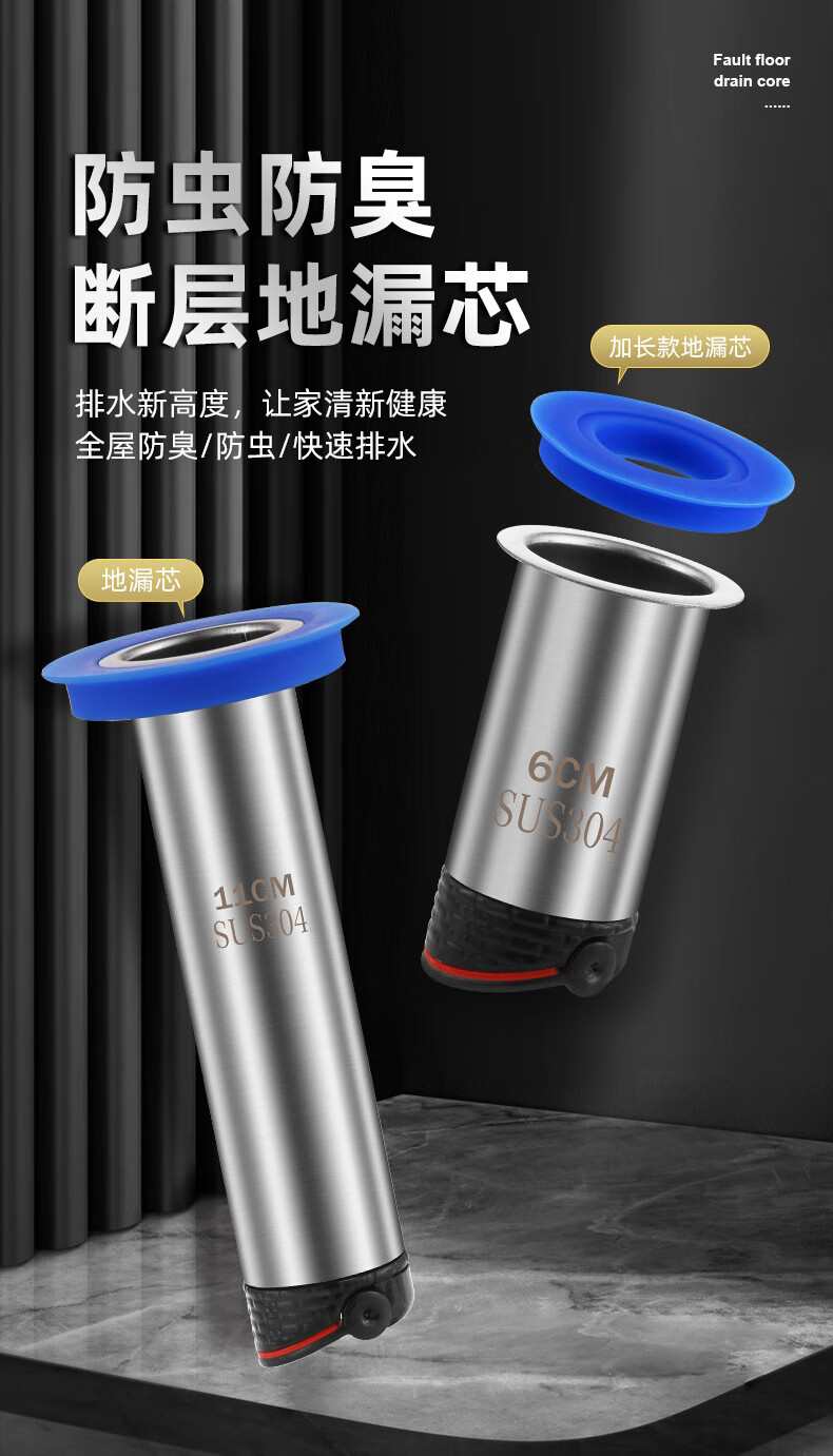 Small diameter floor drain fault extension tube extension floor drain inner core anti-odor bathroom sewer pipe special floor drain core small 25mm fault 11cm straight floor drain