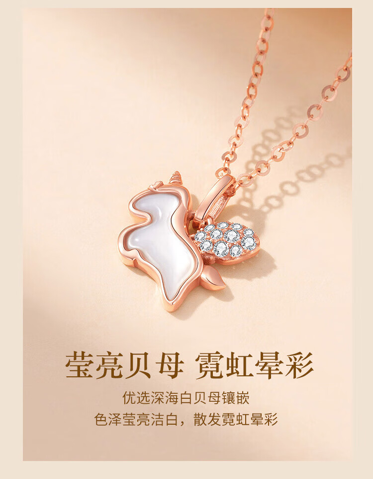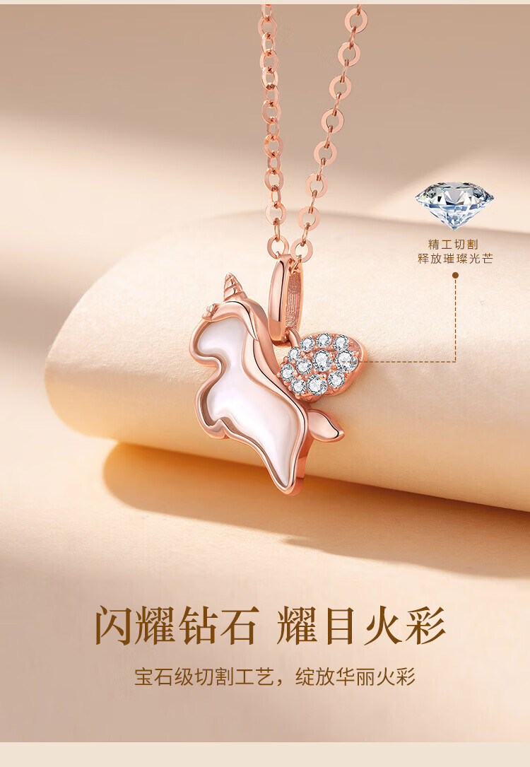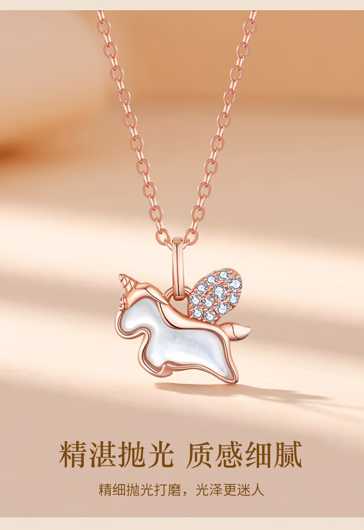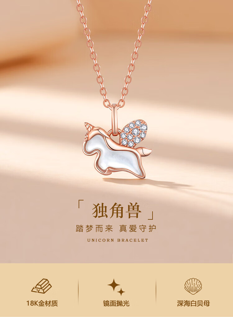 Shiloni 18K gold diamond unicorn necklace for girls, Xiaoma light luxury high-end birthday gift for girlfriend and wife on anniversary, 18K gold unicorn pendant, free 925 silver chain