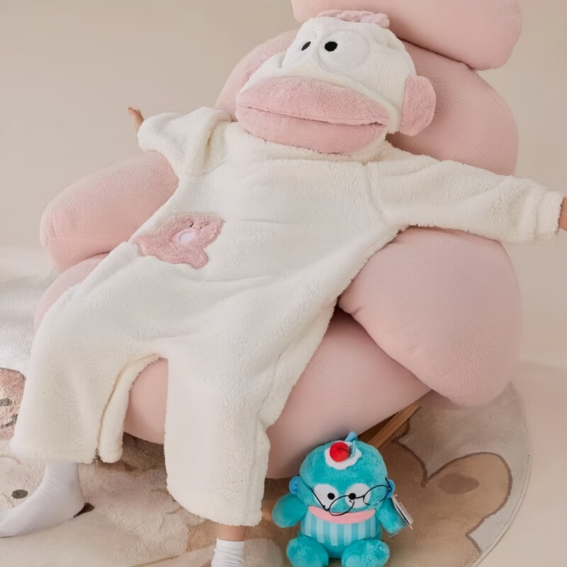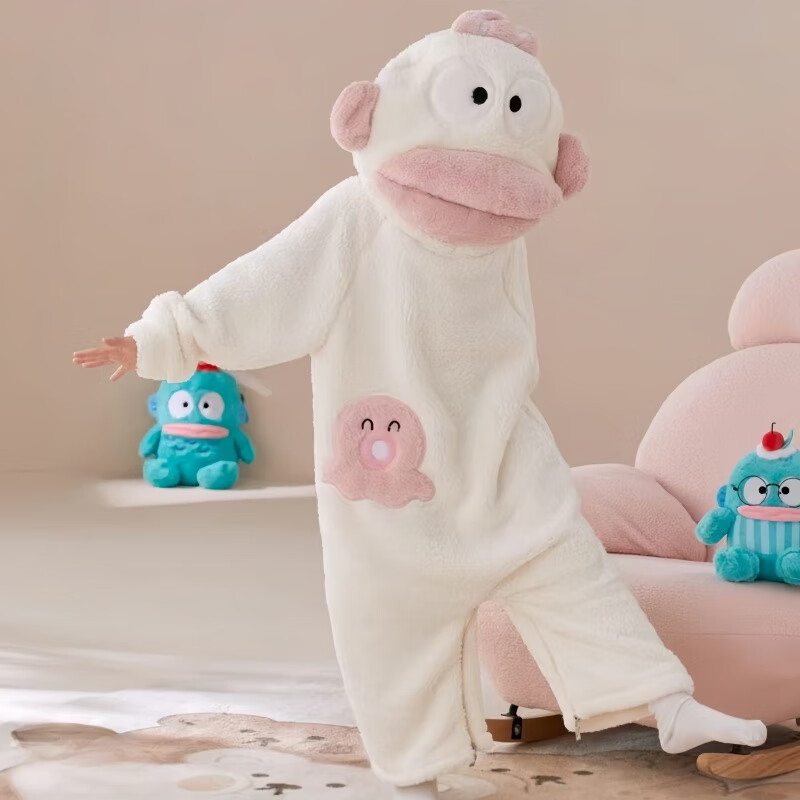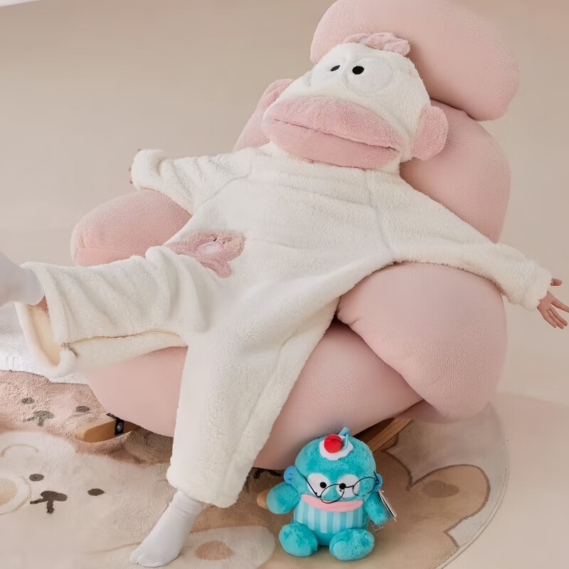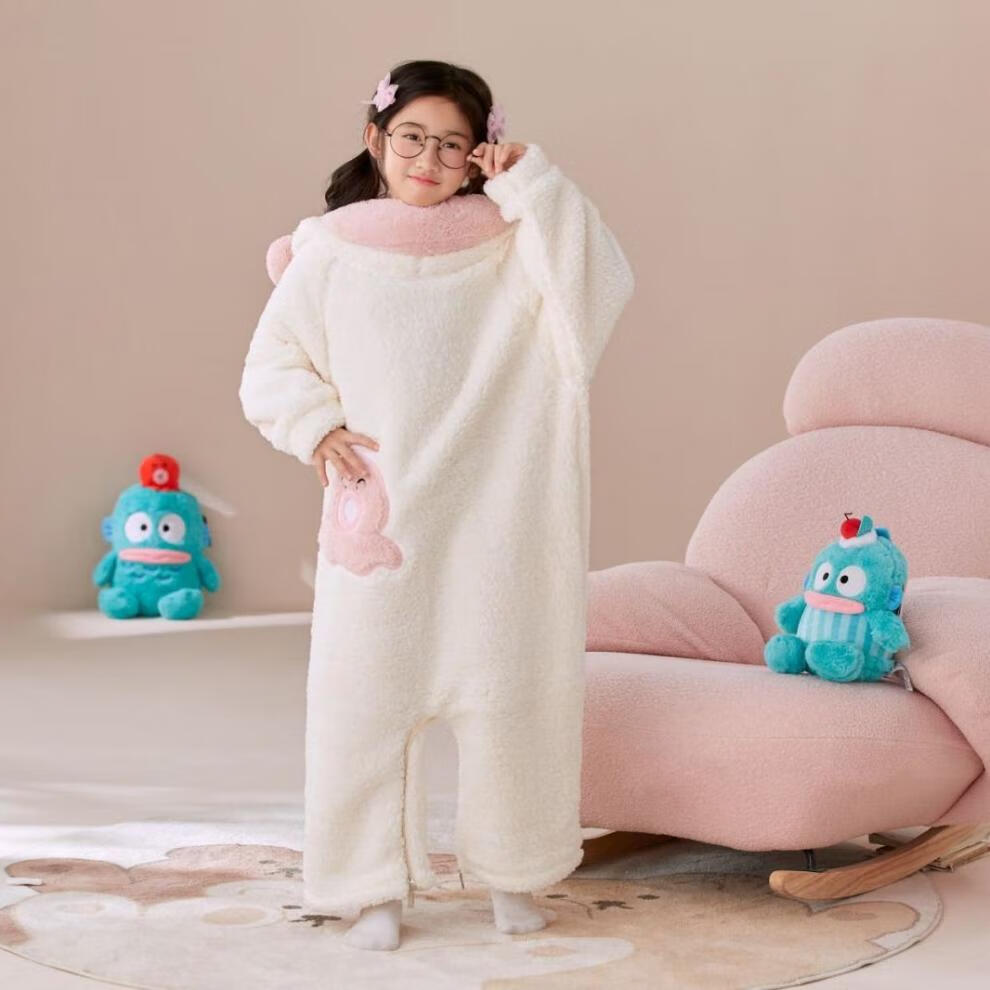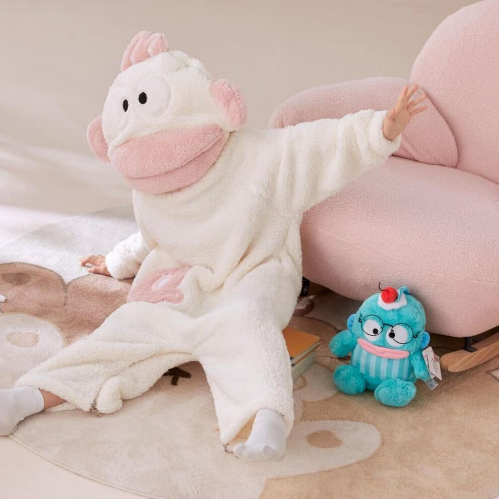 Cherry-Embellished Ugly Fish Pajamas Children's Autumn and Winter Thickened Long Pajamas Cartoon Big Mouth Fish Funny Big Children's Winter Home Clothes White Ugly Fish (Children's Jumpsuit) 170 Size 10 (recommended height 105-115cm and weight 35-40