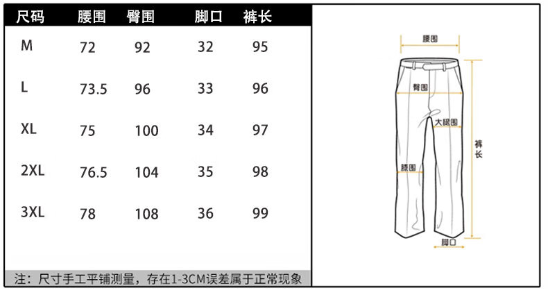 Outseam (cm) 99 cm 101.5 cm 104 cm 106.5 cm 109 cm