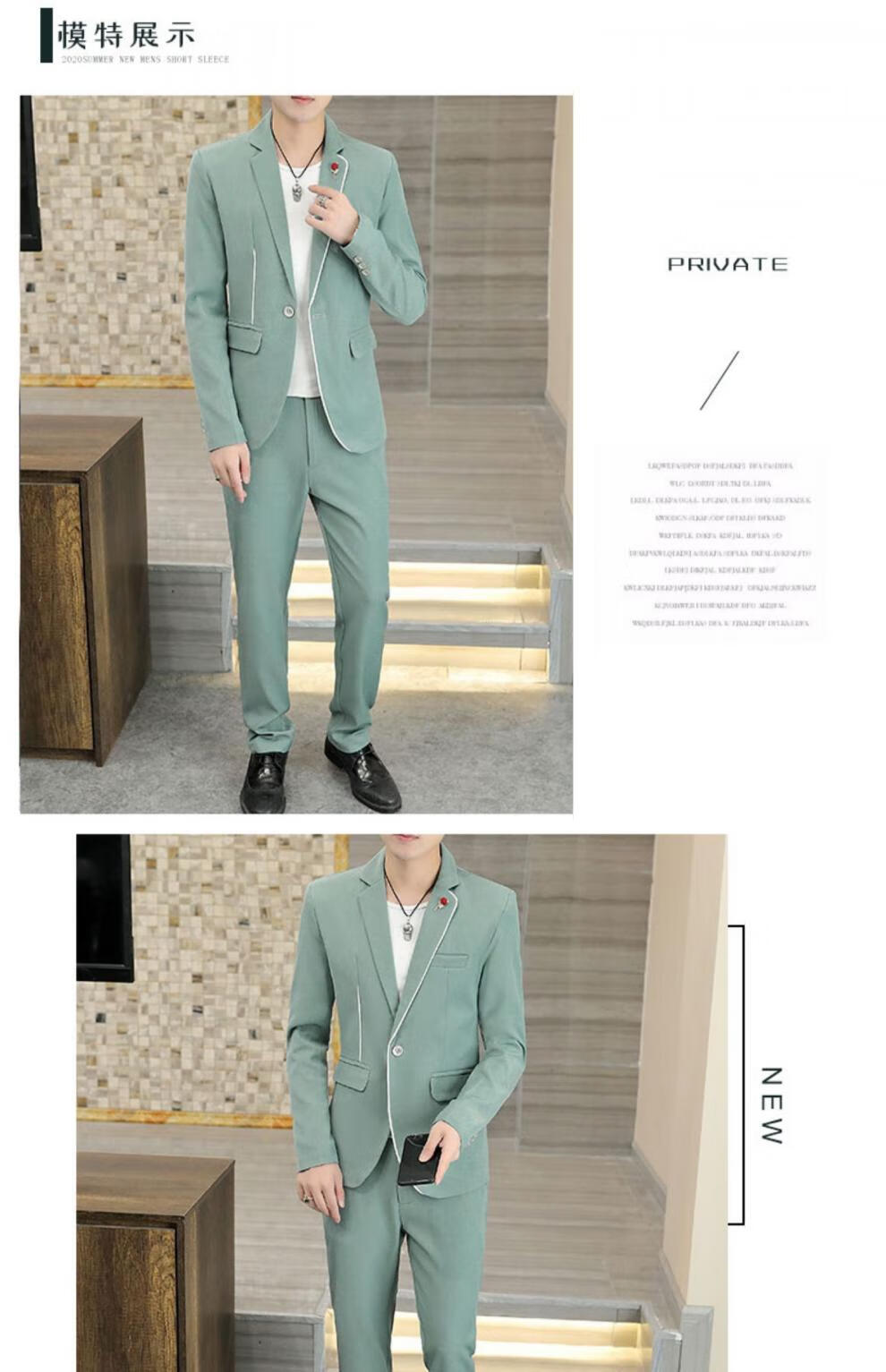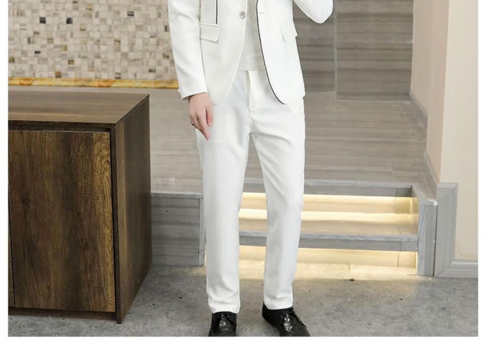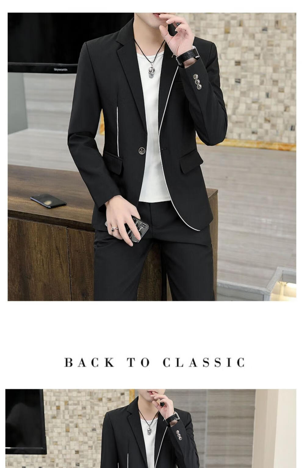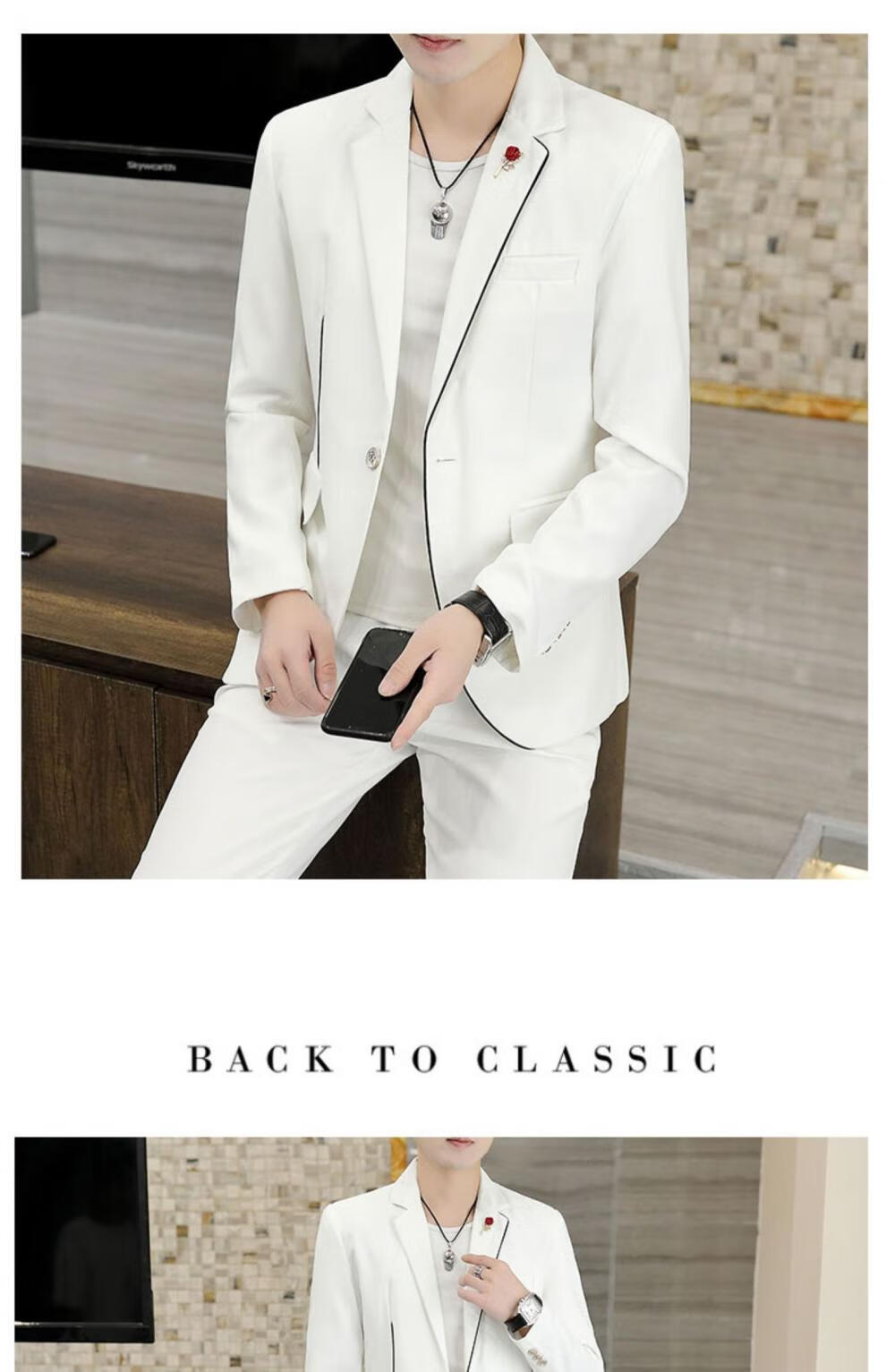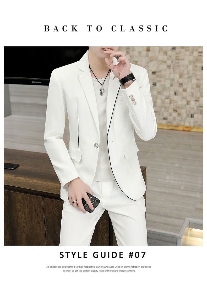 TLXT Korean style casual spring and summer suit men's slim business formal suit groom handsome British small suit handsome white (two-piece suit - top + pants) 2XL 135-145 or so