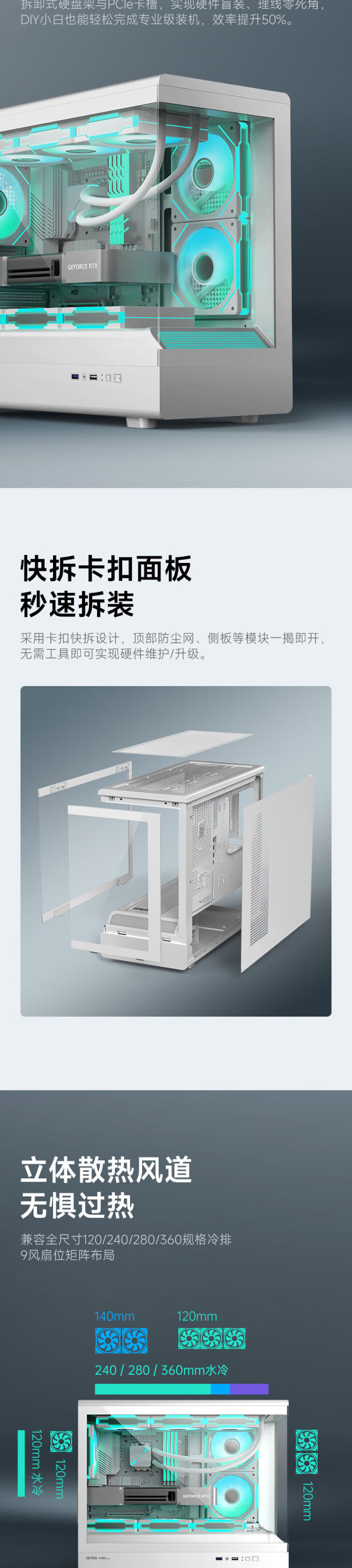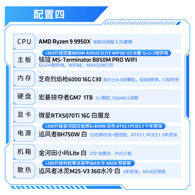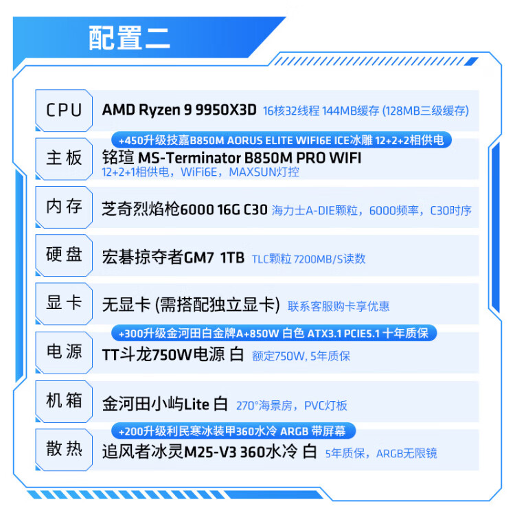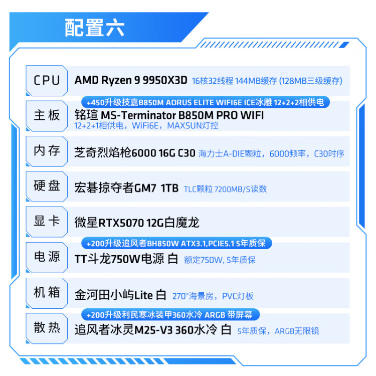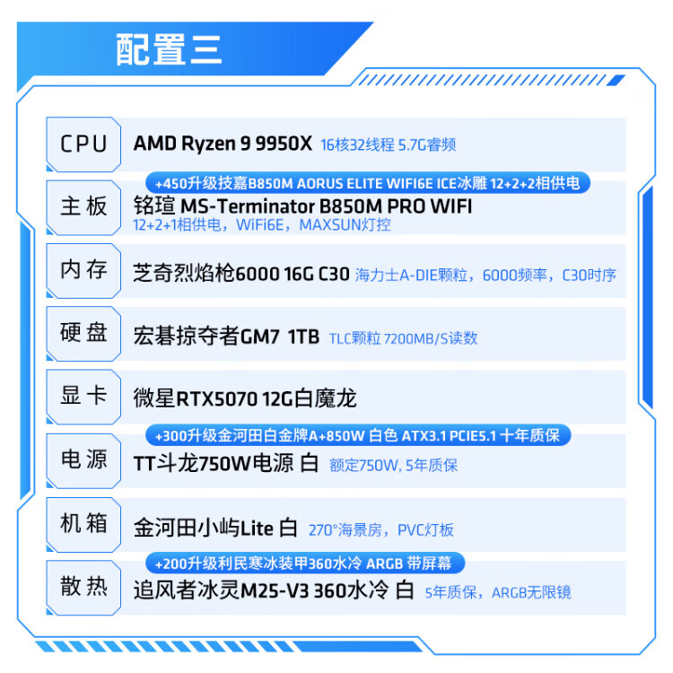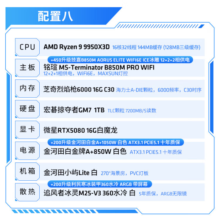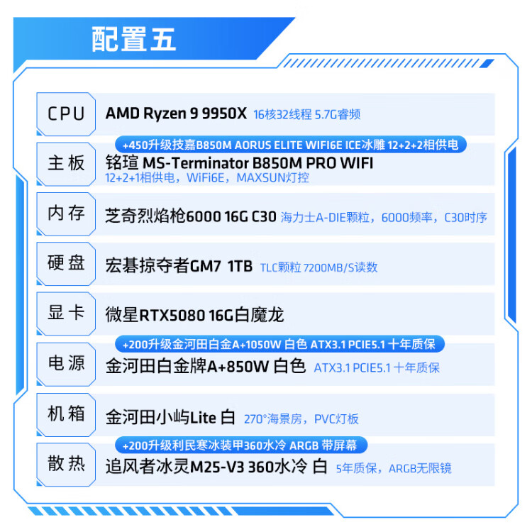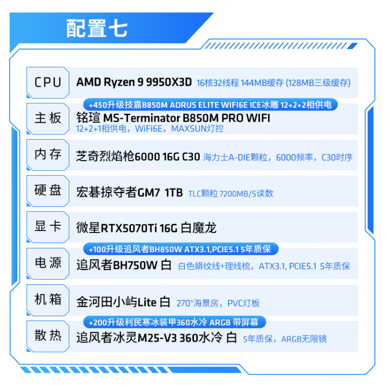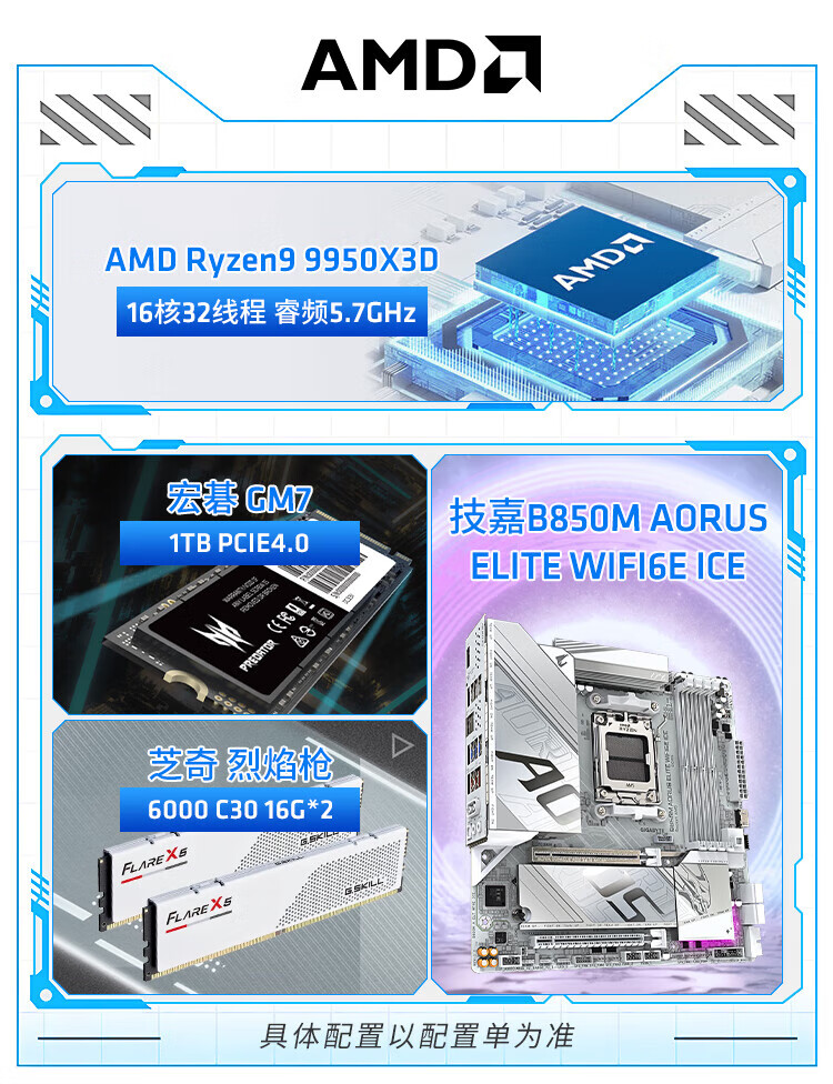 AMD Ryzen 9950X 9950X3D/5060/5070 game console computer desktop assembly computer host DIY complete machine assembly white sea view room chassis configuration one 9950X/16G/1T