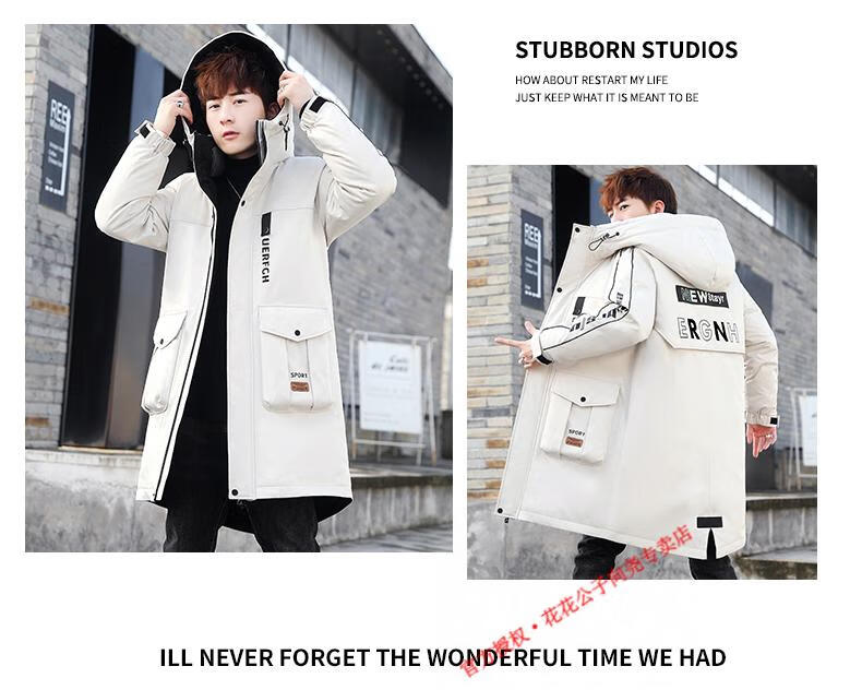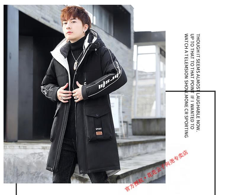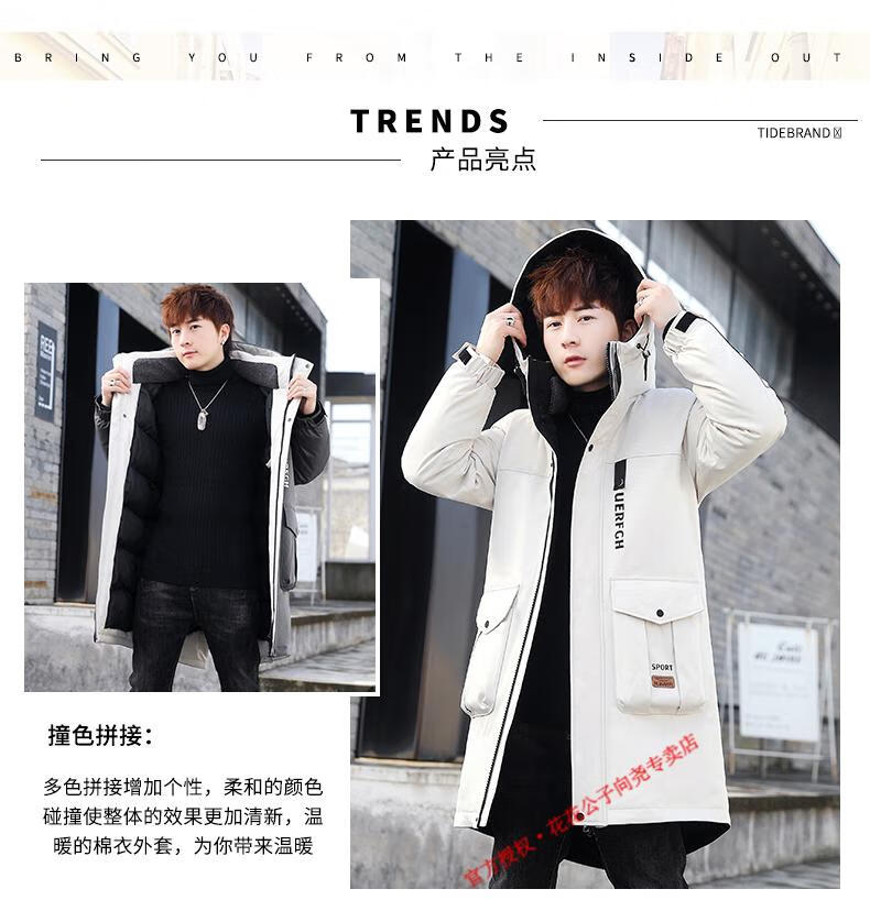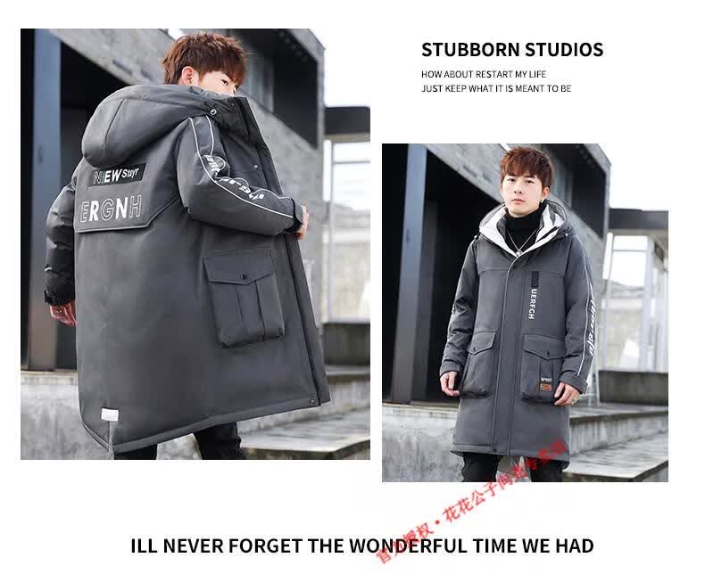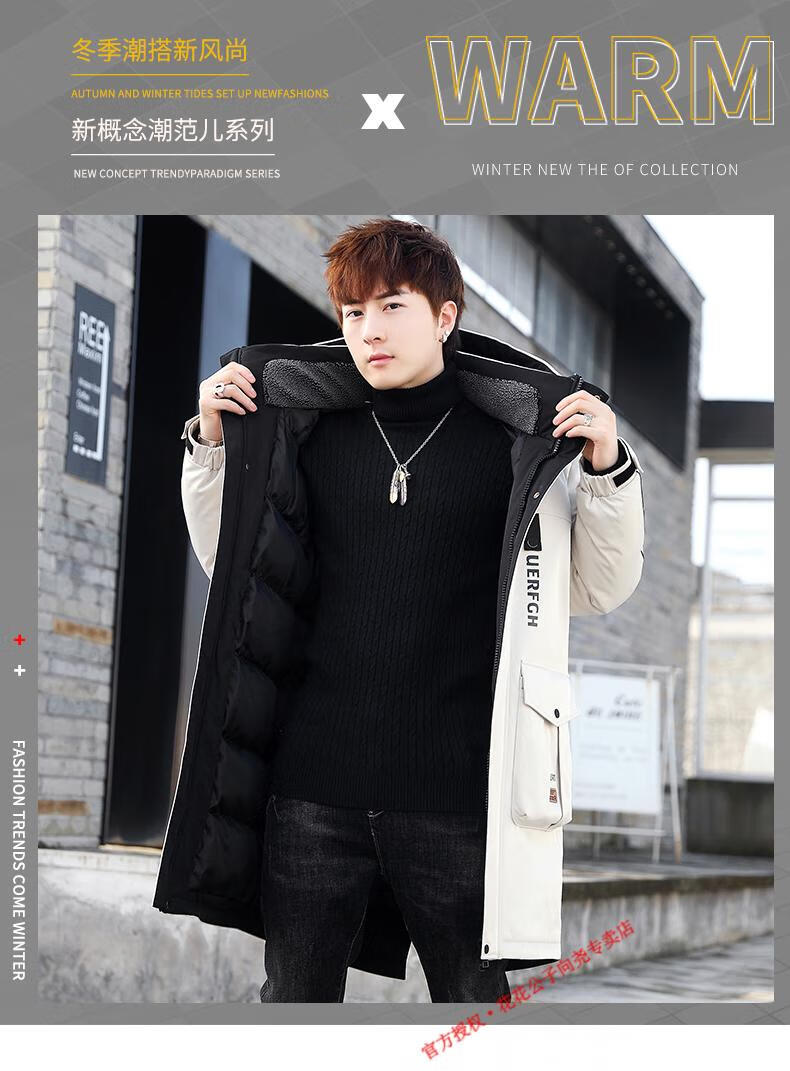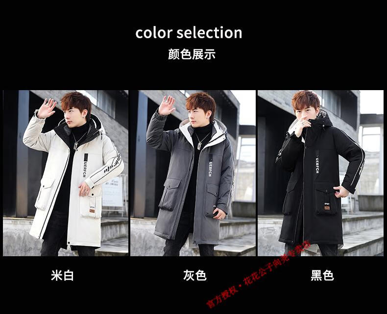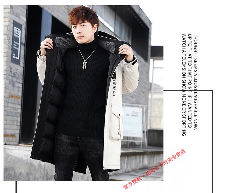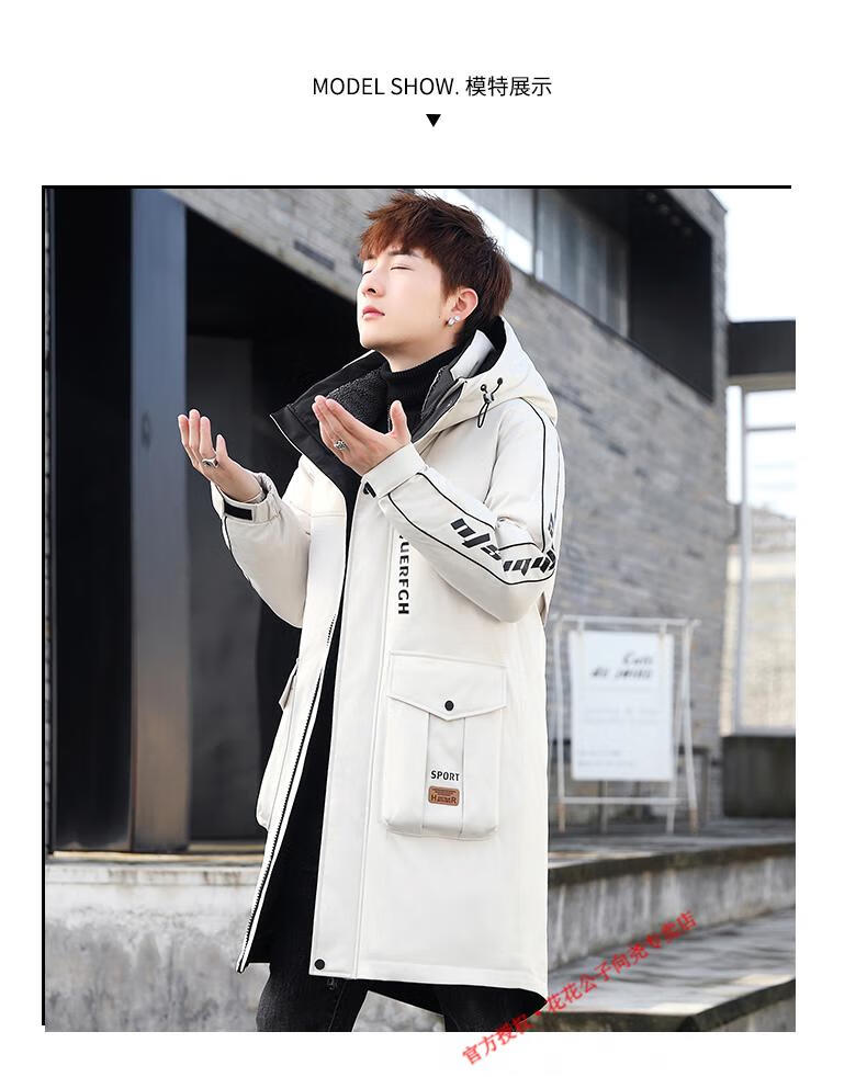 Playboy (PLAYBOY) mid-length down jacket men's new winter trend Korean down jacket youth winter warm jacket 829 beige 2XL 140-155Jin Jin equals 0.5 kg