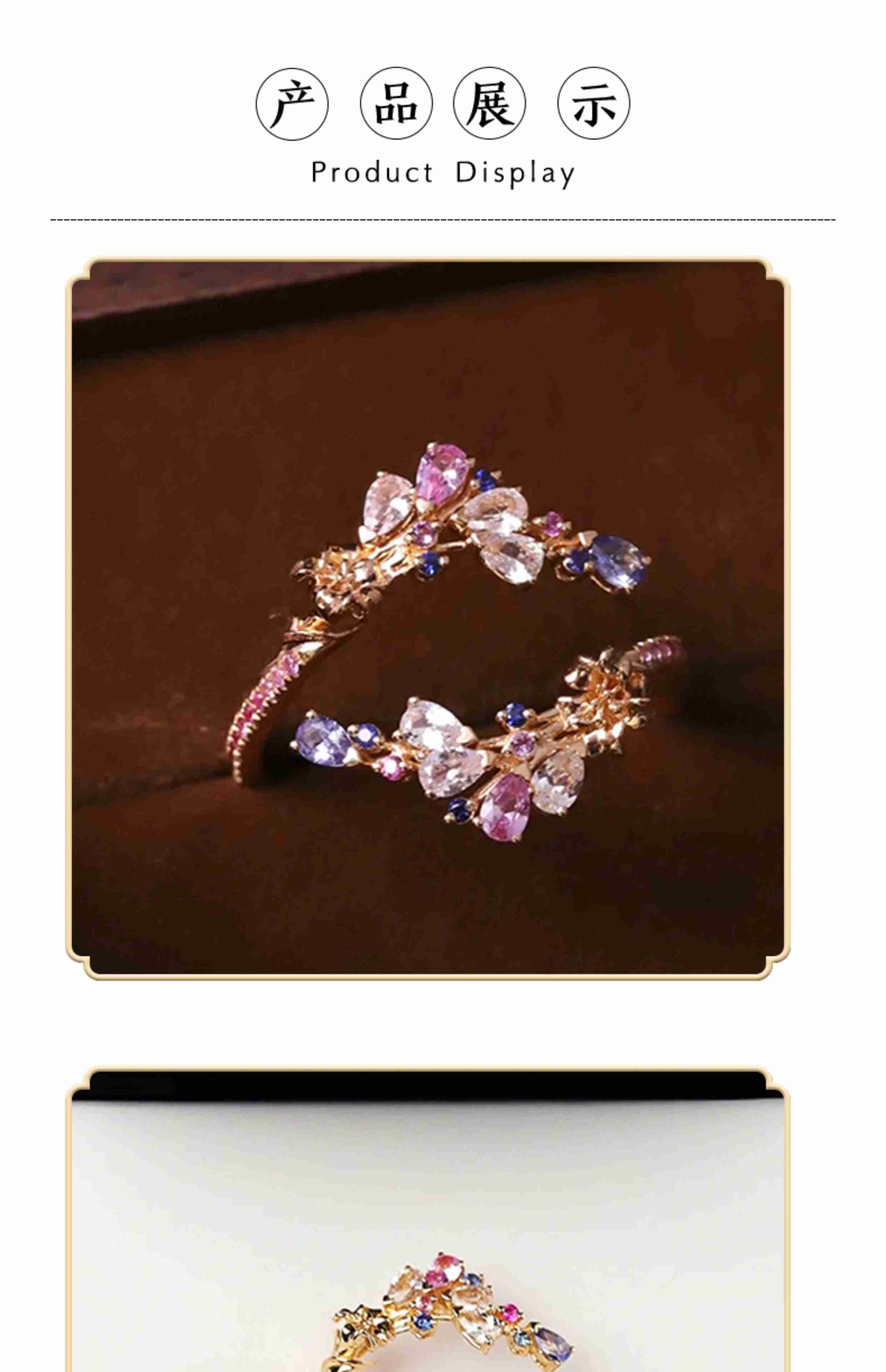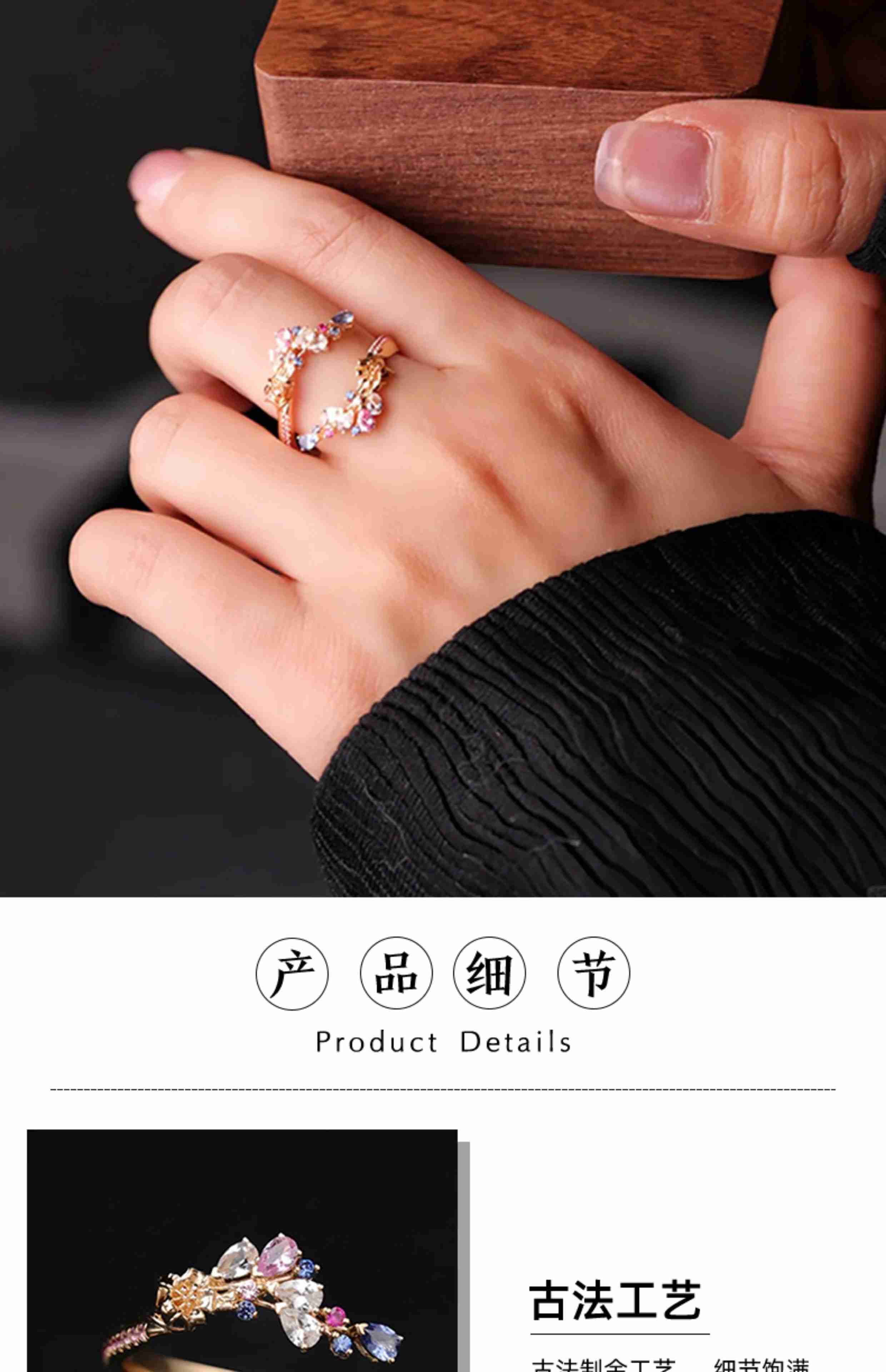 GUIG Old Phoenix Gold Store New Secret Garden Series Romantic Galaxy Flower Ring Fully Inlaid with 18K Gold Tanzanite Romantic Galaxy Flower Ring One Opening Adjustable