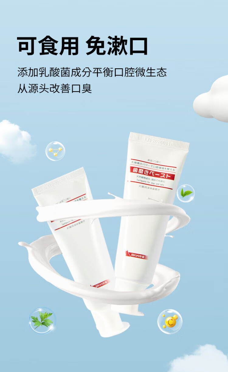 AILUKI Japanese cat and dog pet special toothbrush and toothpaste set dental calculus removal bad breath edible small dog brushing combination set 10,000-hair toothbrush + toothpaste (finger brush * 2)