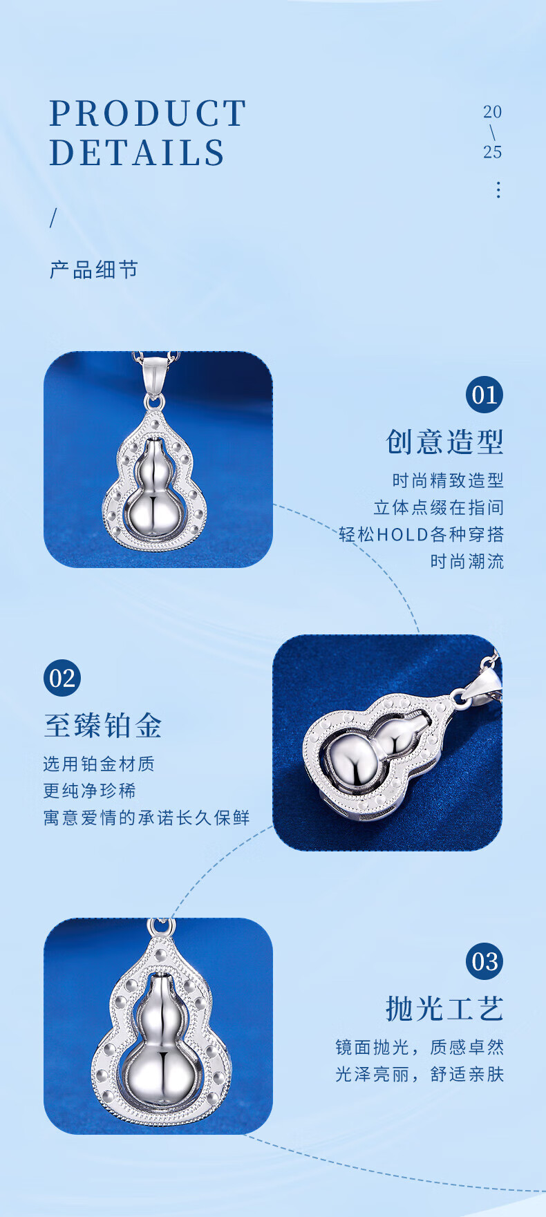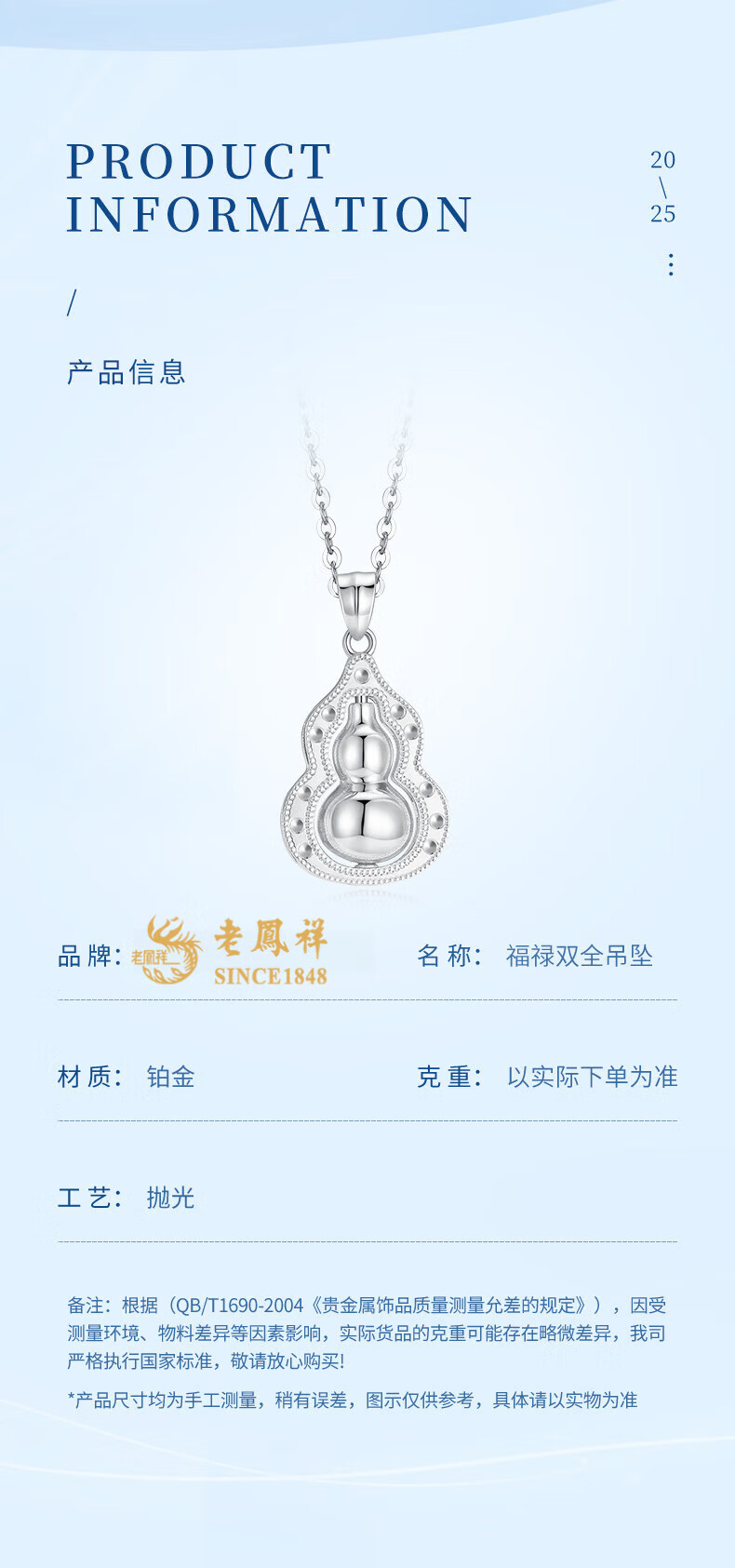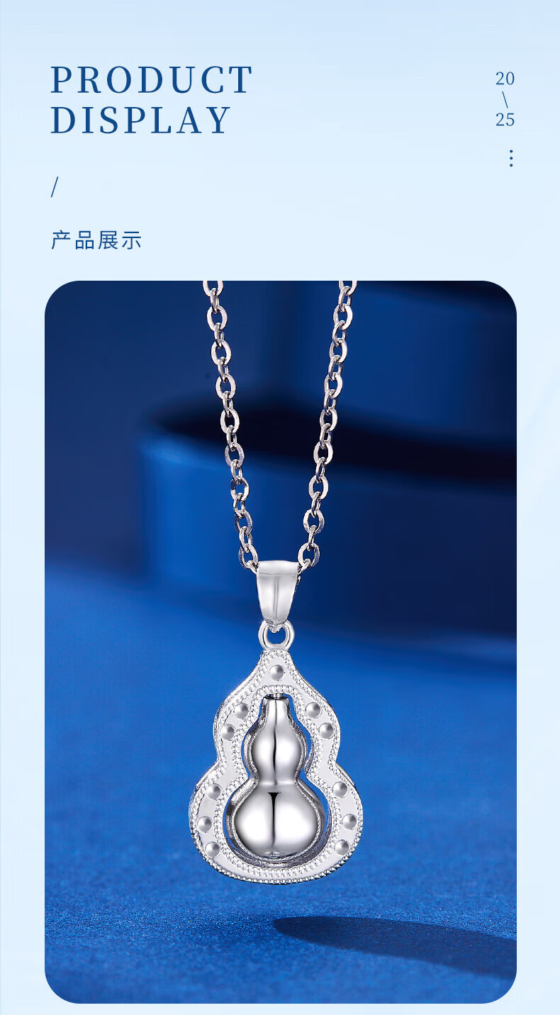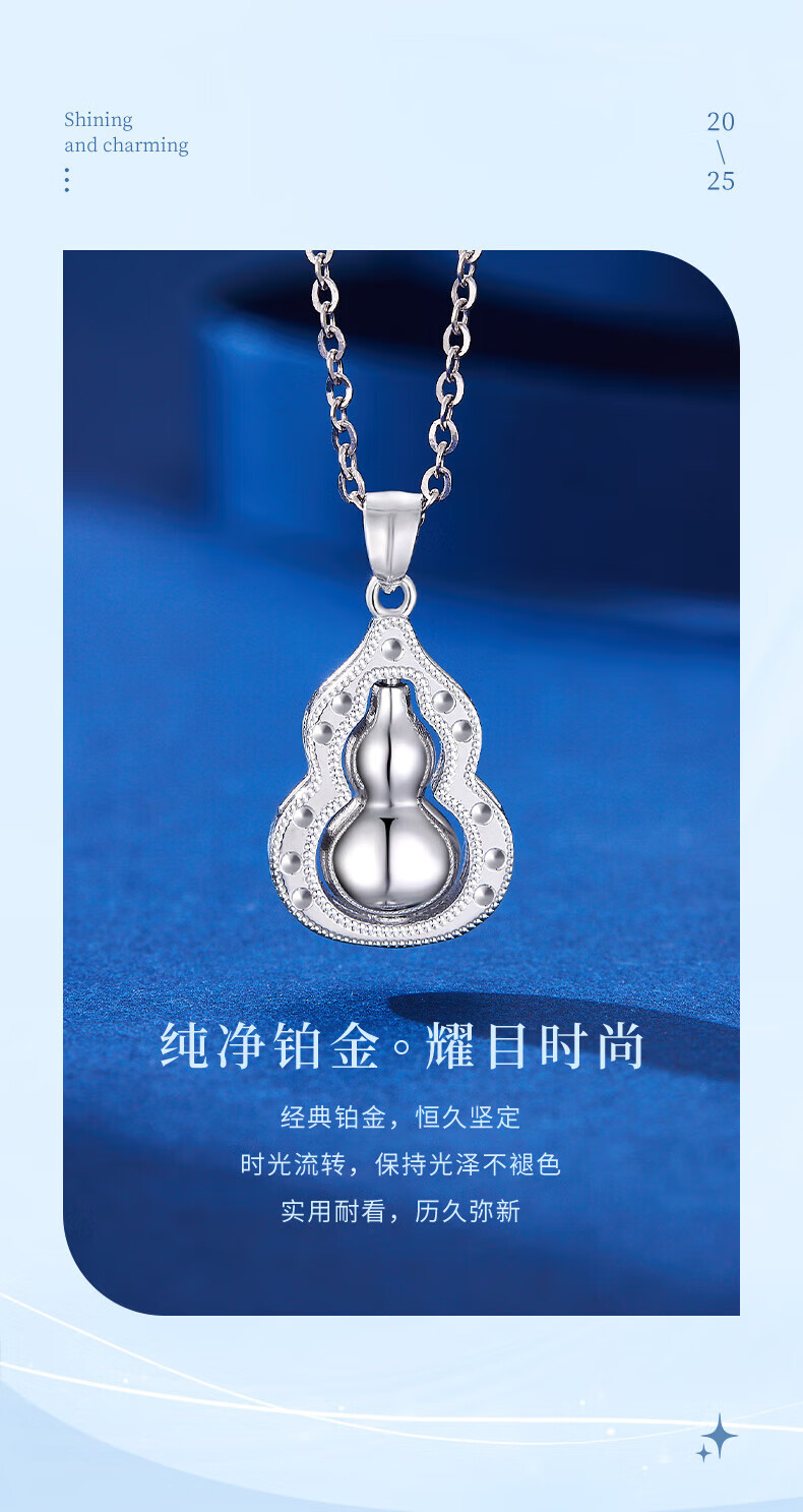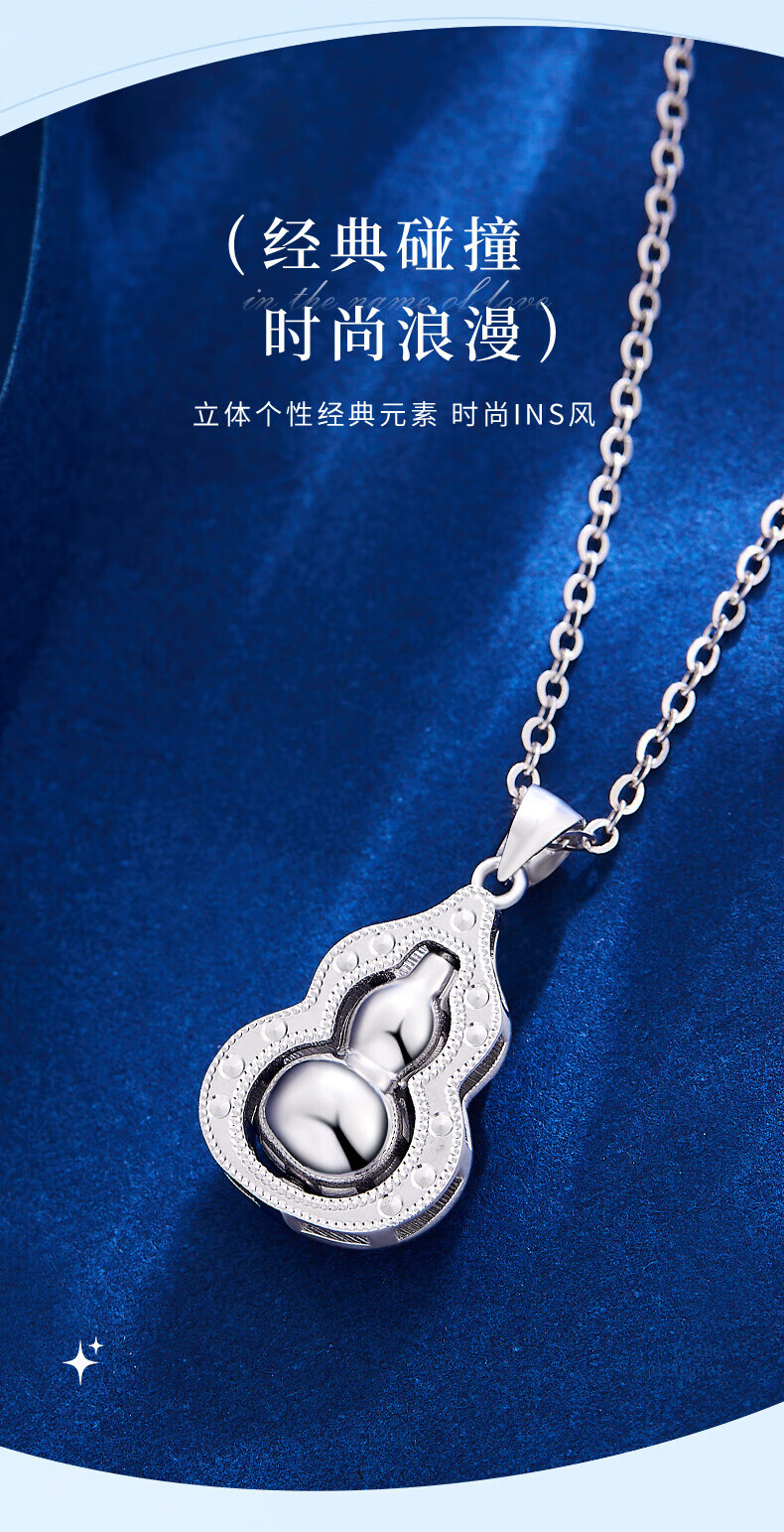 Lao Fengxiang pt950 platinum necklace for women, platinum Fulu gourd pendant necklace, Valentine's Day birthday gift for girlfriend and wife, platinum Fulu gourd pendant, about 3.9g, free silver chain + brand gift box