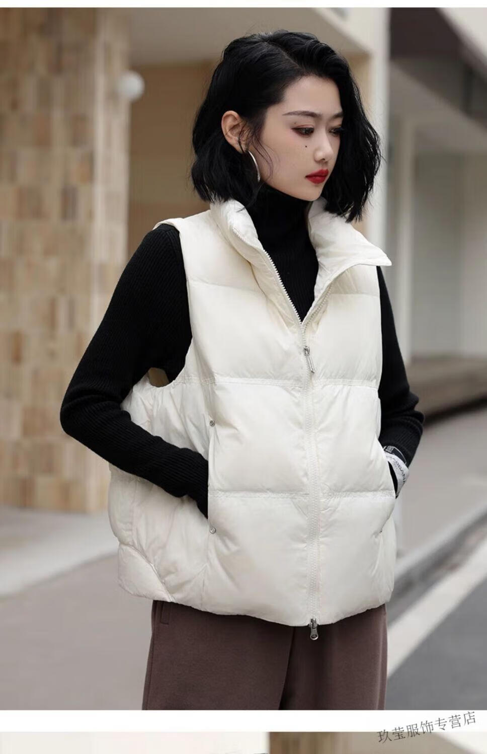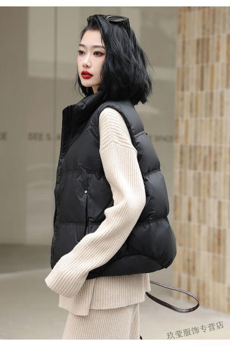 Pierre Cardin White Duck Down Vest Women's Outerwear Western Style Autumn and Winter 2025 Short Sleeveless Vest Jacket Black White Duck Down S Recommended 85--119 Jin Jin equals 0.5 kg