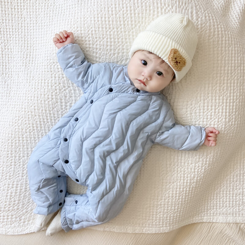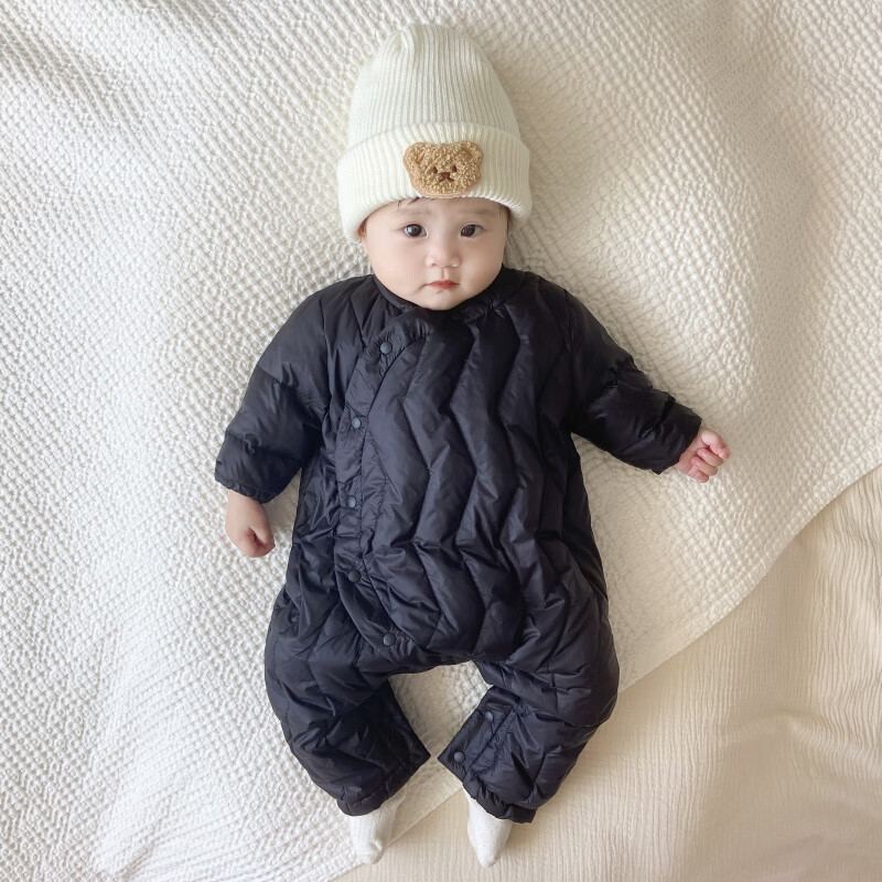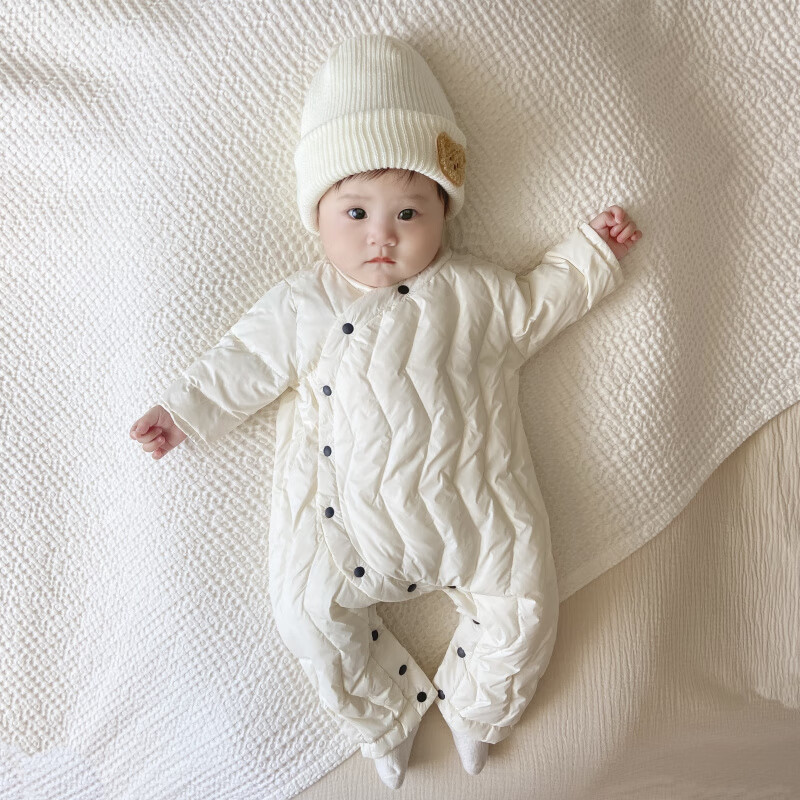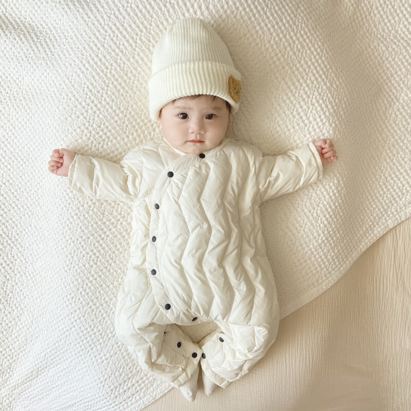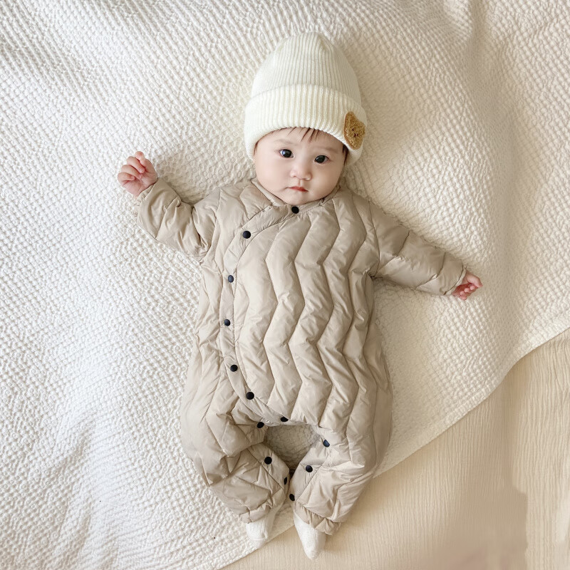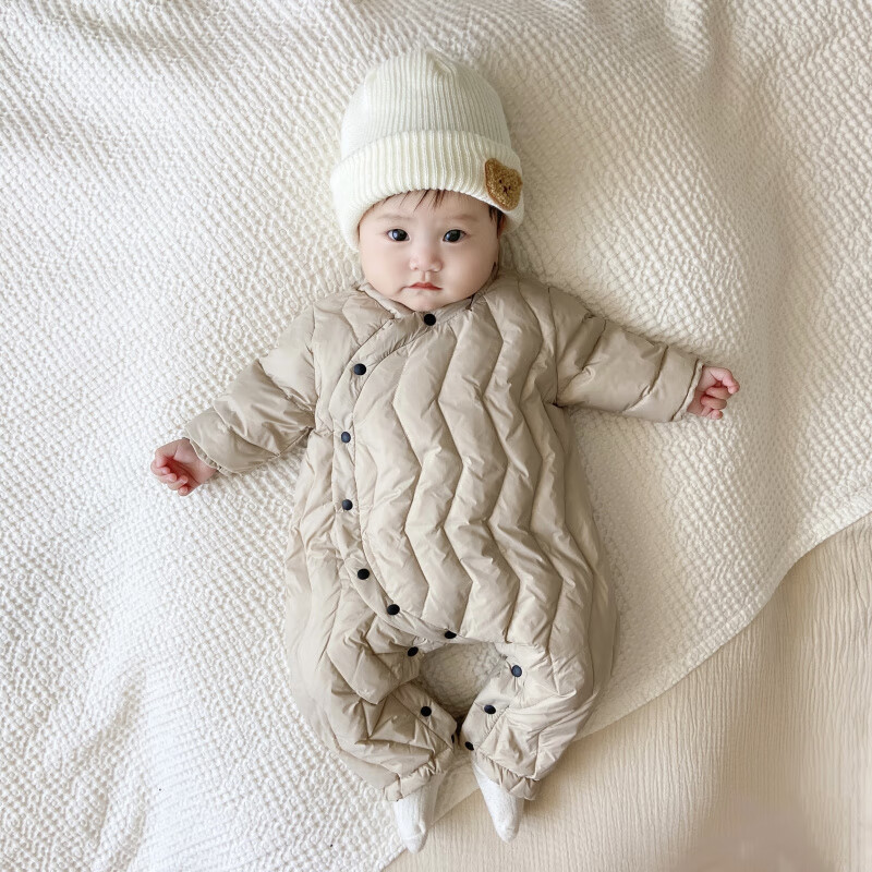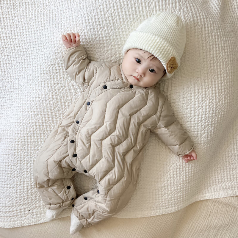 G.duck Winter Down Jumpsuit Newborn Warm Jacket for Male and Female Baby White Duck Down and Velvet Outing Clothing Baby Romper Suit Brown Slanted Feather Jumpsuit 59cm