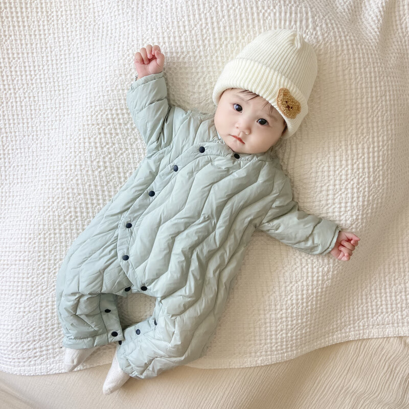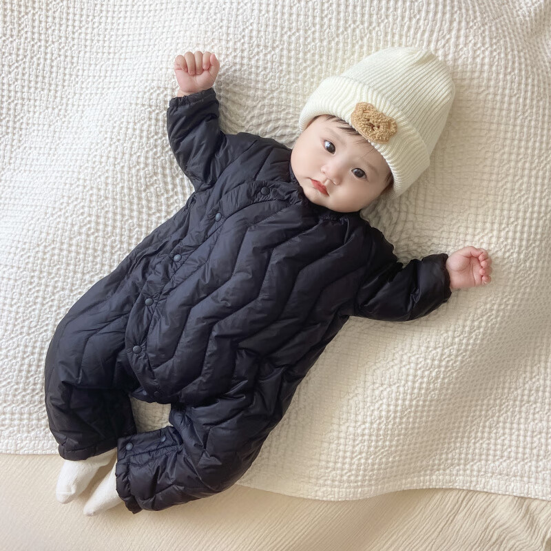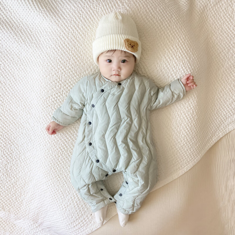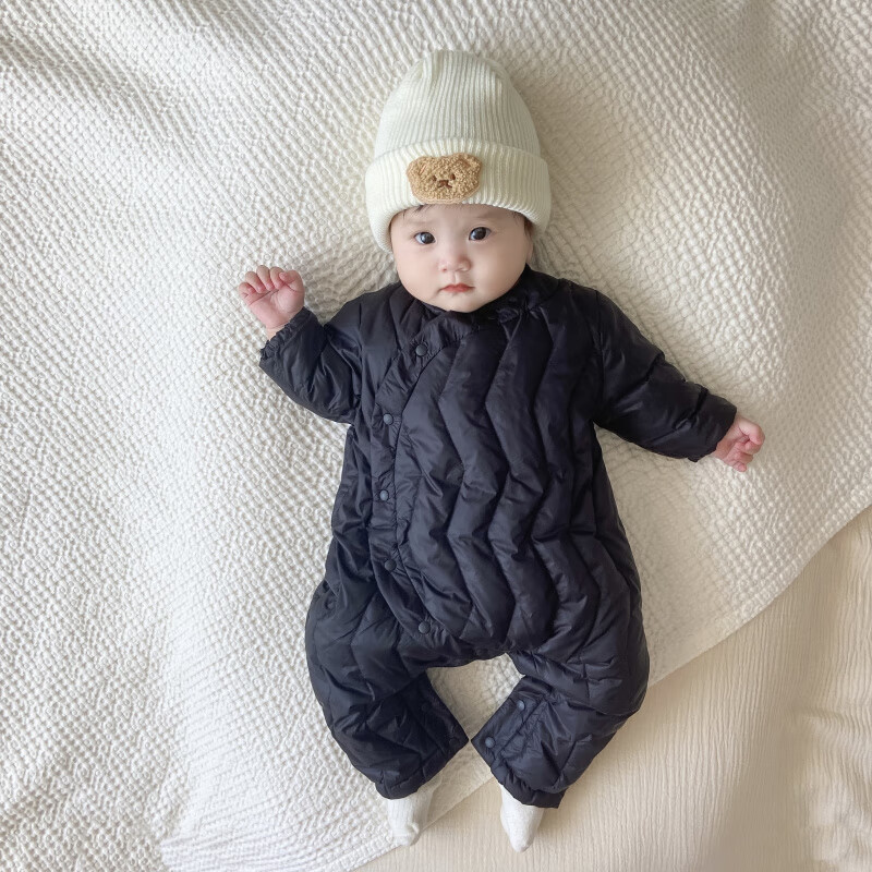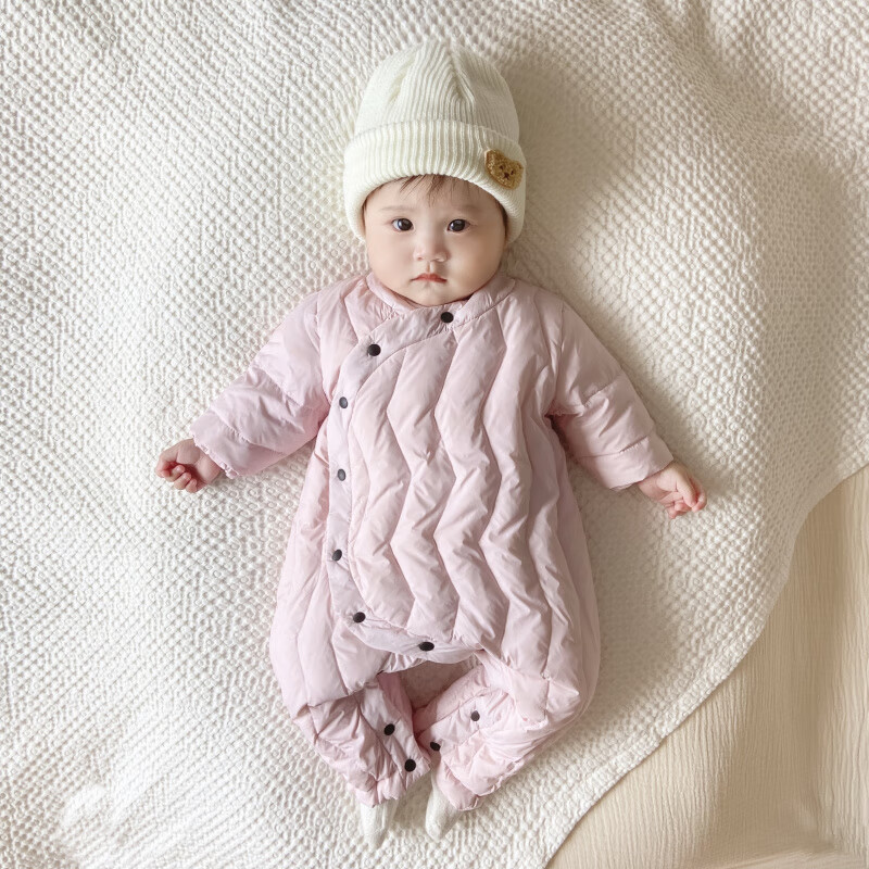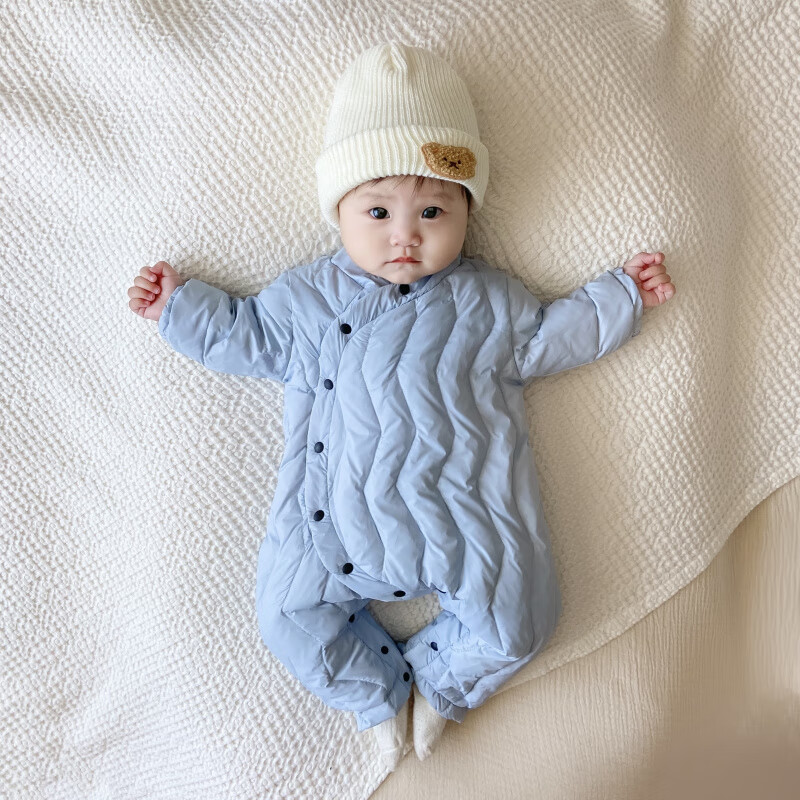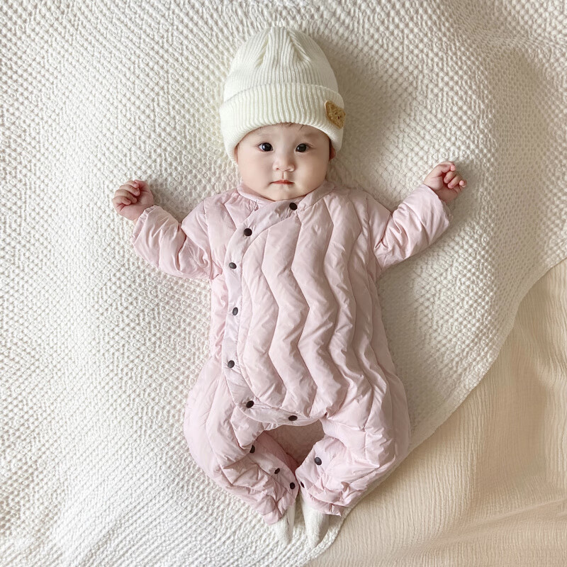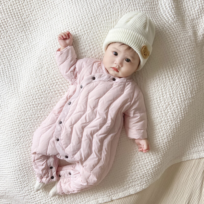 G.duck Winter Down Jumpsuit Newborn Warm Jacket for Male and Female Baby White Duck Down and Velvet Outing Clothing Baby Romper Suit Brown Slanted Feather Jumpsuit 59cm