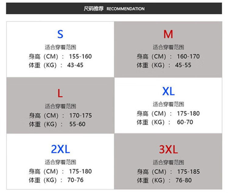 China(cm) 72-76 76-81 81-87 87-93 93-98